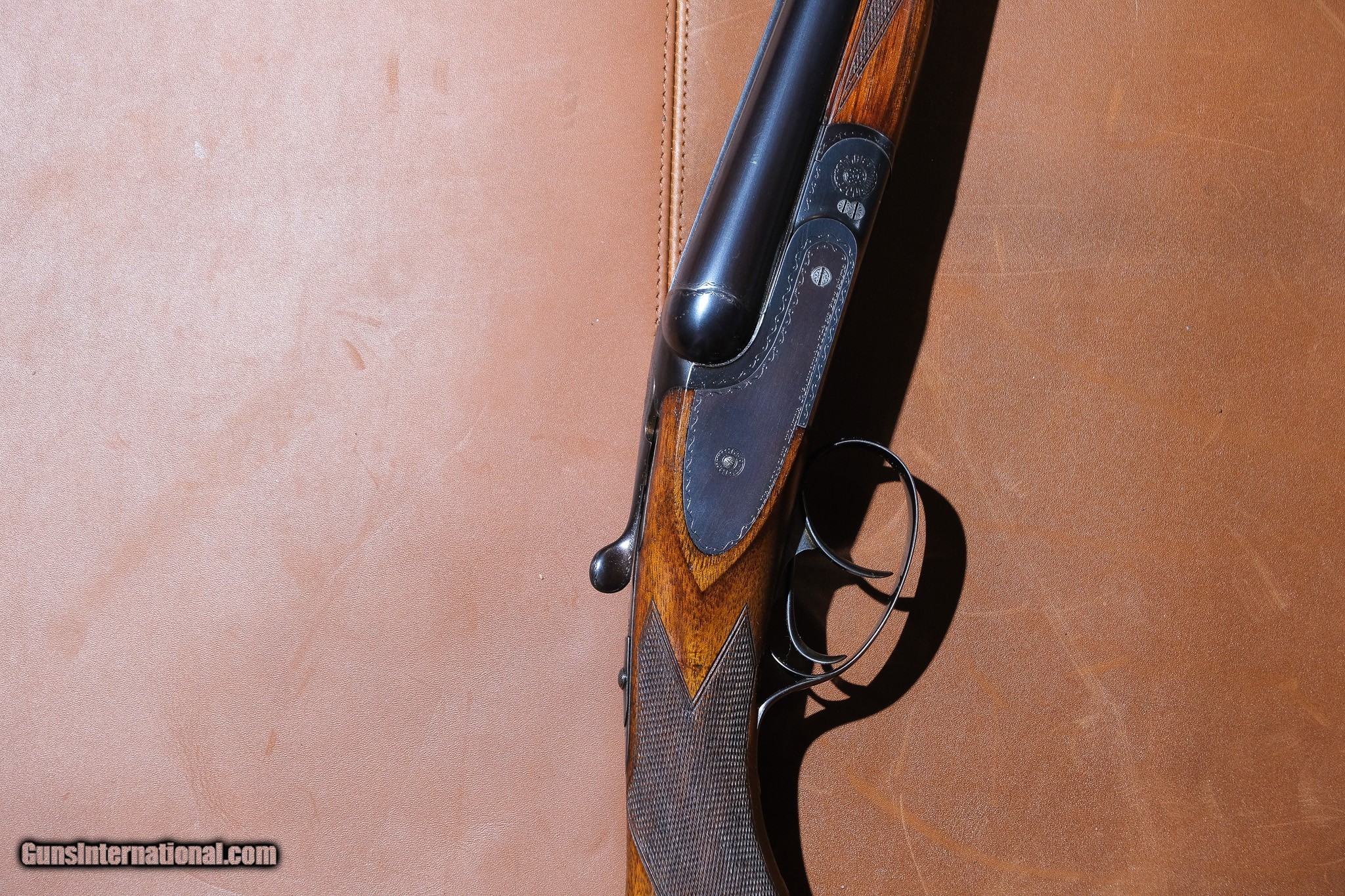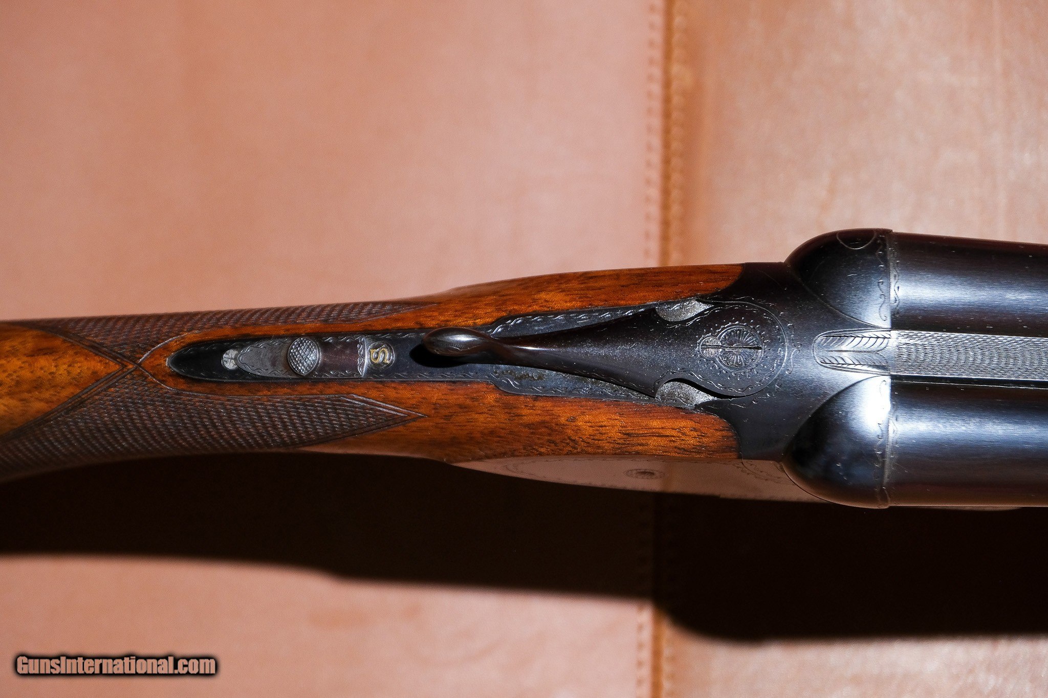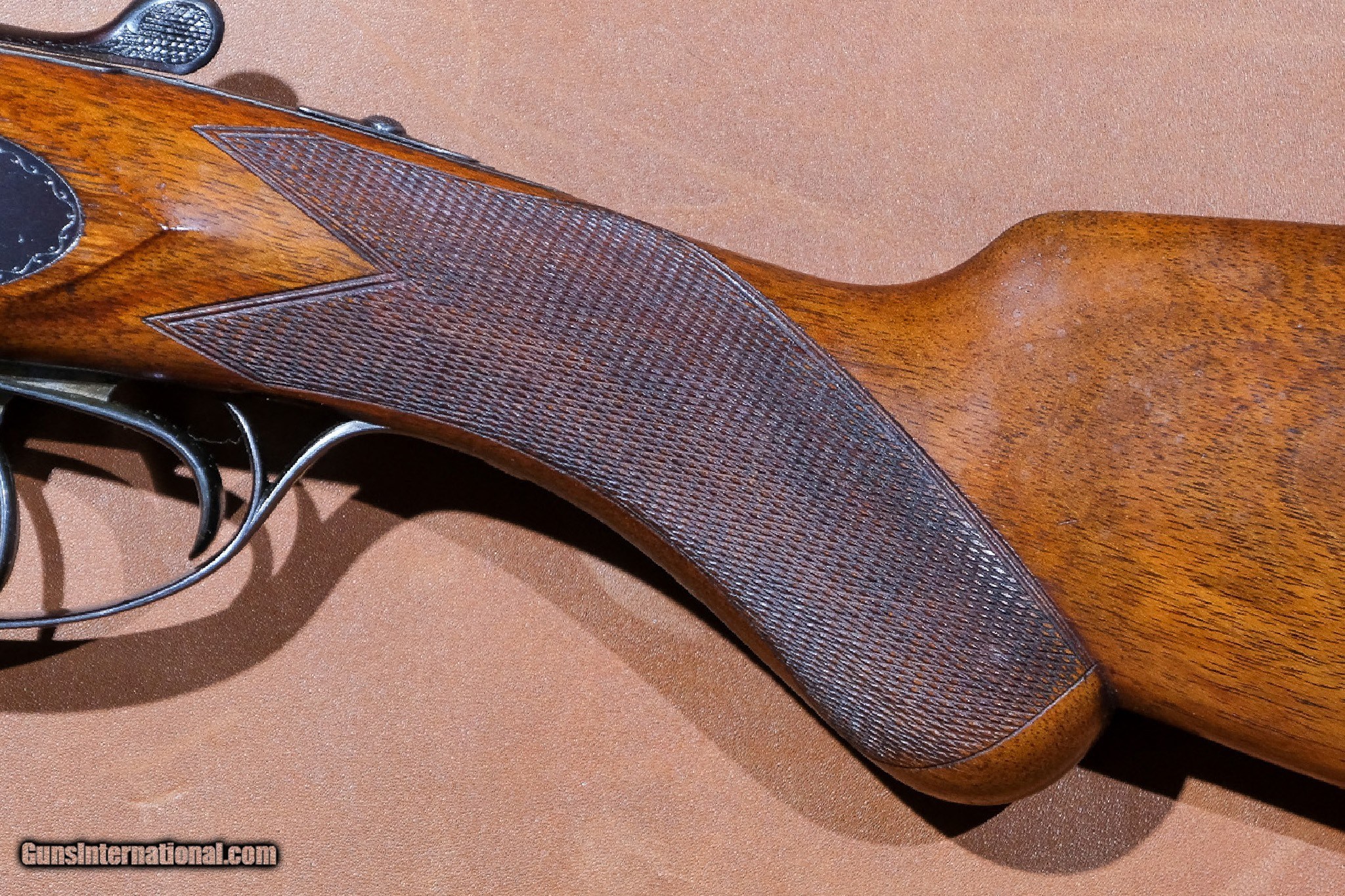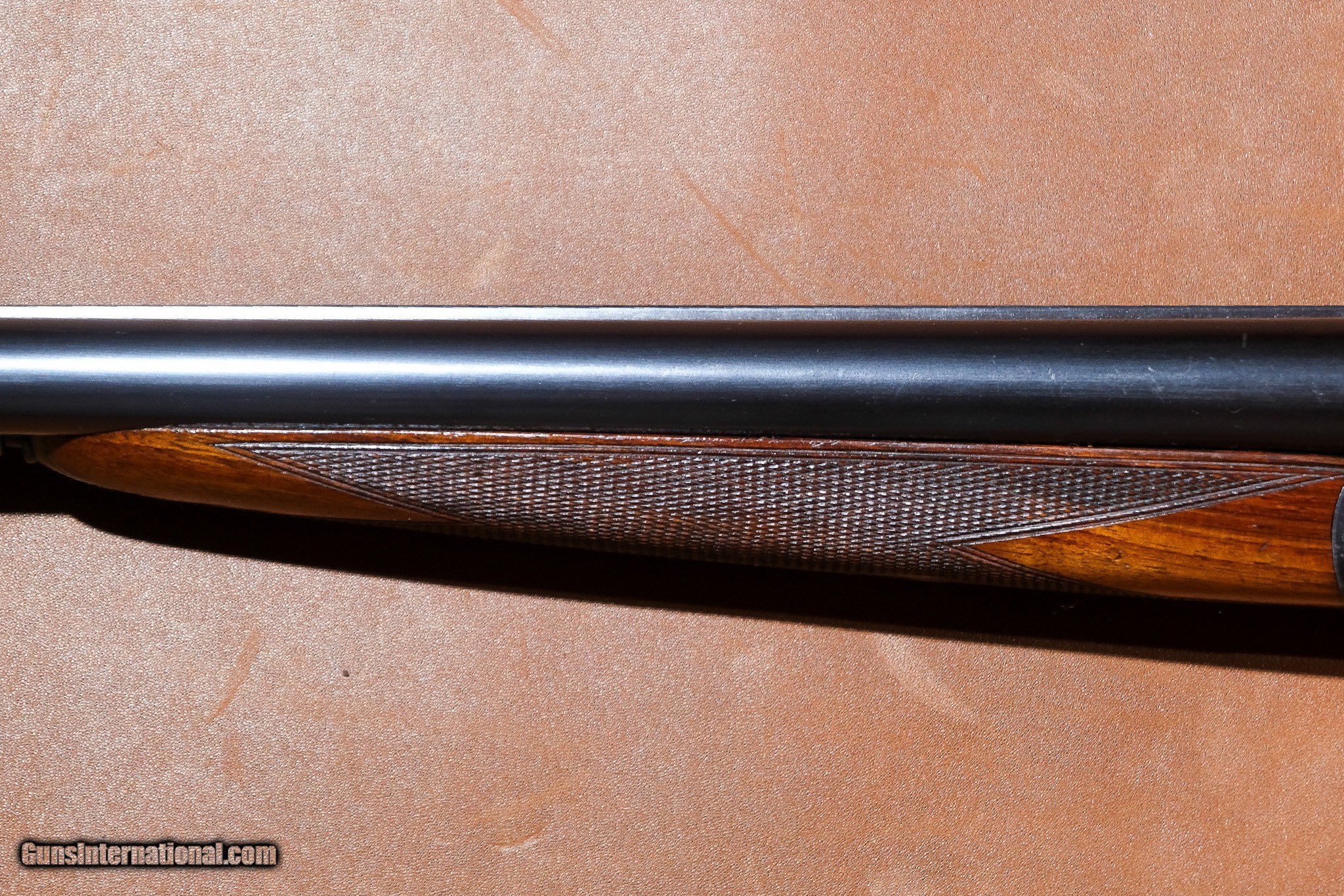 Description: A. Francotte - Jubilee, SxS, 20ga. 26" Barrels Choked IC/M (.006”/.015”). Round knob stock, factory serrated butt plate, double triggers, automatic ejectors, side clips, splinter forend, game gold oval, imported by Abercrombie and Fitch in 1940, sideplated gun with boarder engraving over a blued finish, gun remains in very good overall condition, 5lb., 4oz makes this the perfect field gun, available for immediate delivery. Inv: 76294 5 lbs. 4 oz. 14 ½” x 1 ½” x 2 ¼” $4,750.00 Price: $4,750.00 Contact Seller |