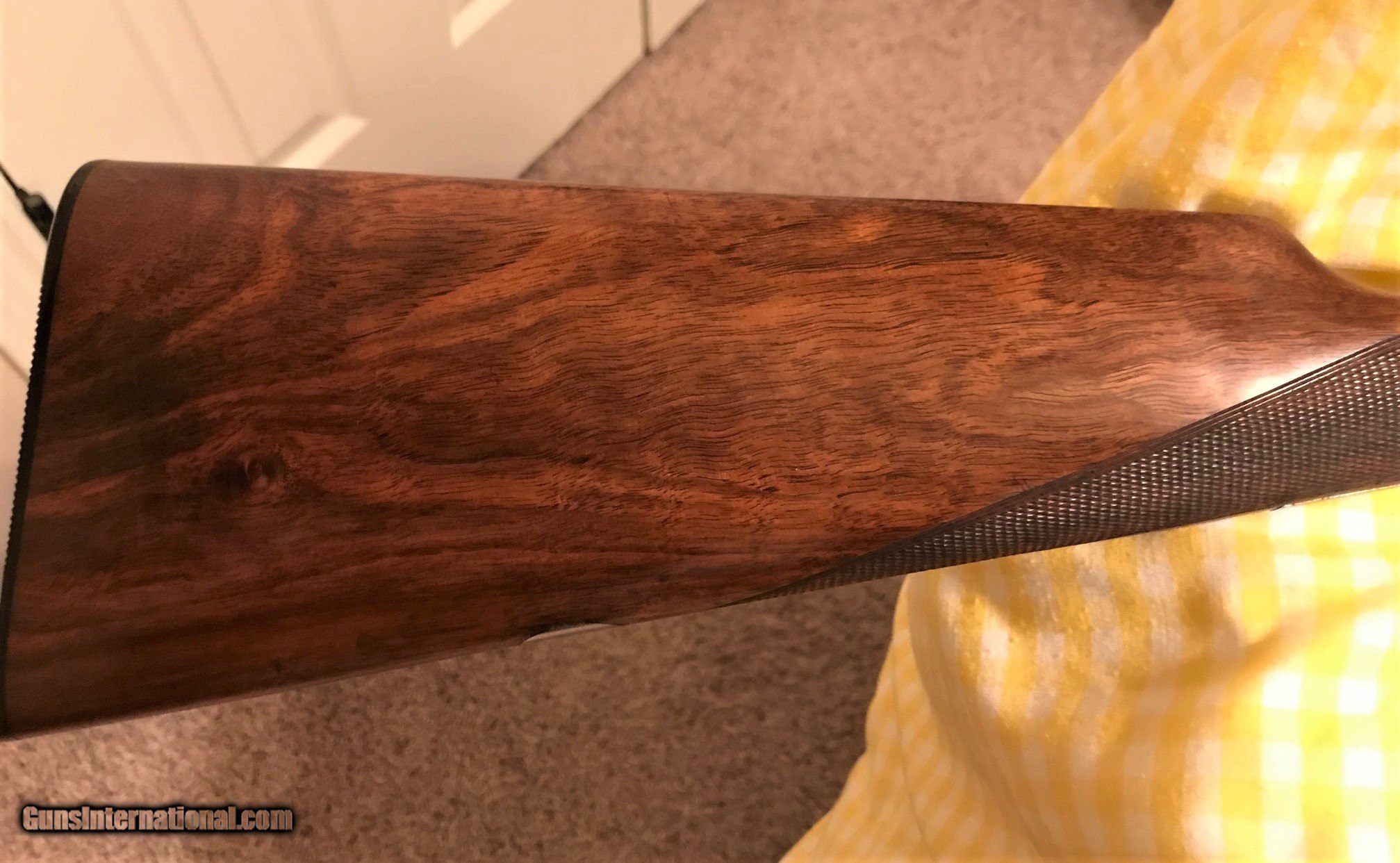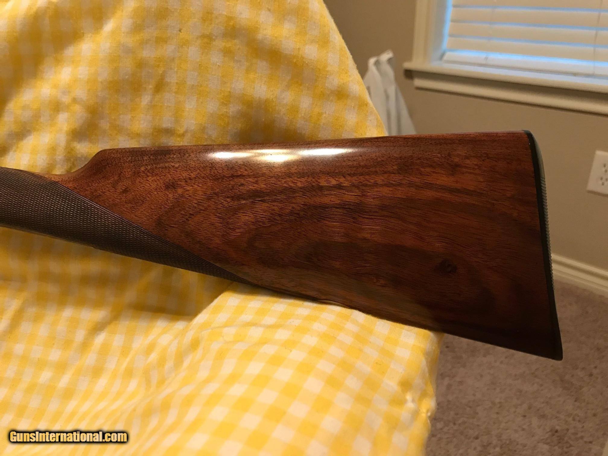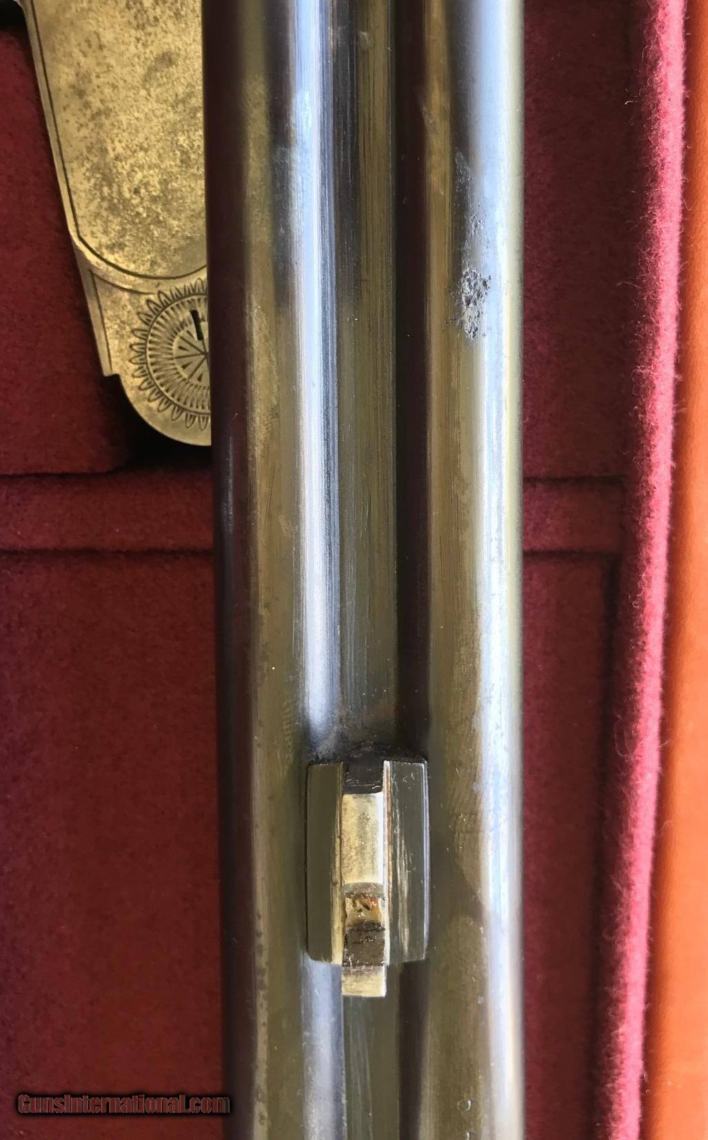 Description: Boxlock 410 SxS Made in Belgium Ser # 662 Mfg 1931 English Stock Splinter Double Triggers 26 7/8" Barrels Extractors 2 1/2" Chambers Bores: Right .411 - - Left .410 Chokes: Right .003 - - Left .015 MWT: Right .040 - - Left .040 DAC 1 3/8" DAH 2 1/2" LOP 14 3/8" Weight 4 LB 8 OZ * * Buttstock and Forend checkering was re-cut by Brian Board and the wood was re-finished with Timberluxe * * Barrels were inspected and measured by Dean Harris at Skeets Gun Shop in Oklahoma * * There is a small spot of corrosion on the bottom of the left barrel that’s hidden under the forend wood. $4500 Delivered To Lower 48 States Please contact me with any questions or comments you might have. SOLD Curio/Relic: Yes Shotgun Gauge: .410 Gauge |