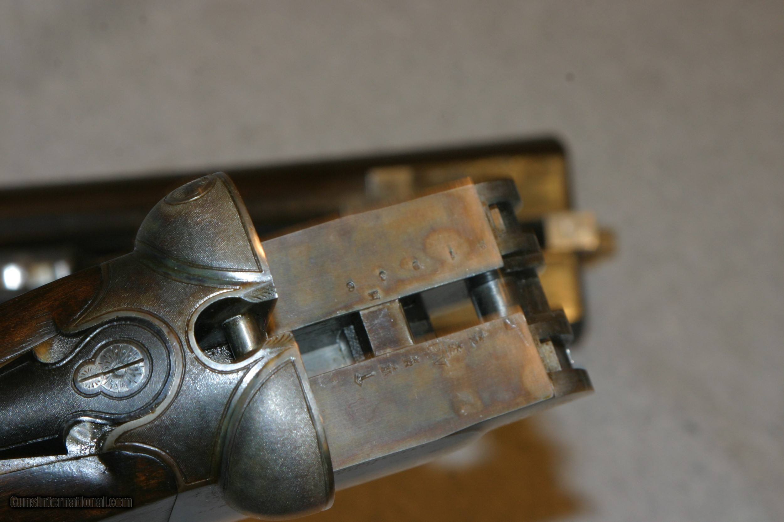 Description: VERY CLEAN FRANCOTTE GRADE 15 12 GAUGE (2 3/4") WITH 30" BARRELS AND .020-.030 (F-M) CHOKES, LEATHER BUTTPAD, TAKEDOWN CASE, VERY GOOD CONDITION OVERALL,SOLID WOOD! LOP 14 1/4- 1 1/2"-2 1/4" 7.5 LBS, APPEARS TO A 1924 BUILD RECORDS AT GRIFFIN & HOWE SHOWS THE GUNS WAS SOLD W.P LIVINGSTON OF NYC, WHO WORKED AT BANKERS TRUST ON WALL STREET. HE WAS BORN IN MAINE IN 1904 AND PASSED IN 1987. SOLD |