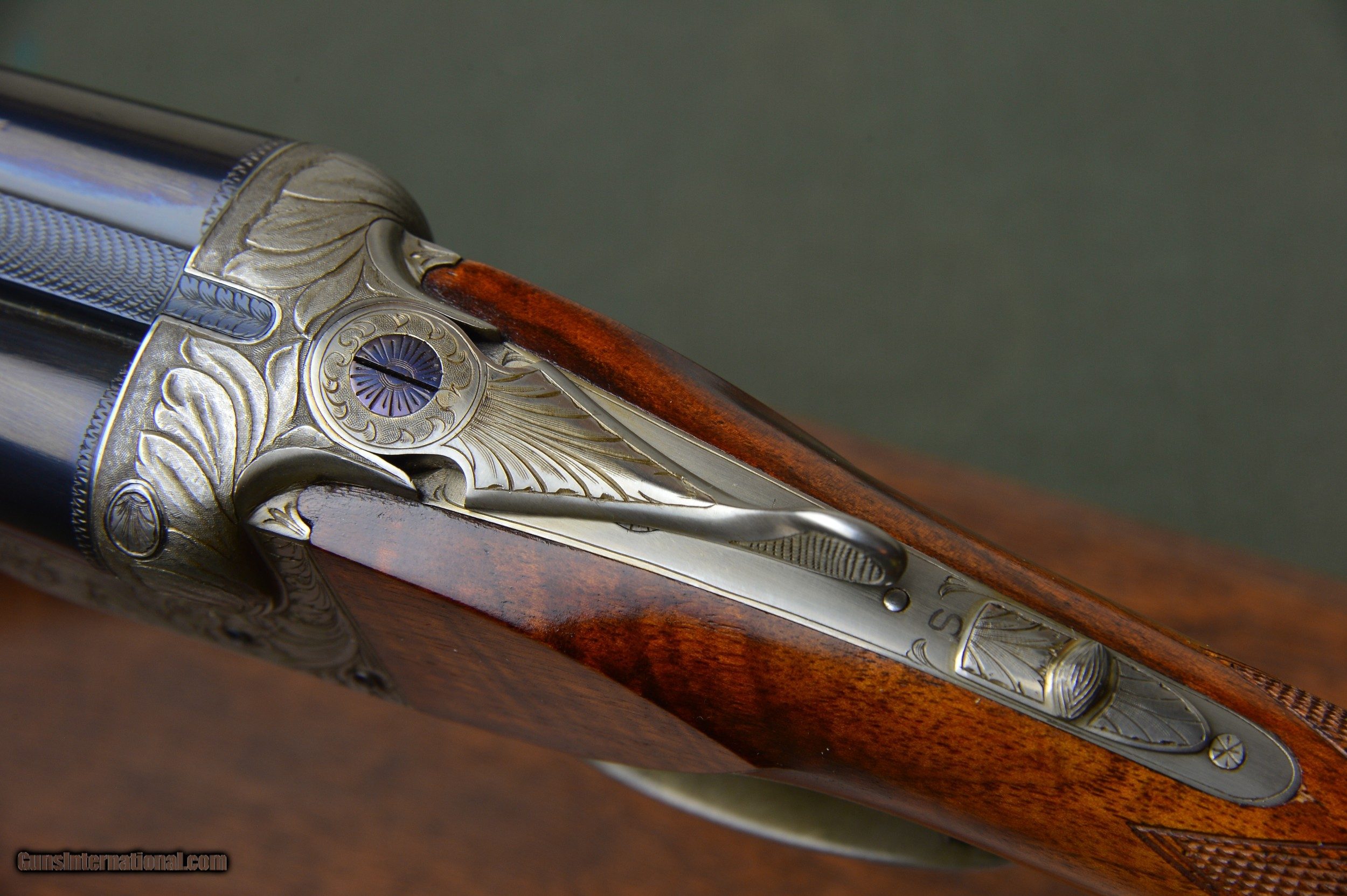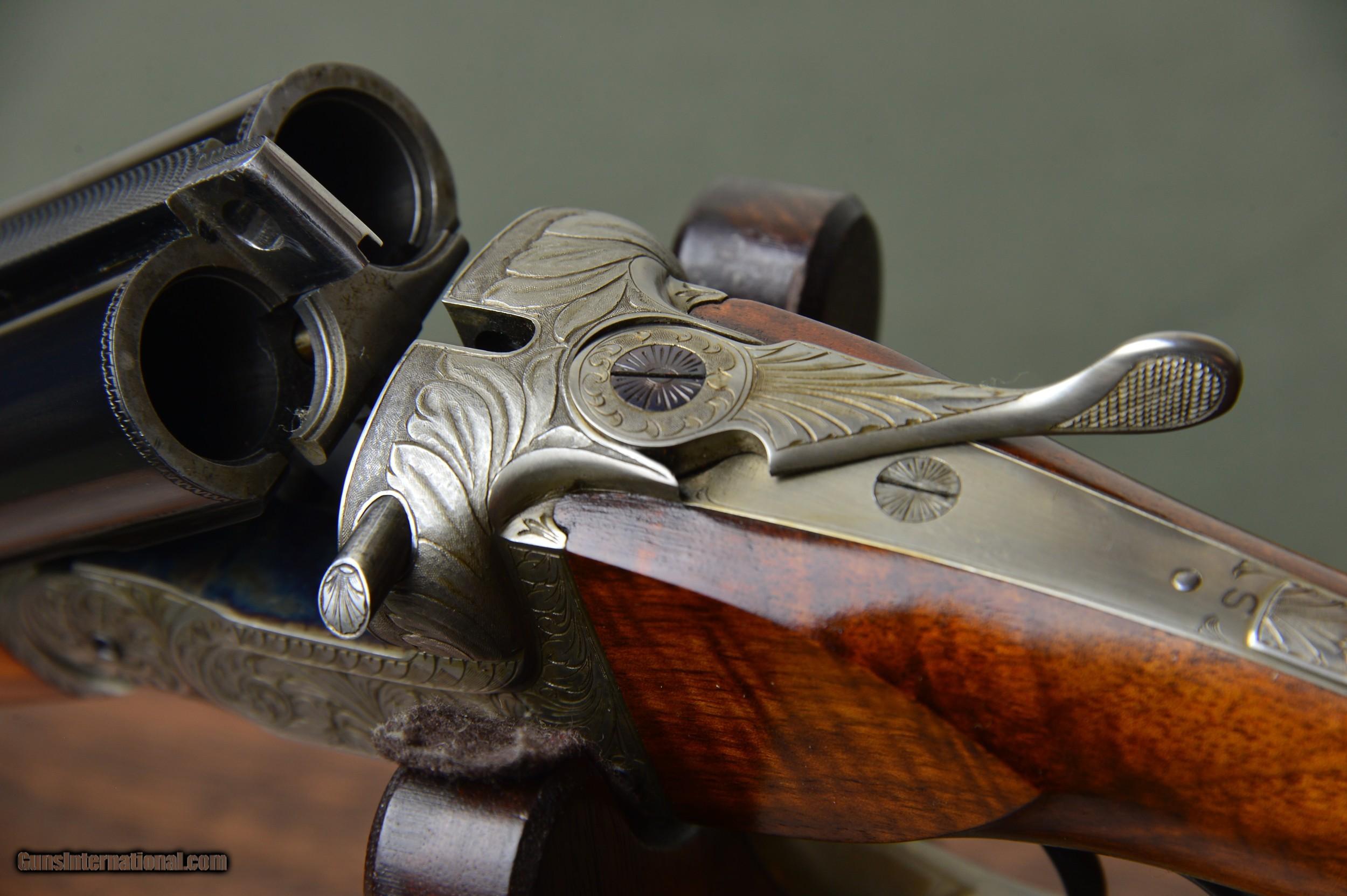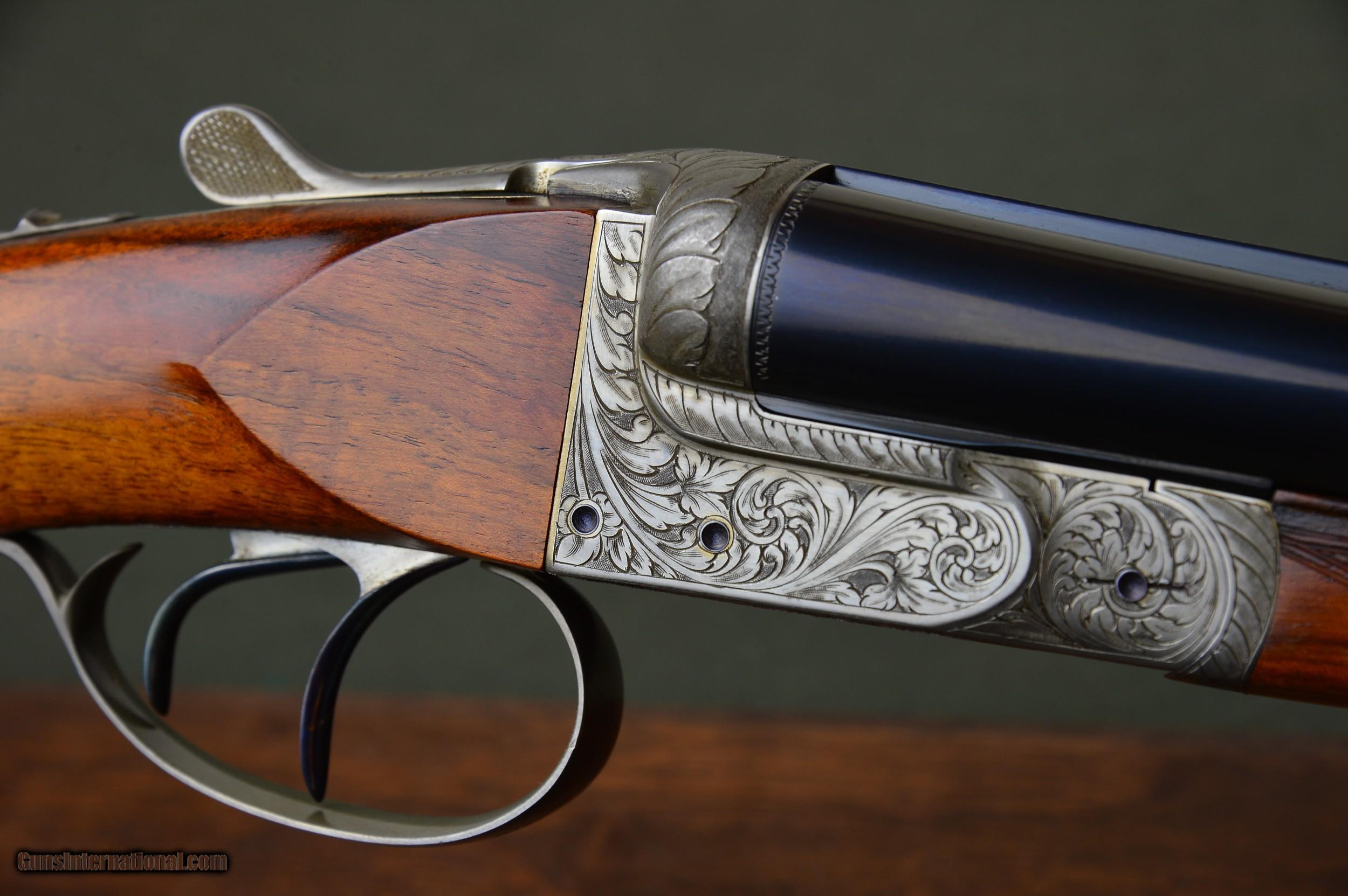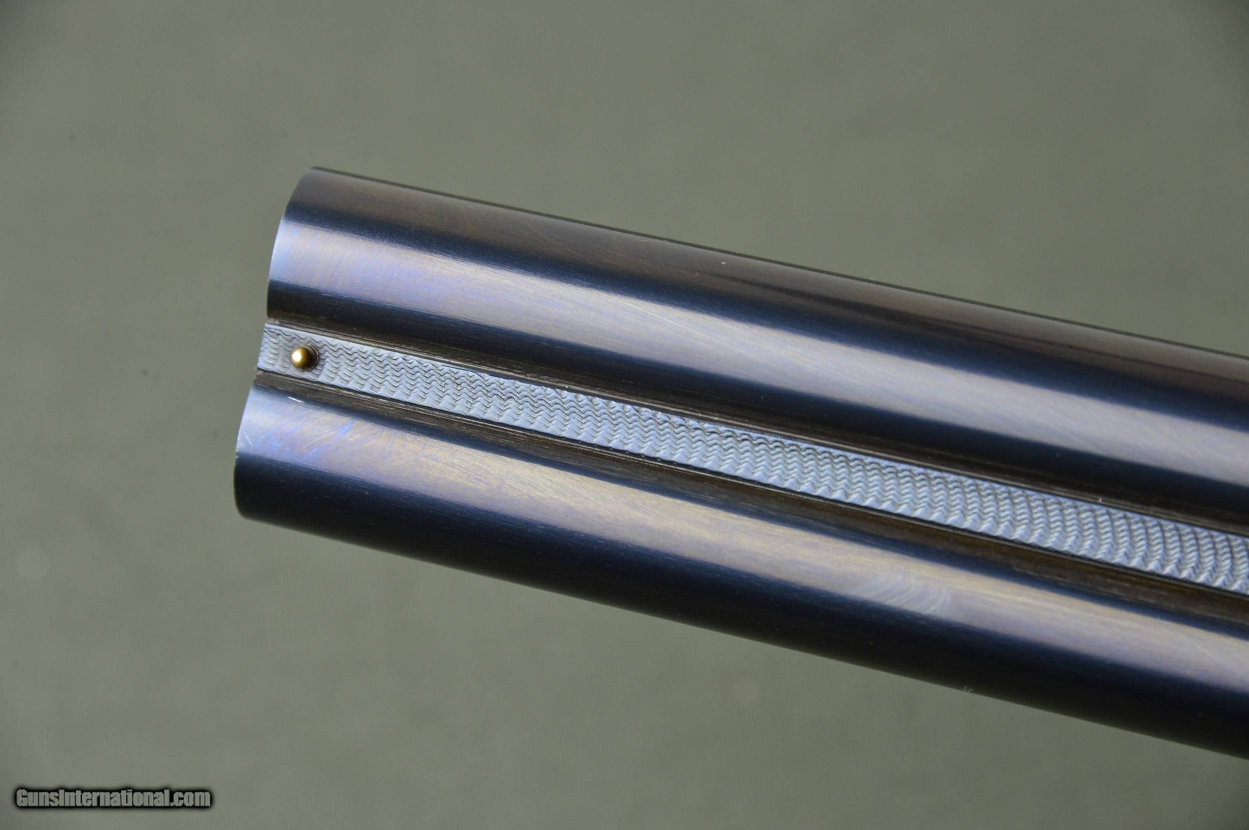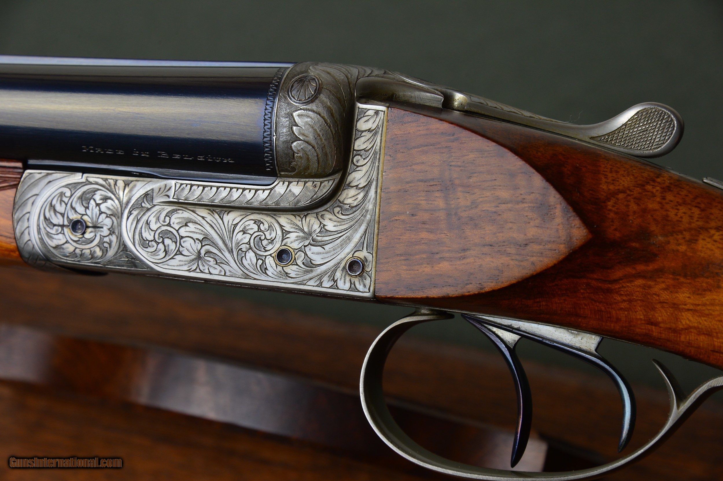 Description: *** SOLD *** CONDITION CONDITION CONDITION *** 1960’s vintage 16 gauge Francotte boxlock non-ejector in excellent condition. Shows few signs of use. Highly engraved, nicely figured European walnut stock, and great handling. Kersten cross-bolt for strength and double triggers. Weighs 6lbs 2oz. Serial number 23886. Another well-made double from this quality Belgian gunmaker. *** The 28” Siemens Martin Steel barrels are chambered for 2-3/4” shotshells and are equipped with extractors. They are topped by a raised solid tapered crosshatched rib. The right barrel is inscribed “Francotte’s Arms” and the left is inscribed “Liege” and lower down “Made in Belgium”. The right barrel is bored 0.667 with a constriction of 0.020 for Modified choke. The left barrel is also bored 0.667 and has a constriction of 0.025 for Full choke. The bluing is 99%+ and the bores are shiny. *** The straight grip stock and splinter forearm are made of nicely figured European walnut. Checkering is crisp. Stock dimensions are 14-1/2” over a factory plastic butt plate by 1-3/8” by 2-1/8”. Very slightly cast off for the righthanded shooter. The finish is in superb condition with only a very few minor handling marks. The butt plate has a few scratches. *** SPECIAL NOTE: This 16 gauge Belgian double is the first gun of a multi-gauge composed pair and may be purchased by itself or with its consecutively serial numbered 20 gauge mate which is listed separately. Please contact me for details. *** I am an FFL and will need a signed copy of your dealer’s FFL license. Not for sale where prohibited by state or local laws. Buyer is responsible for all shipping, insurance, and any other related charges. I give a 3-day non-firing inspection period and will only accept returns at buyer’s expense. *** Come and see this great double and other fine firearms at the MacNab booth at the Vintage Gunners Cup September 15th --- 18th, 2021 at Hausmann’s Hidden Hollow Sporting Clays in Friendsville, PA. SOLD |