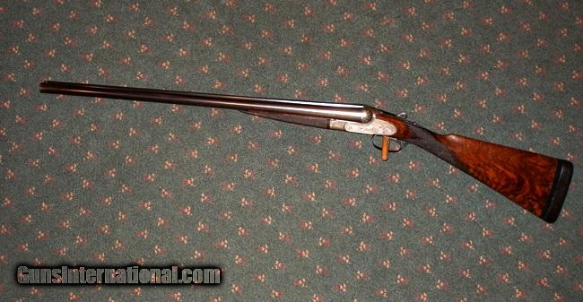 Description: FRANCOTTE, 1897 VL & D RARE GRADE 30 SIDEPLATE BOXLOCK 12GA SHOTGUN, S/S WITH SIDECLIPS 7 GREENER HIDDEN CROSSBOLT, GORGEOUS GAME SCENES OF QUAIL, WOODCOCK, & AUERHEN WITH FULL COVERAGE TIGHT SCROLL, 26" BBLS WITH DOLLSHEAD, 2 5/8, CHOKED CYL & MOD, STANDARD GAME RIB, EJECTORS, DBL TRIGGERS, GORGEOUS FIGURED WALNUT, ST/SP, LOP 14 3/4 WITH LEATHER PAD, 6LBS 14OZ, EXCELLENT BORES 7 WOOD, ACTION TIGHT WITH LIGHT CASE COLORS, ORIGINAL BLUE 96%! SOLD Antique: Yes Manufacturer: FRANCOTTE Model: RARE GRADE 30 SIDEPLATE BOXLOCK Bore: 12 Chambers: 2 5/8 Ejectors: YES Condition: EXCELLENT Metal Condition: EXCELLENT Wood Condition: EXCELLENT Bore Condition: EXCELLENT Barrels: 26" W/DOLLSHEAD Action: SIDEPLATE BOXLOCK Triggers: DBL Gauge Info: 12 Butt Pad: LEATHER LOP: 14 3/4 W/LEATHER PAD Rib: STANDARD GAME Weight: 6LBS 14OZ Manufacture Date: 1897 Chokes: CYL/MOD Engraving: FULL COVERAGE TIGHT SCROLL Extras: GAME SCENES OF QUAIL, WOODCOCK & AUERHEN |