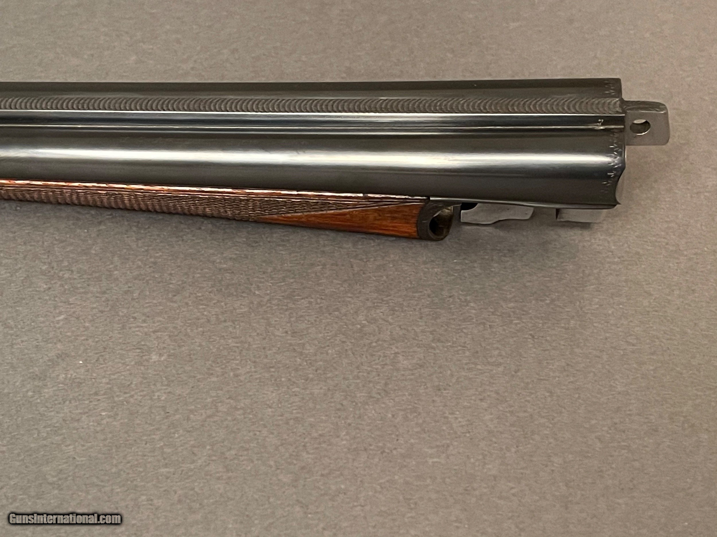 Description: Priced to move don't miss out on this rare find!!!!! There is no denying that sub gauge guns are extremely popular in todays world. If your hunting a well-made vintage sub gauge double, check out this gorgeous Francotte 410 side by side. This Francotte model 25 ejector double will handle any modern 410 loads in 2 ½ or 3 inch shells. The 28inch barrels are choked at improved cylinder/modified. This fine example features rose and scroll engraved side plated case colored action. The Francotte also is detailed with double triggers and a 14 ¼ LOP. This fine little double come complete with all accessories in a nice travel case. This petite side by side would be a wonderful addition to any serious double gun collector’s library of fine guns. SOLD |