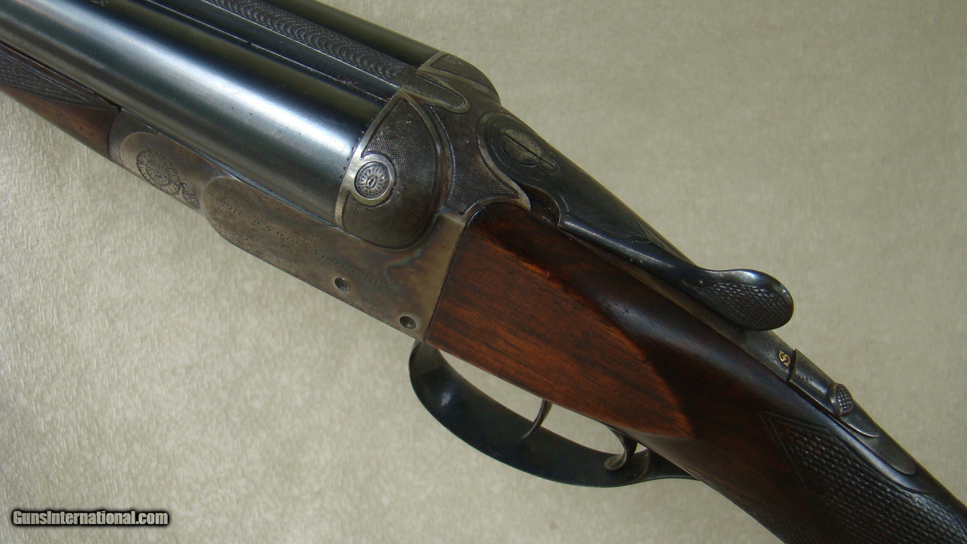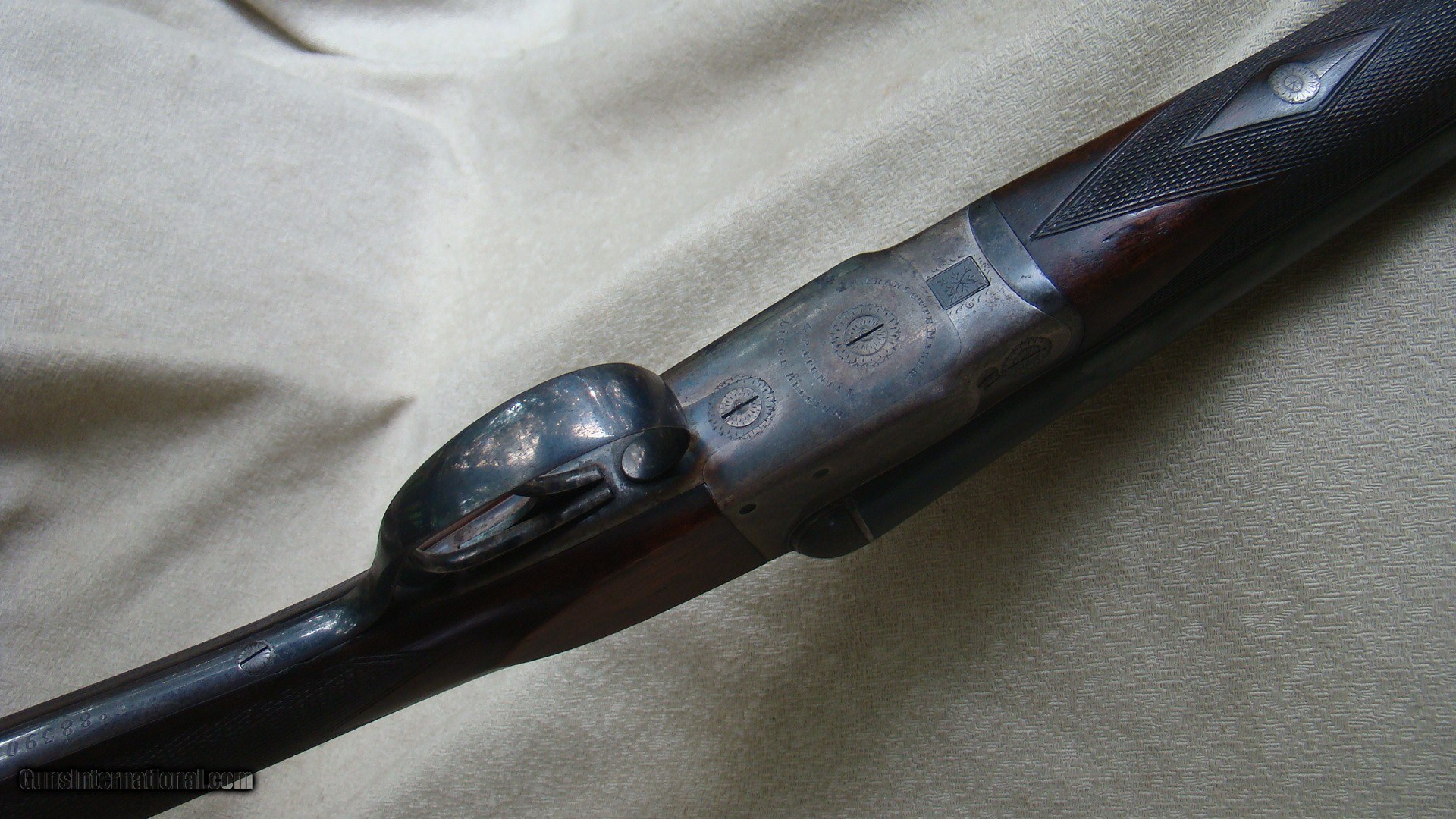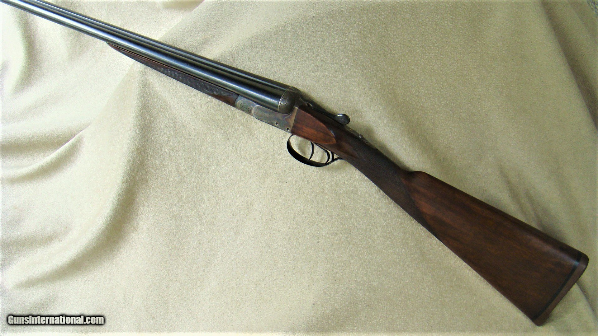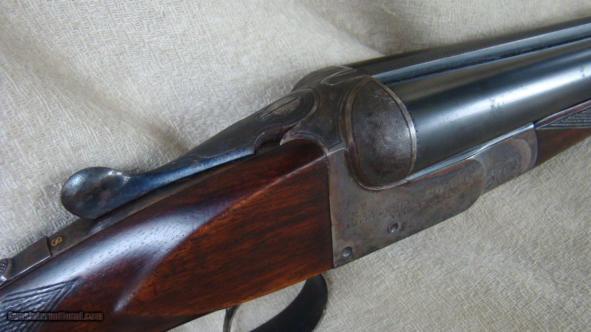 Description: Francotte 28 ga. "The Knockabout", 26" barrels feature an engine-turned rib, 2-3/4" chambers, choked modified and extra full (.011 and.028). Marked with the importer's "Abercrombie & Fitch Co. New York". Automatic ejectors, auto safe, double triggers. The straight grip stock with splinter forend measures 13-3/4" over a 1/2" pad. This little 28 weighs a mere 4 lbs, 15 oz.! Showing honest wear, the gun retains quite a bit of case color, locks up tight as a bank vault on the face and has excellent bores. Quite an unusual find in 28 ga.! Ultimate gun for upland birds! SOLD |
