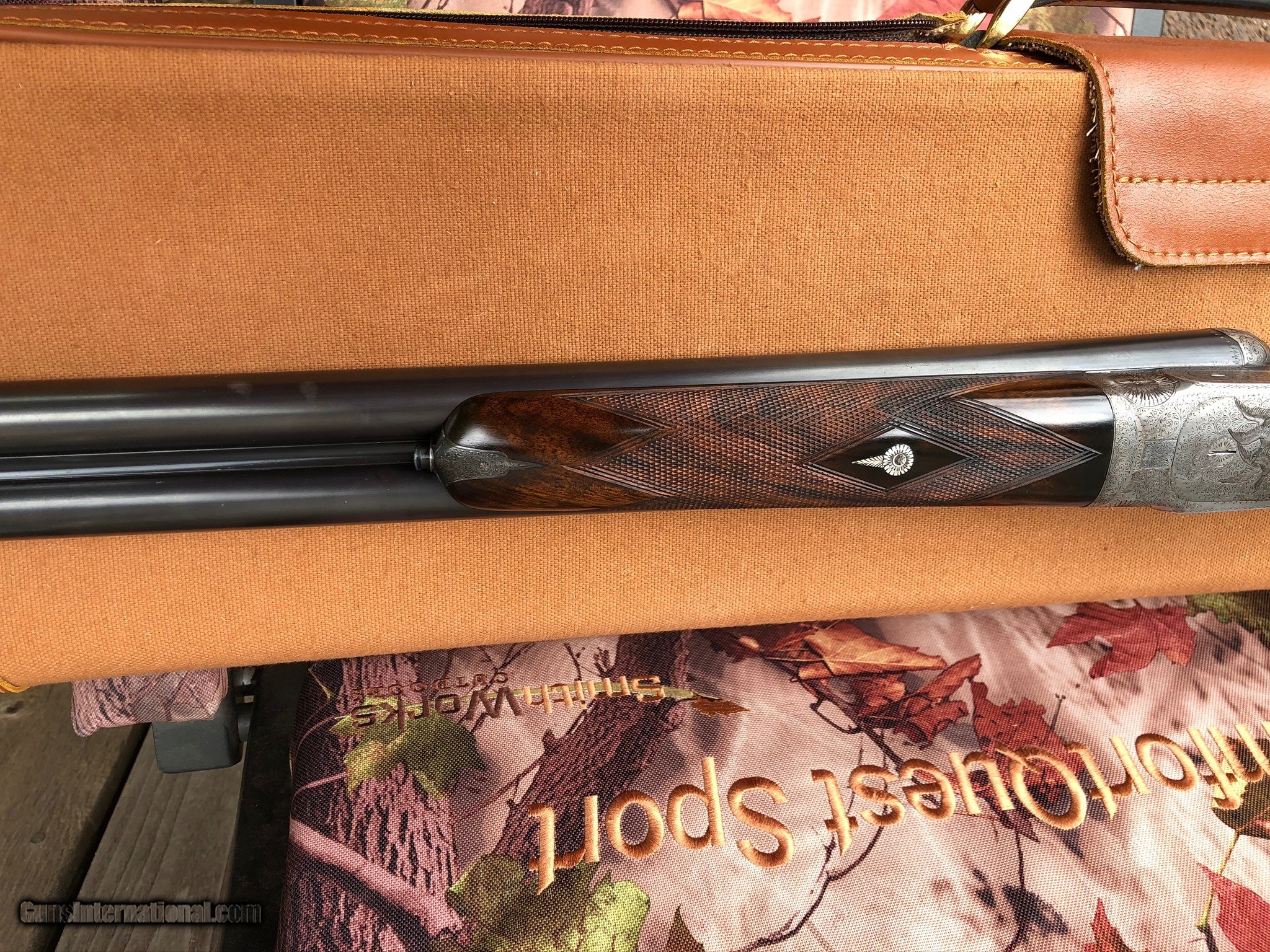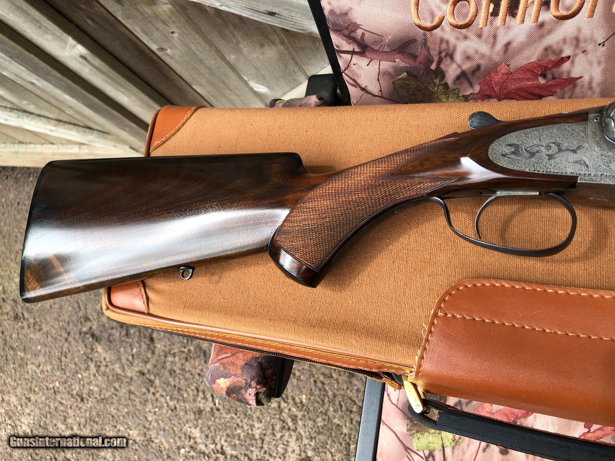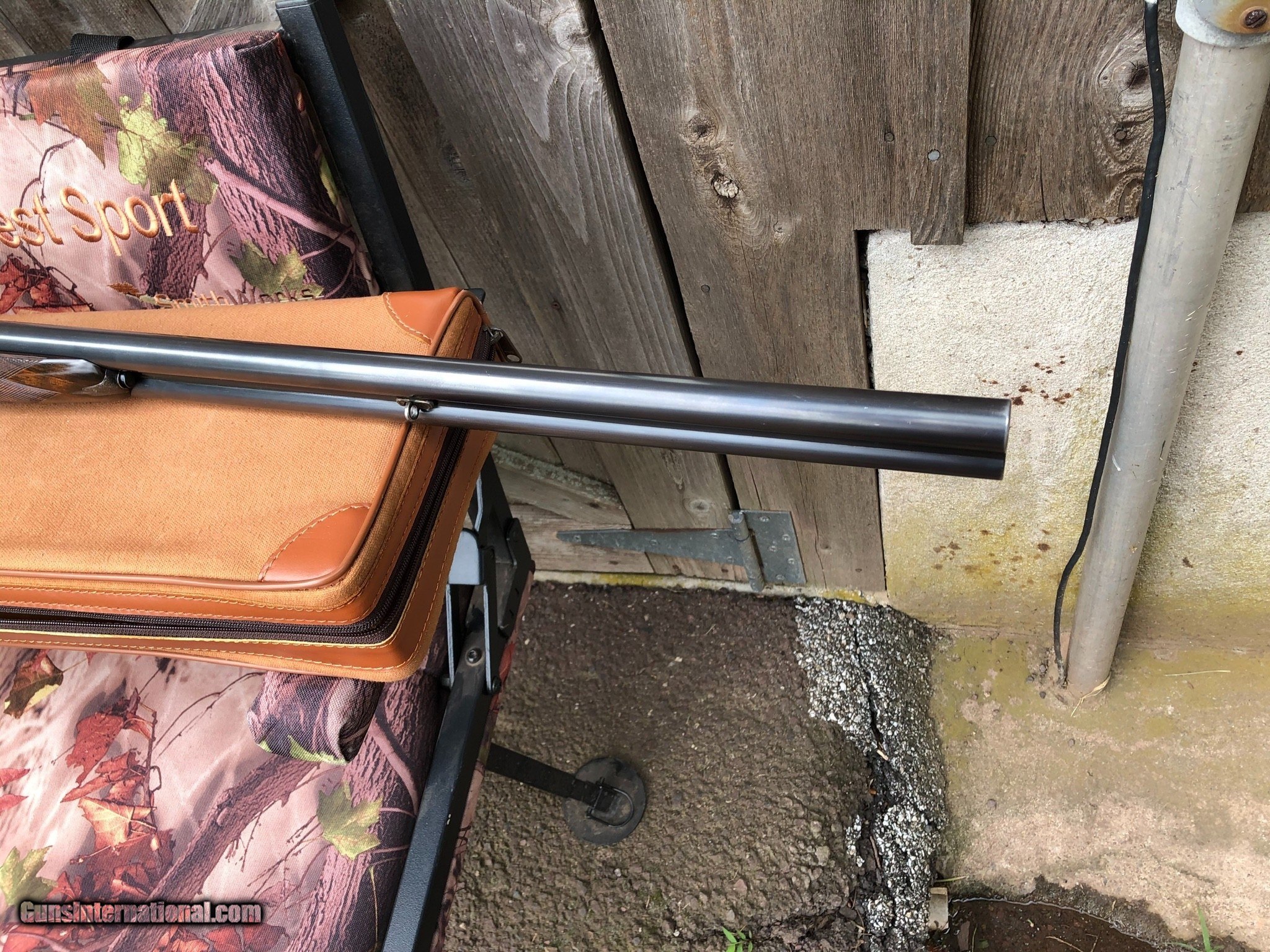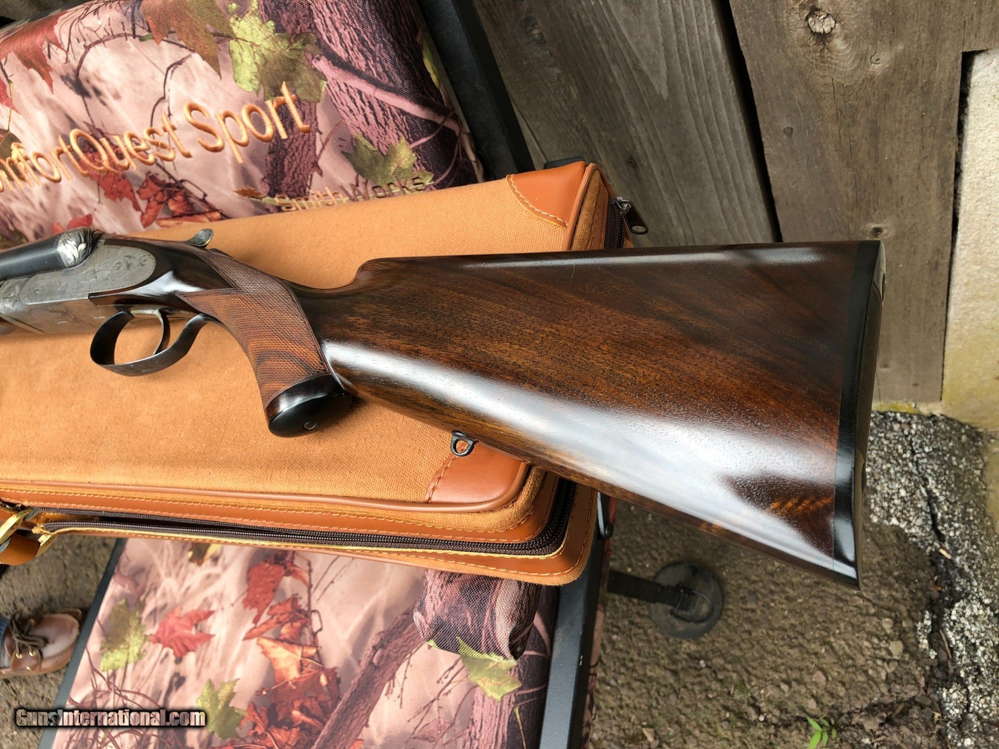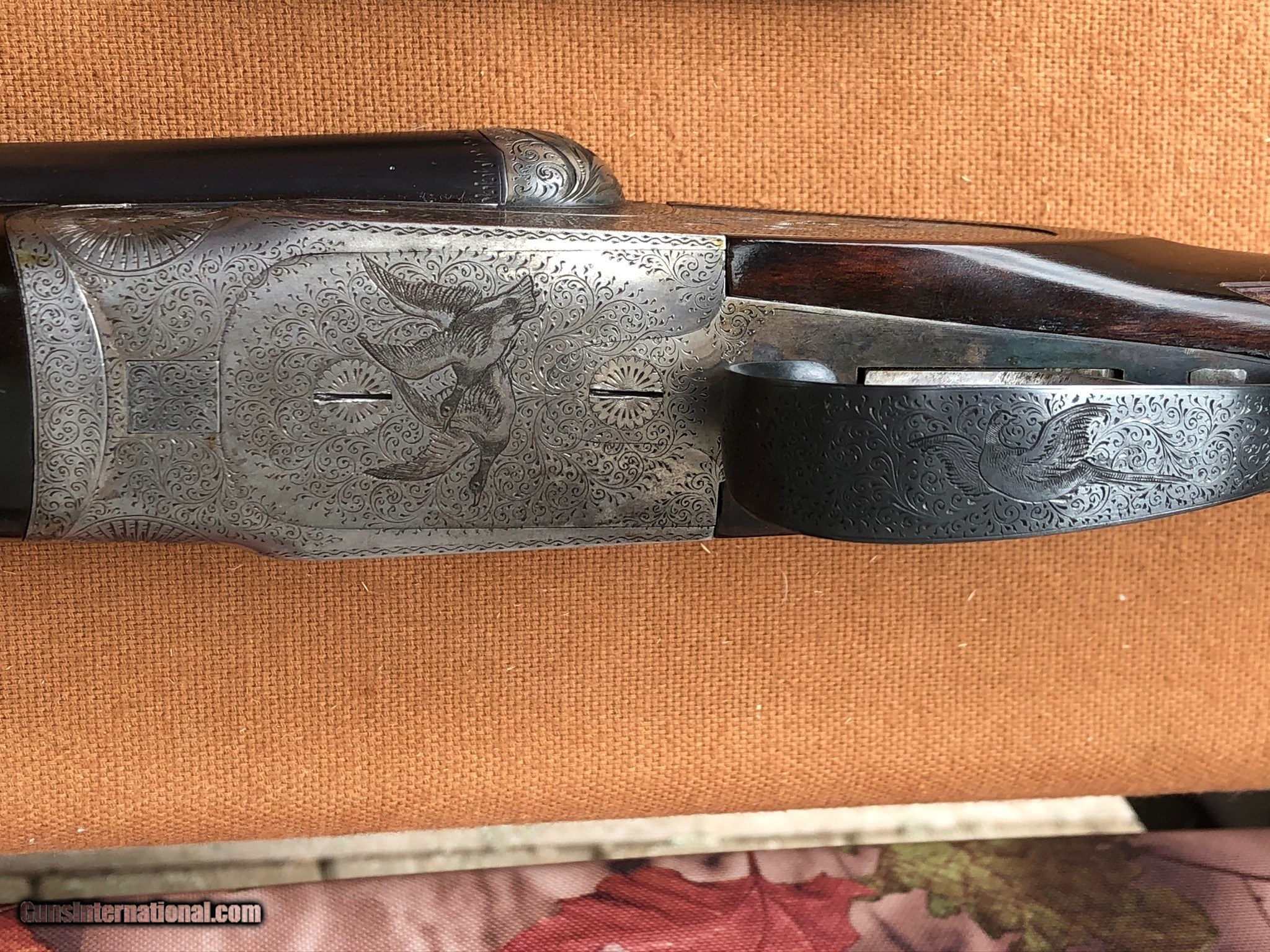 Description: From the golden age, between the wars, this 1926 30E Grade Francotte was a pricey gun in its day. Imported by Von Langerke & Detmold of New York, it features 27 1/8 inch barrels that are factory bored .000 and .024 and the barrels flats are marked 0 and Choke. The barrels have sideclips. It's a bird hunters dream gun weighing 6-5 with superb balance. It's got ejectors, a factory single trigger and factory sling eye attachments. The bores and mechanics are excellent. The wood has been professionally refinished and the LOP is 14 inches over a factory buttplate. The drops are 2 x 3 1/8 for the heads up shooter. The engraving is classically beautiful and the pictures are better then my words. Check them out. I've priced the gun to sell and you will find no better value anywhere in a first quality gun. AND-I'll pay for shipping and insurance to the lower 48. What a deal! This gun once belonged to Steve Crothers, a superb East Coast trapshooter from the 1930's-60's. SOLD |