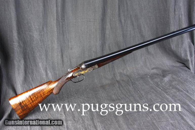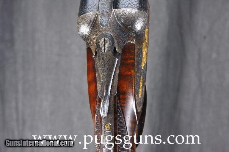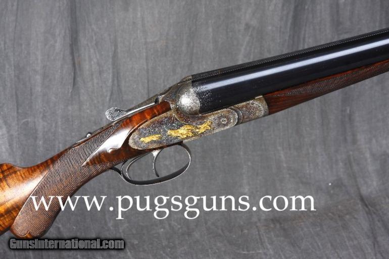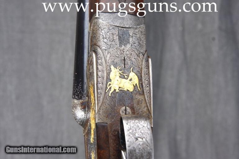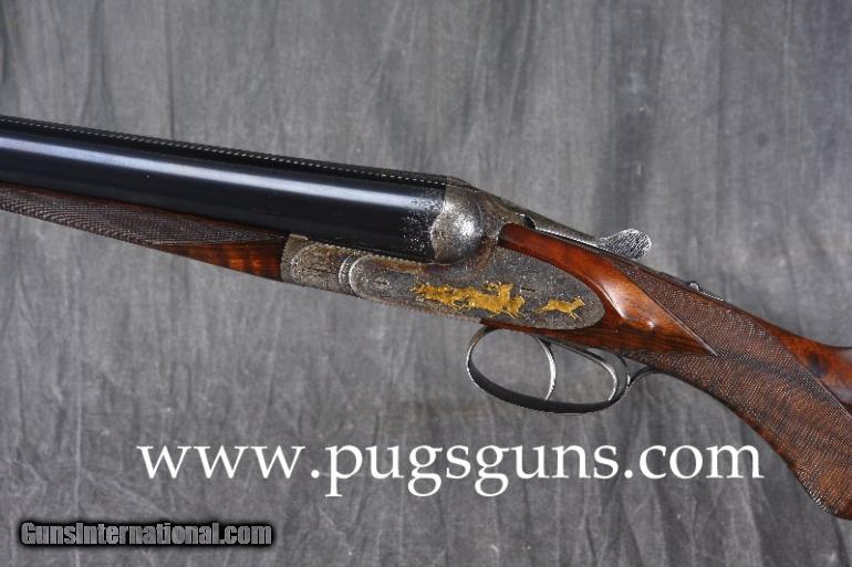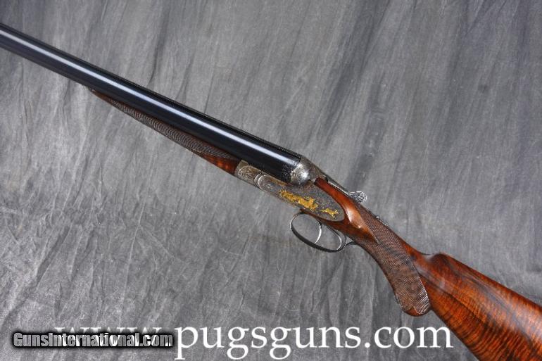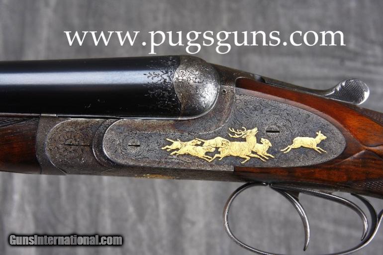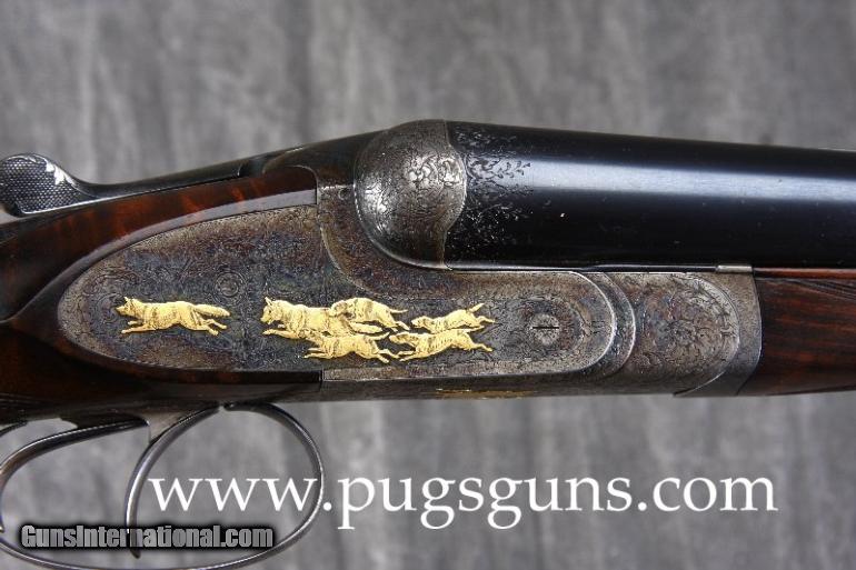 Description: Francotte 45 Special Gold Inlaid Engraved Game Scene, Has Factory Letter Stock Number 3511 Make Francotte Model 45 Special Action SxS Barrel Chamber Stamped 2 5/8 in(measures 2 3/4 in) Barrel Length 28 in Barrel Chokes .006 - .036 Barrel Proof Belgian Proof Marks Barrel Rib Type Solid Rib Drop At Comb 1 5/16 in Drop At Heel 2 1/8 in Gauge 12 ga Grip Round Knob Semi Pistol Grip Ejectors Yes Finish Gold Inlaid Engraved Game Scene Forend Splinter LOP 14 3/8 in Serial Number 64XXX Shotgun Type SxS Stock Nicely Figured Wood Trigger Double Triggers Type of Butt Checkered Butt Weight 6 lbs 14 ozs SOLD |