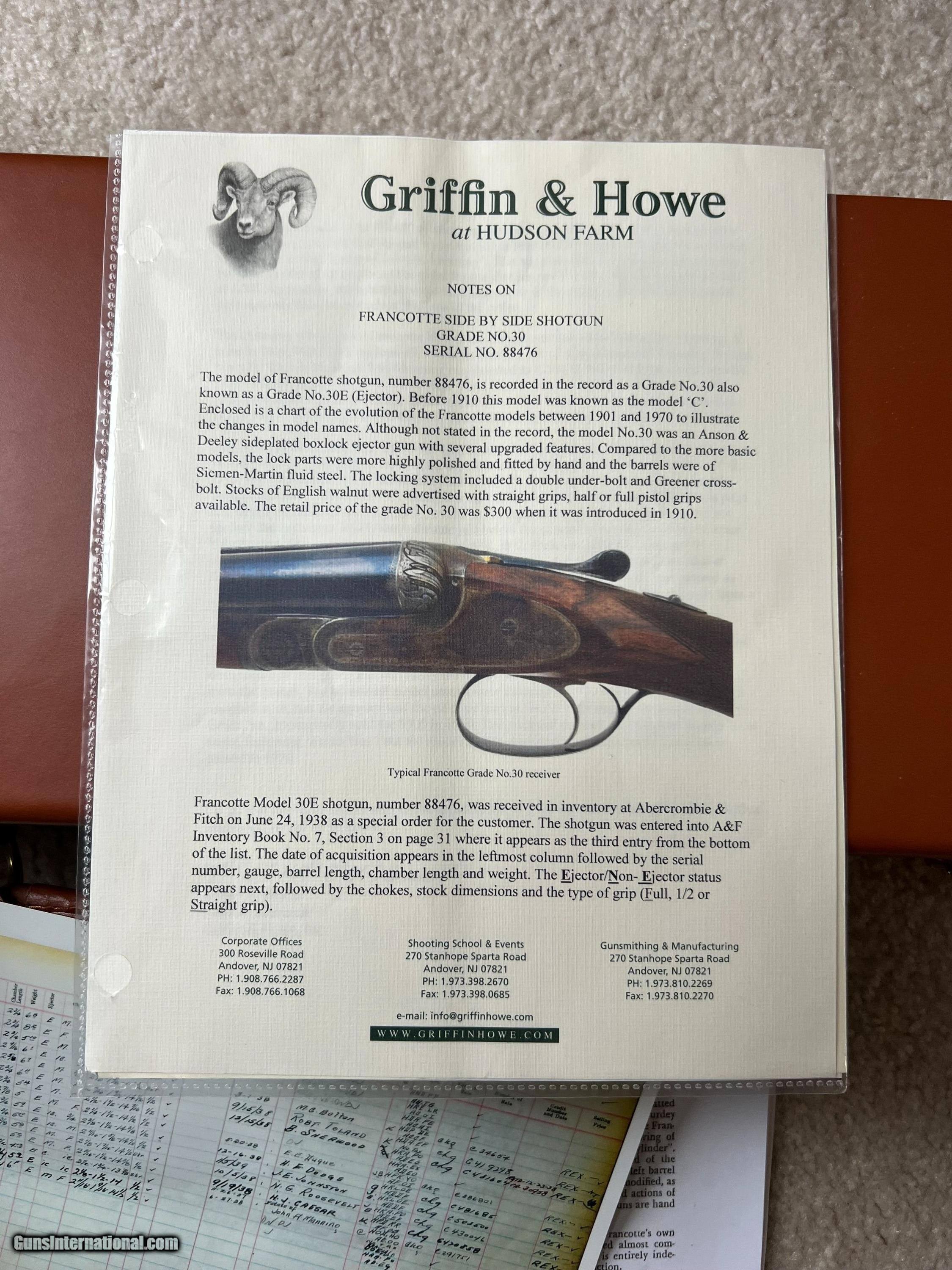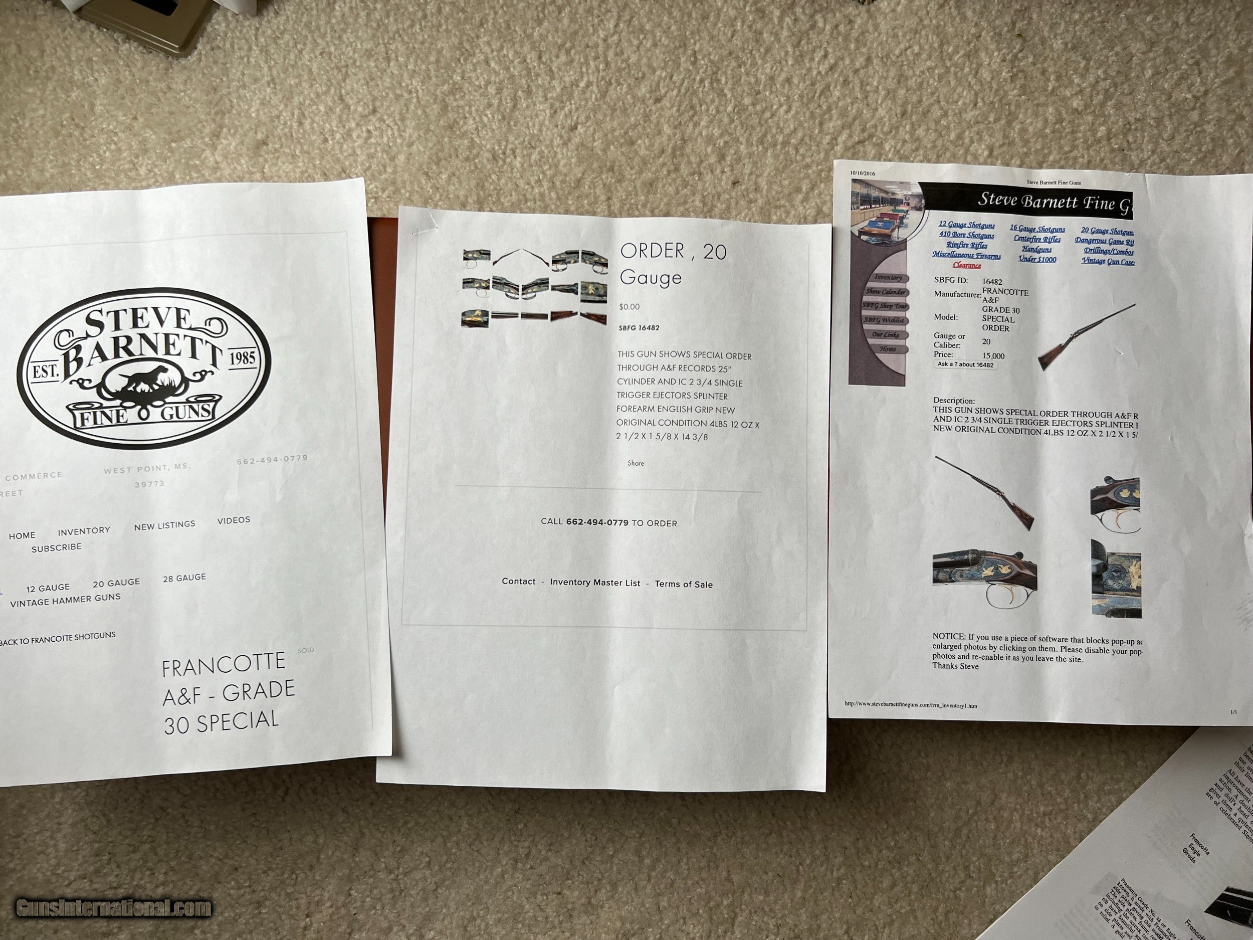 FRANCOTTE ABERCROMBIE & FITCH GRADE 30 SPECIAL ORDER SXS 20 GAUGE