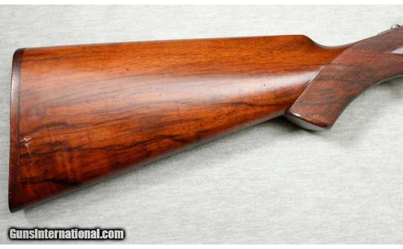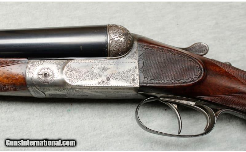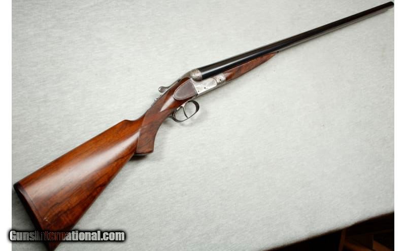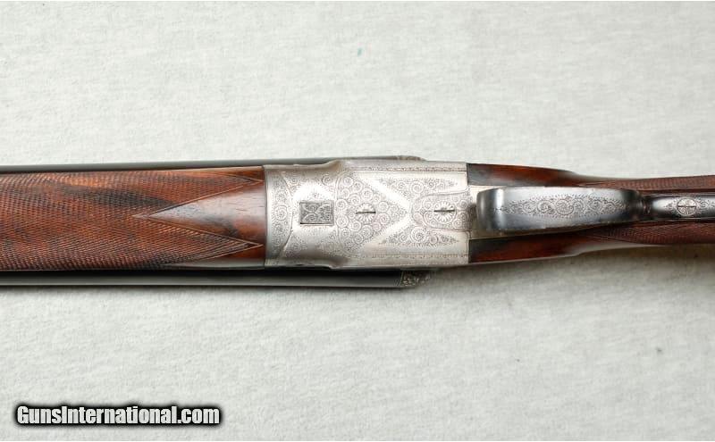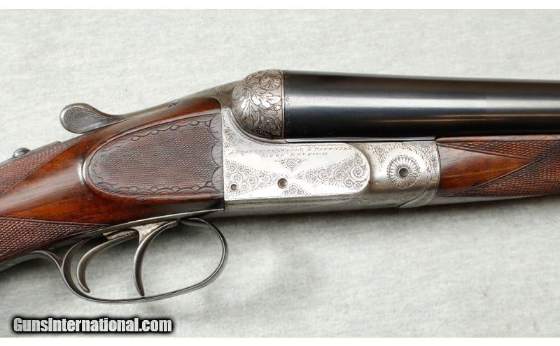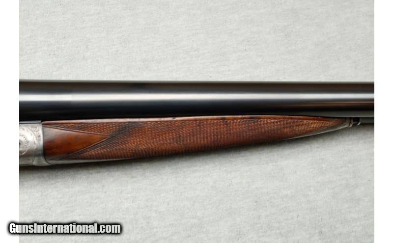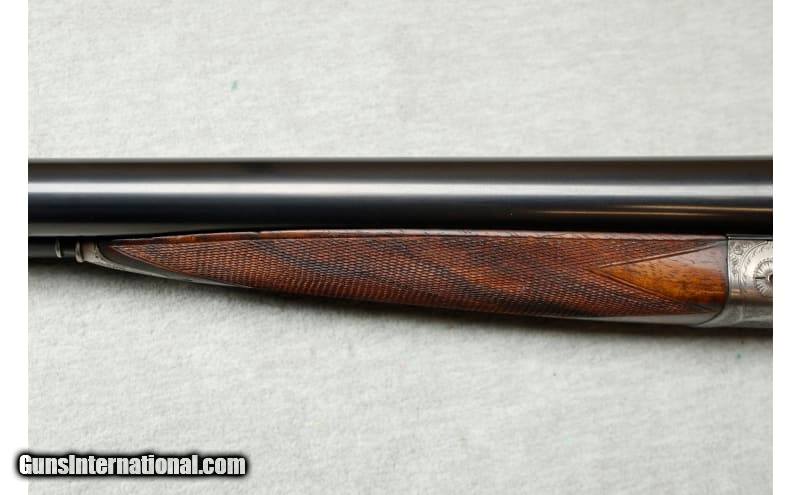 Description: Engraved A. Francotte Double Barrel Shotgun. Marked "U.S. Agents New York" on barrel. Very good overall with original finish, lightly scattered spotting/oxidation, minor handling marks. Mechanically very good. 12 Gauge SOLD Chambers: 2 3/4 Metal Condition: very good Wood Condition: very good Bore Condition: The bore is shiny aside from some minor streaking. Barrels: 30" barrels with extractor Triggers: dual triggers Stock Dimensions: 14" LOP Fore End: checkered wood Butt Pad: wood Weight: 7 lb - 10 oz Sights: bead front sight Chokes: fixed chokes Item Location: La Vista, NE |