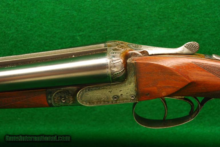 Description: Francotte Boxlock SxS Shotgun 12 Gauge 28" Barrels, Extractors Choked Mod/Full 145 3/4" LOP, 1 5/8" DAC, 2 1/4" DAH Weighs 6 1/2 Lbs. Condition: Wood refinished at some point, with generous runovers onto metal. Blue excellent on barrels, somewhat worn on action. Gun is tight and on face. Serrated butt. SOLD |