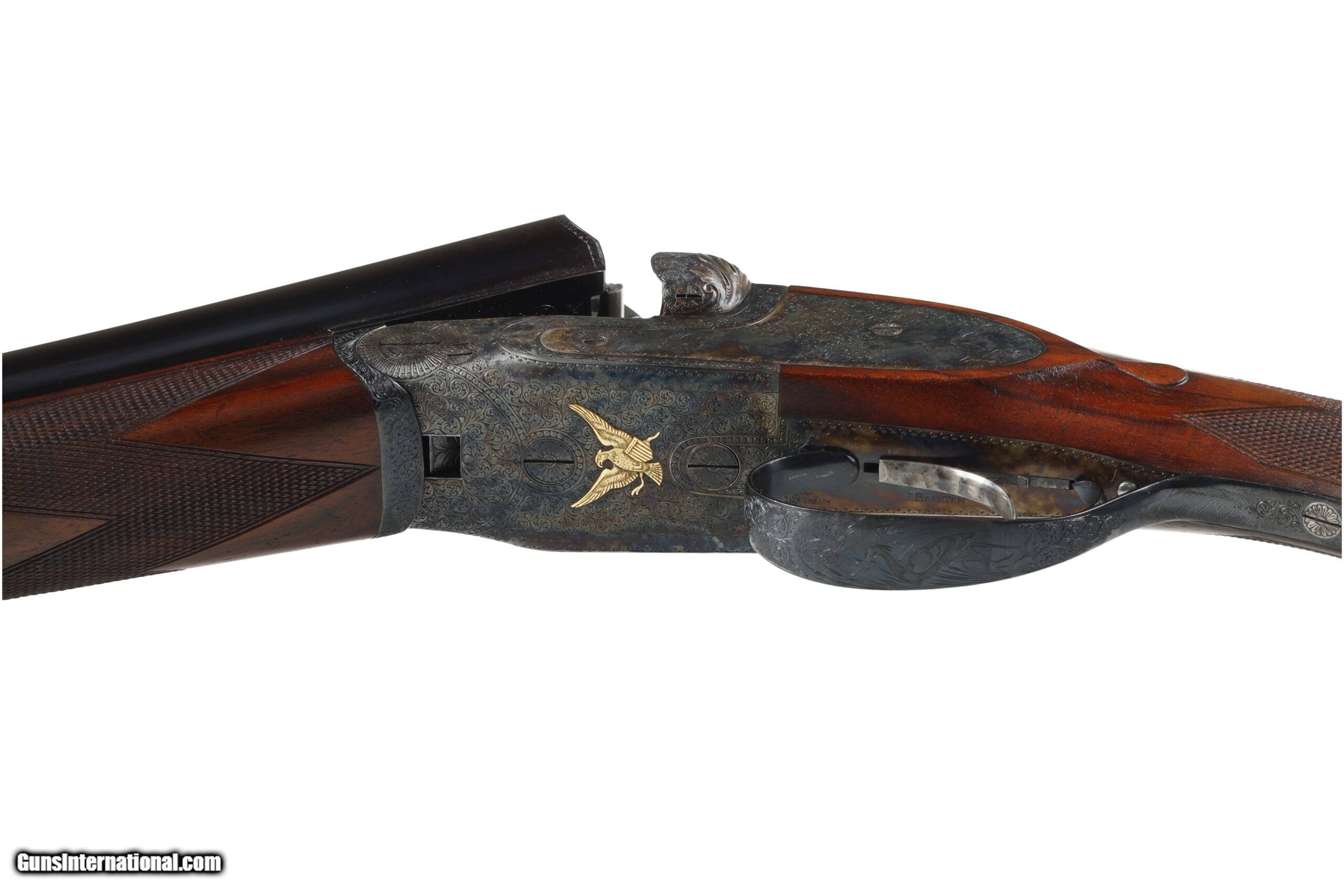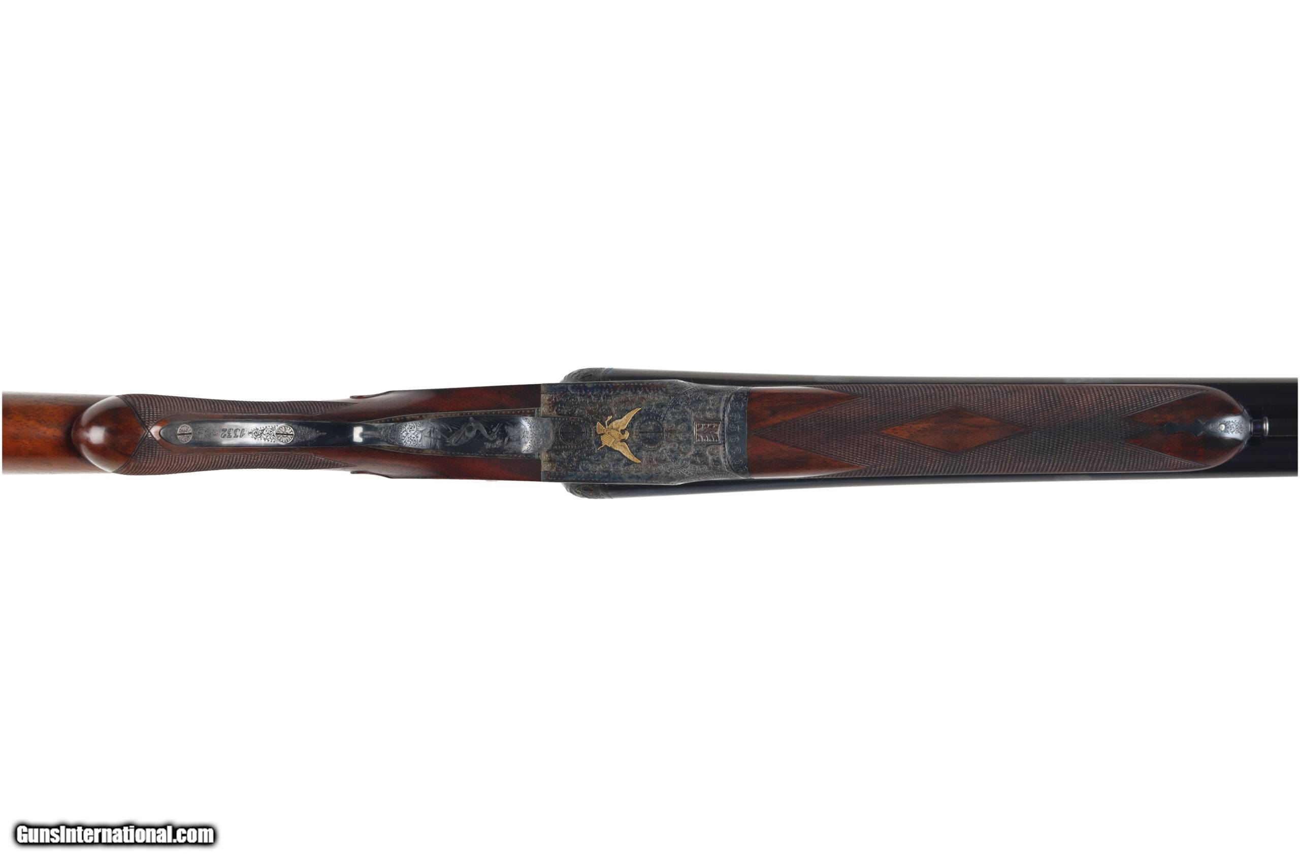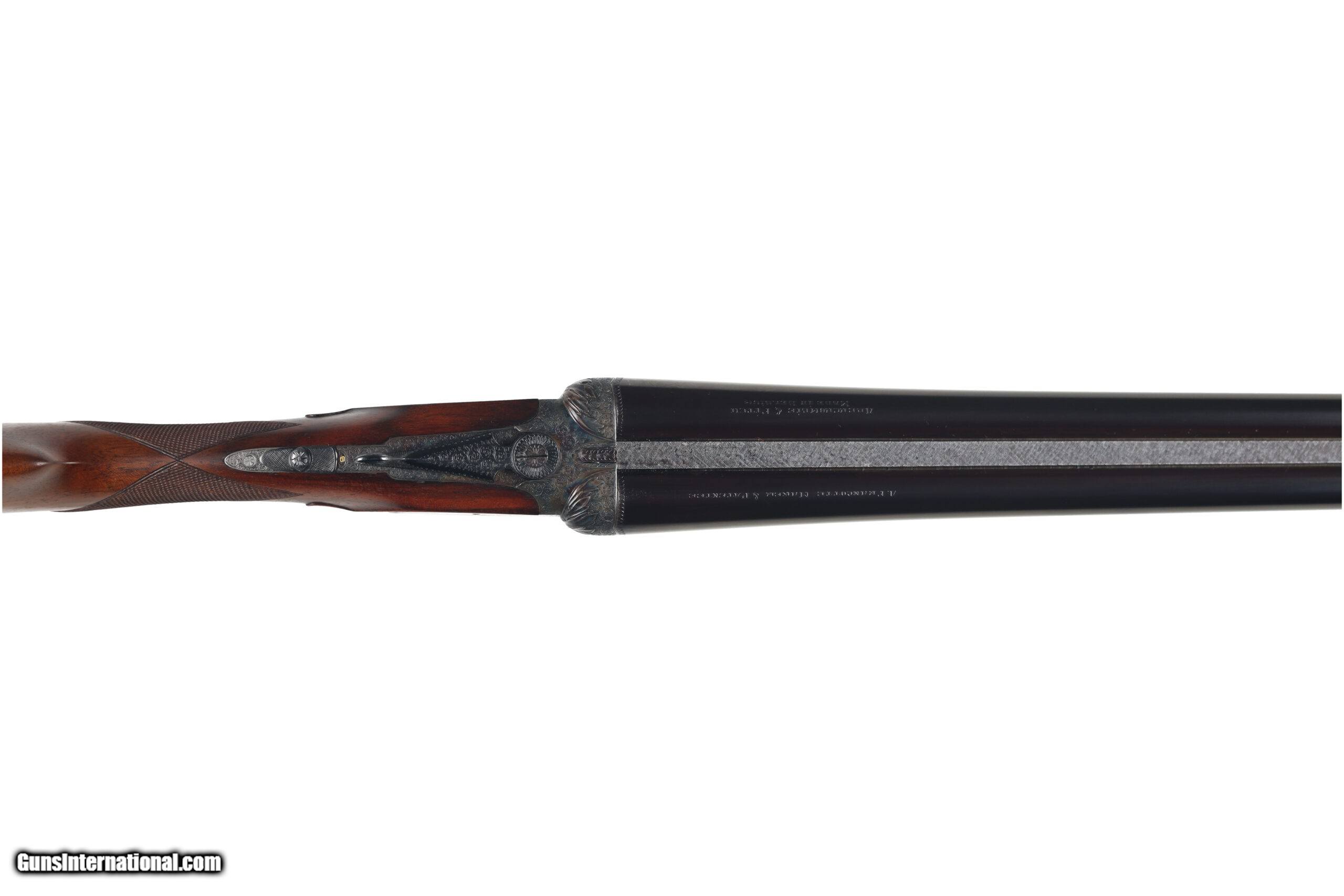 Description: This Francotte Eagle grade, originally sold through Abercrombie & Fitch , is in excellent overall condition. It exhibits only superficial wear and a few handling marks on the stock, the Leather covered recoil pad appears to be a somewhat newer addition to the gun but is fitted very well. Manufactured in: Belgium Hand: Right Hand Action Finish: Case Colored Metal Finish: Original Barrel Length: 26 Inches Barrel Condition: Excellent Stock Finish: Original Stock Condition: Excellent Type of Butt: Leather Covered Pad Pad Thickness: 7/8 Inch Grip: Round Knob Pistol Grip Forend: Checkered Splinter Cast Amount: 3/16" SOLD Manufacturer: Francotte Model: Eagle Chambers: 2 3/4 Ejectors: Yes Condition: Preowned Metal Condition: Excellent Action: Side by Side Triggers: Single Gauge Info: 20 Gauge Stock Comb: 1 1/2 Stock Heel: 2 3/8 Stock Cast: Off Fore End: Checkered Splinter Butt Pad: 7/8 Inch LOP: 14 1/2 Rib: Matted Game Rib Finish: Original Weight: 5.8 lbs Chokes: LM/M Case: Leather Motor Case |