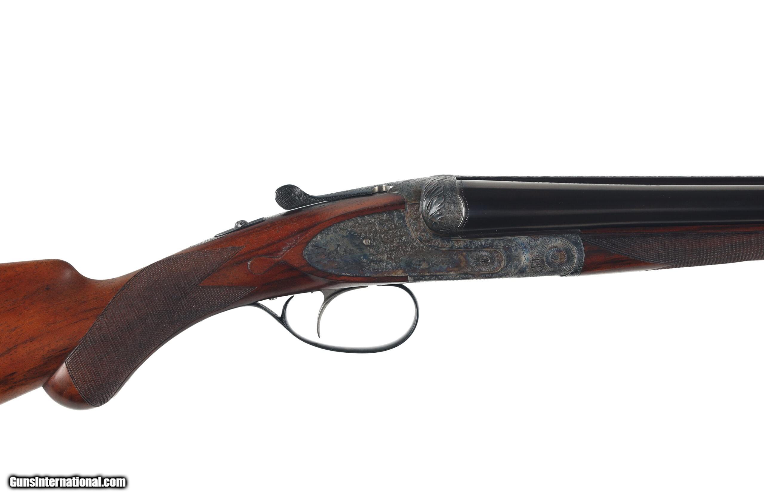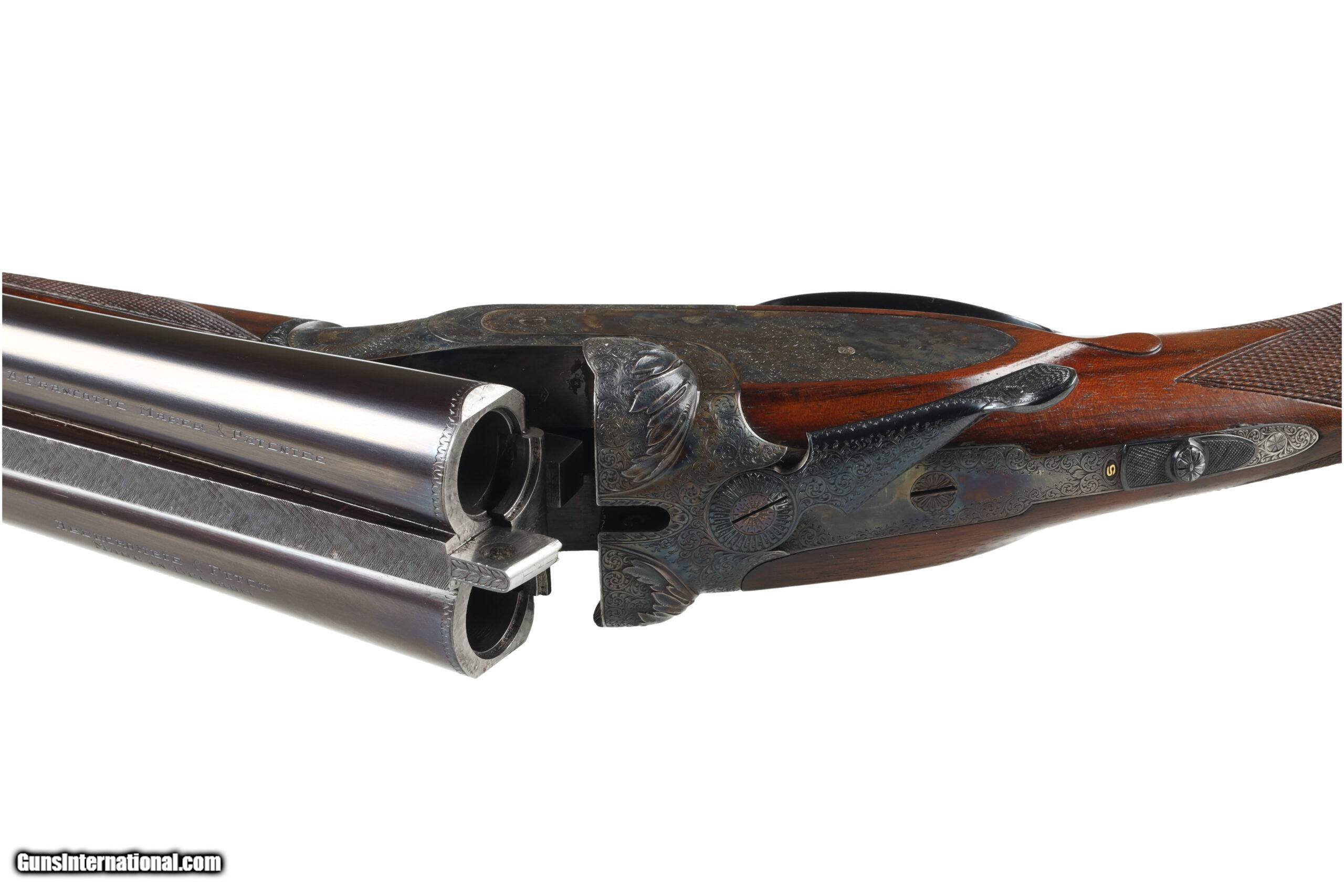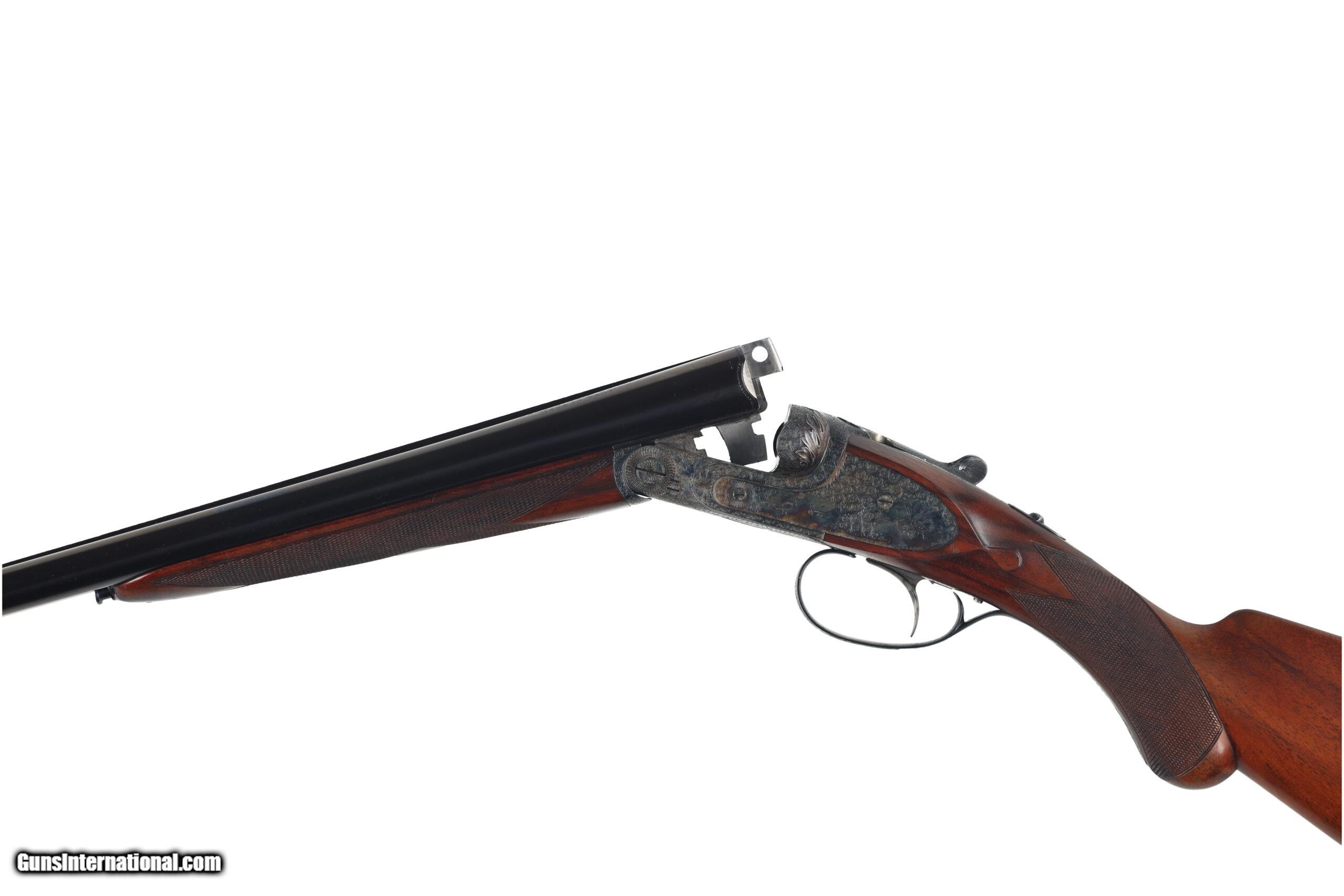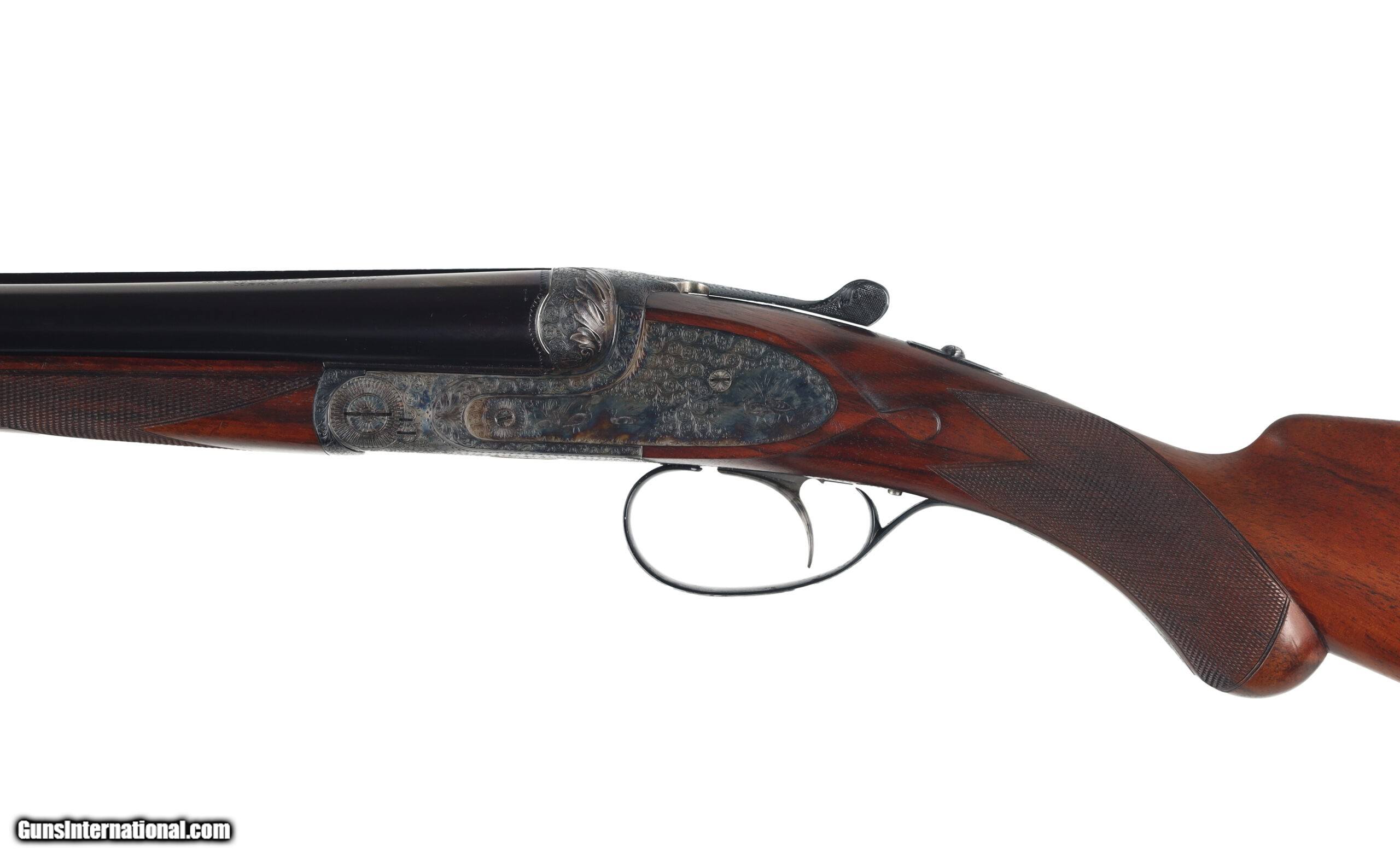 Description: This Francotte Eagle grade, originally sold through Abercrombie & Fitch , is in excellent overall condition. It exhibits only superficial wear and a few handling marks on the stock, the Leather covered recoil pad appears to be a somewhat newer addition to the gun but is fitted very well. Manufactured in: Belgium Hand: Right Hand Action Finish: Case Colored Metal Finish: Original Barrel Length: 26 Inches Barrel Condition: Excellent Stock Finish: Original Stock Condition: Excellent Type of Butt: Leather Covered Pad Pad Thickness: 7/8 Inch Grip: Round Knob Pistol Grip Forend: Checkered Splinter Cast Amount: 3/16" SOLD Manufacturer: Francotte Model: Eagle Chambers: 2 3/4 Ejectors: Yes Condition: Preowned Metal Condition: Excellent Action: Side by Side Triggers: Single Gauge Info: 20 Gauge Stock Comb: 1 1/2 Stock Heel: 2 3/8 Stock Cast: Off Fore End: Checkered Splinter Butt Pad: 7/8 Inch LOP: 14 1/2 Rib: Matted Game Rib Finish: Original Weight: 5.8 lbs Chokes: LM/M Case: Leather Motor Case |