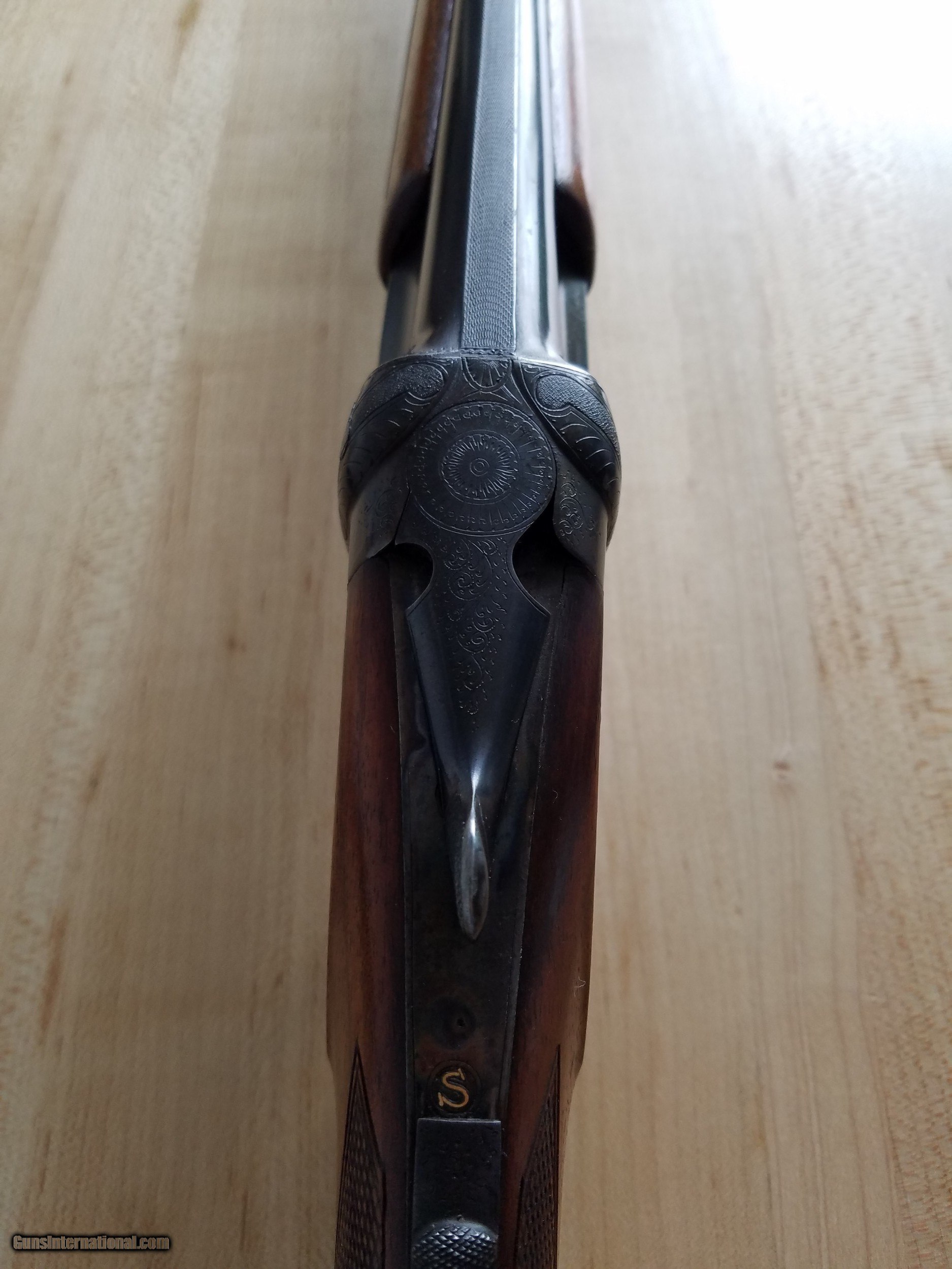 Description: 1939 Francotte. 20 Ga., 2 3/4". Bbls. 26" Long, Imp. cyl. & Imp. mod. Ejectors are strong and on time .Color case hardened action. Blued bbls. & furniture. Checkered walnut straight hand stock w/ after market recoil pad. Checkered walnut forend. Double triggers. Abercrombie & Fitch import marked. DAC: 1 5/8". DAH: 2 3/8". LOP: 13 3/4" to the end of after market pad and 12 1/2" to the end of wood stock. Weight: 6 lbs. bright case colors w/ 85" original blue having fading on lower tang & trigger guard bow. Wood has been sanded & refinished w/ metal lightly proud to wood. Bores remain bright & shiny. Action tight on face. $50.00 shipping and handling to your FFL. Please make sure your FFL except transfer from individual. NO TRNSFER TO CALIFORNIA postal money order or certified checks local buyers are welcome. include a picture of email communication with Griffin & Howe Archivist Mr. Beach about the history of this shotgun SOLD Manufacturer: Francotte Model: Over Under Bore: 20 Chambers: 2 3/4 Ejectors: Yes Condition: Used Metal Condition: Excellent Wood Condition: Very Good Bore Condition: excellent Barrels: 26 Action: Box Lock Triggers: Double Weight: 6.00 lb. Manufacture Date: 1939 Case: No Item Location: PA |