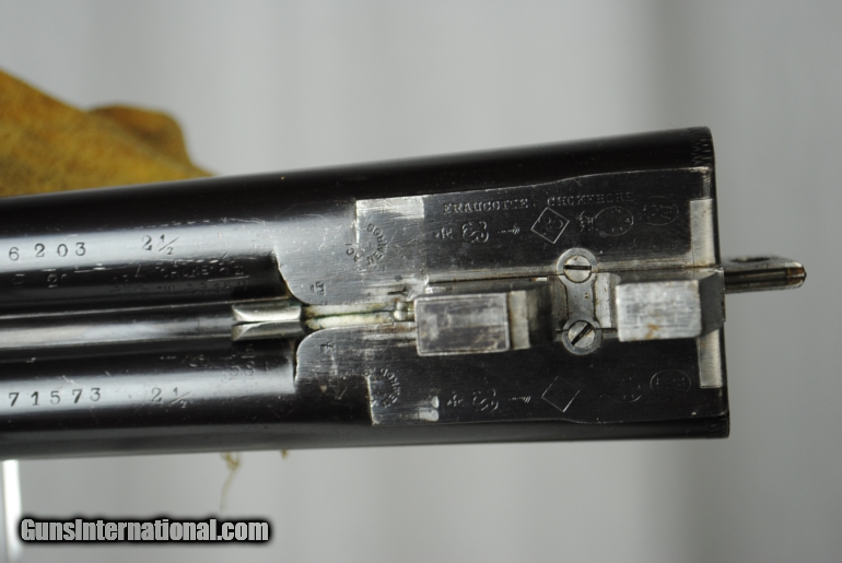 Description: Here is a nice Vintage Framncotte Knock About Gun in 20 gauge with ejectors. Imported by VL&D - New York. Francotte makers stamps on barrel flats and forend iron. Barrels are 26". Right bore measures .626 with 8/1000 choke (IC). Left barrel measures .625 with 27/1000 choke (Full). Chambers are 2 3/4". Mirror bores. Purdey style double under bite with Greener style third fastener. Auto Safety. Engraved stock oval. Tight on face. Single front bead. Weight of gun is 5 LBS 13 1/8 OZ. Shipping is 40. Stock dimensions follow. LOP - 14 1/2" Drop at Comb - 1 3/8" Drop at Heel - 2 1/2" For inquires please call Guy 407-721-3748 SOLD Curio/Relic: Yes |