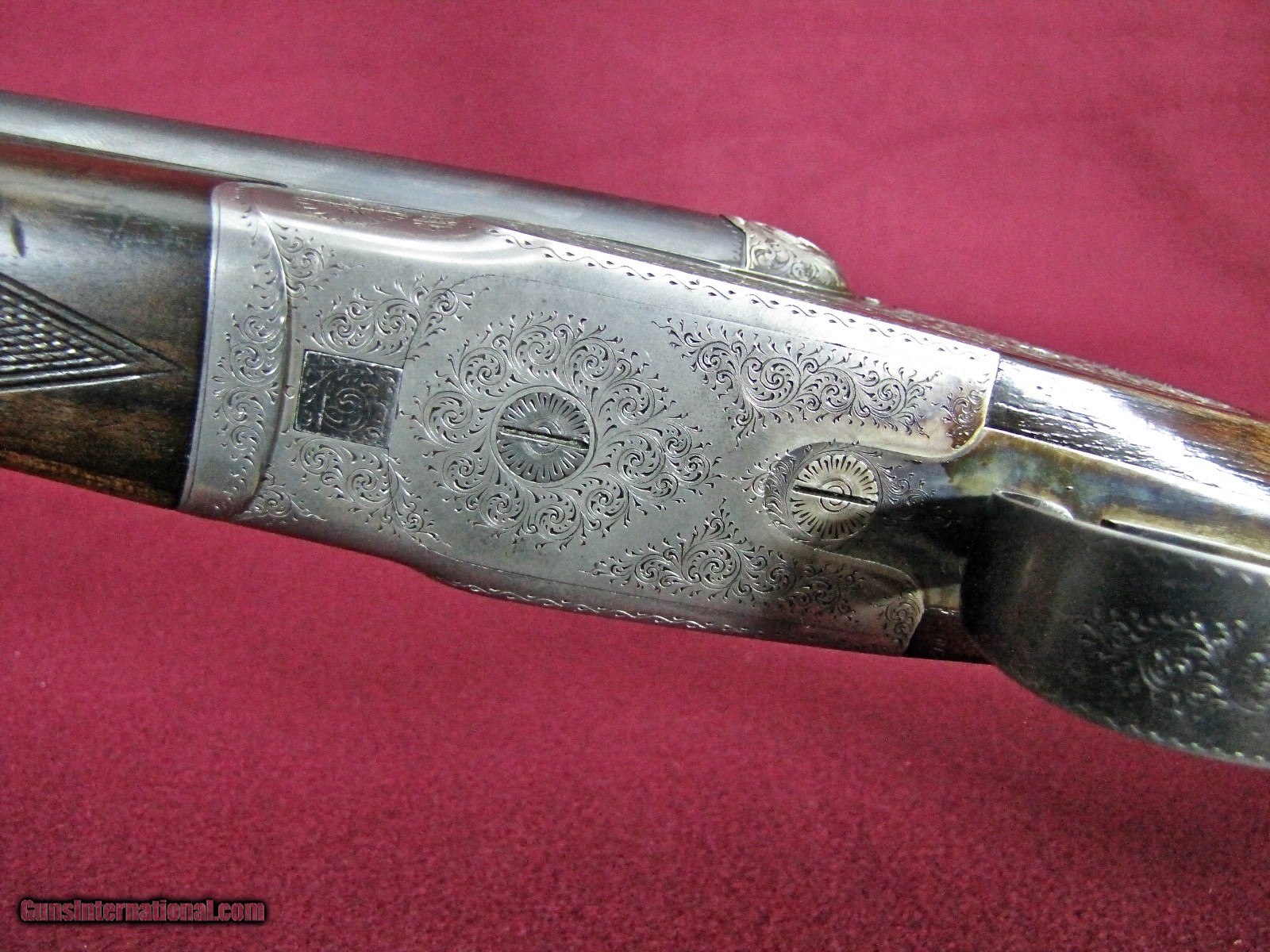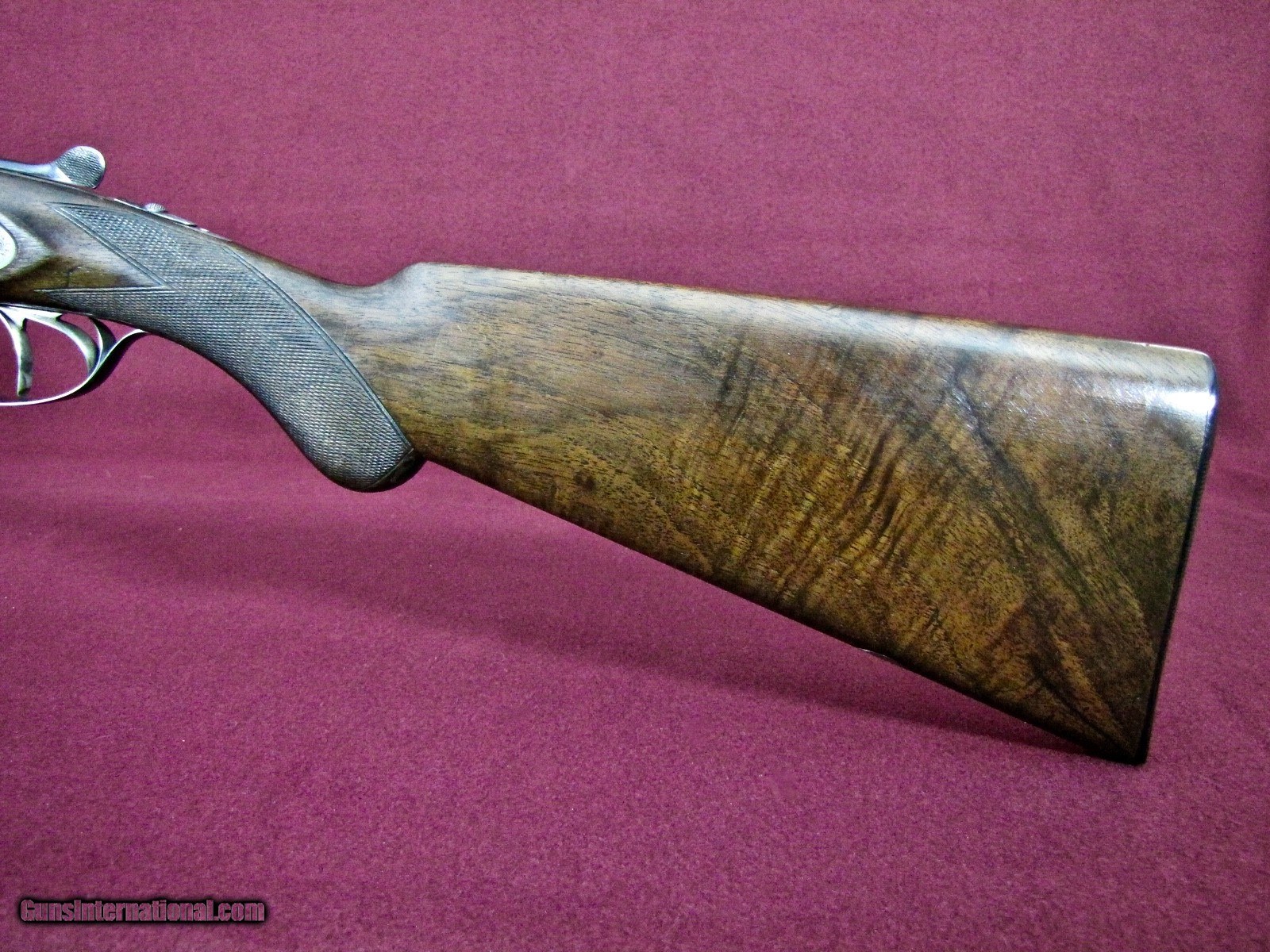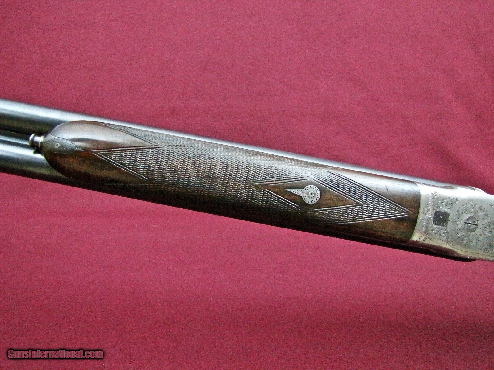 Description: I have for sale a very nice Francotte Model 20E in 20 gauge. This gun is set up perfectly for the uplands, so if you are a grouse, woodcock, or quail hunter take a long look at this one. This gun was built in 1936 and sold to Shaw Walker, owner of a nationally known furniture business by Abercrombie & Fitch. His initials are still on the initial shield. His name is also on the lovely leather toe under luggage case that was bought with the gun and has cleaning rod, oil bottle, snap caps, and cleaning jags, all from A&F and so marked. The gun has 26 inch barrels with ejectors and bores of .627 on the right barrel and .626 on the left. Choke constrictions are .004 right and .010 left. Chambers are original and 2 3/4 inches. Stock dimensions are 1 1/2 X 2 1/4 X 14 1/4 over the original bone butt plate with engraved screws. Cast of the gun is neutral and it features a 1/2 pistol grip or Prince of Wales grip. Splinter forend and Anson Latch. Weight of the gun is exactly as it was when originally sold at 5 pounds 8 ounces so it certainly won't wear you out in the grouse woods. Action is the Anson & Deeley style box lock with sideplates and features a Purdey style double underlug. The action has a greener crossbolt and sideclips making it a super strong action especially considering the weight. Gun appears to be all original with the exception of I believe somewhere along the line a lite coat of finish has been added but it may be original??? I have a very complete package of information done by Mr. Beach on this gun telling the history and specifications. Price of this lovely little original gun is $5000 plus $50 shipping to your FFL. Contact me with any questions. As always there is a three day non-firing inspection period on the gun with the buyer paying shipping charges if returned. SOLD Shotgun Gauge: 20 Gauge Manufacturer: Francotte Model: 20E Serial Number: 88111 Barrel Length: 26 Chambers: 2 3/4 Ejectors: Yes selective well timed Condition: Excellent Original Metal Condition: Good with bluing Wear Wood Condition: Good with some marks Bore Condition: Excellent Action: Anson & Deely Boxlock Triggers: Double Stock: 1/2 Pistol Stock Comb: 1 1/2 Stock Heel: 2 1/4 Stock Cast: Neutral - no cast Fore End: Splinter Butt Pad: Original Bone LOP: 14 1/4 Rib: Solid Raised Weight: 5 pounds 8 ounces Manufacture Date: 1936 Choke Left: .010 IC Choke Right: .004 Skeet Engraving: Scroll Extras: Cleaning Rod and Tools Case: A&F Leather Toe Under |