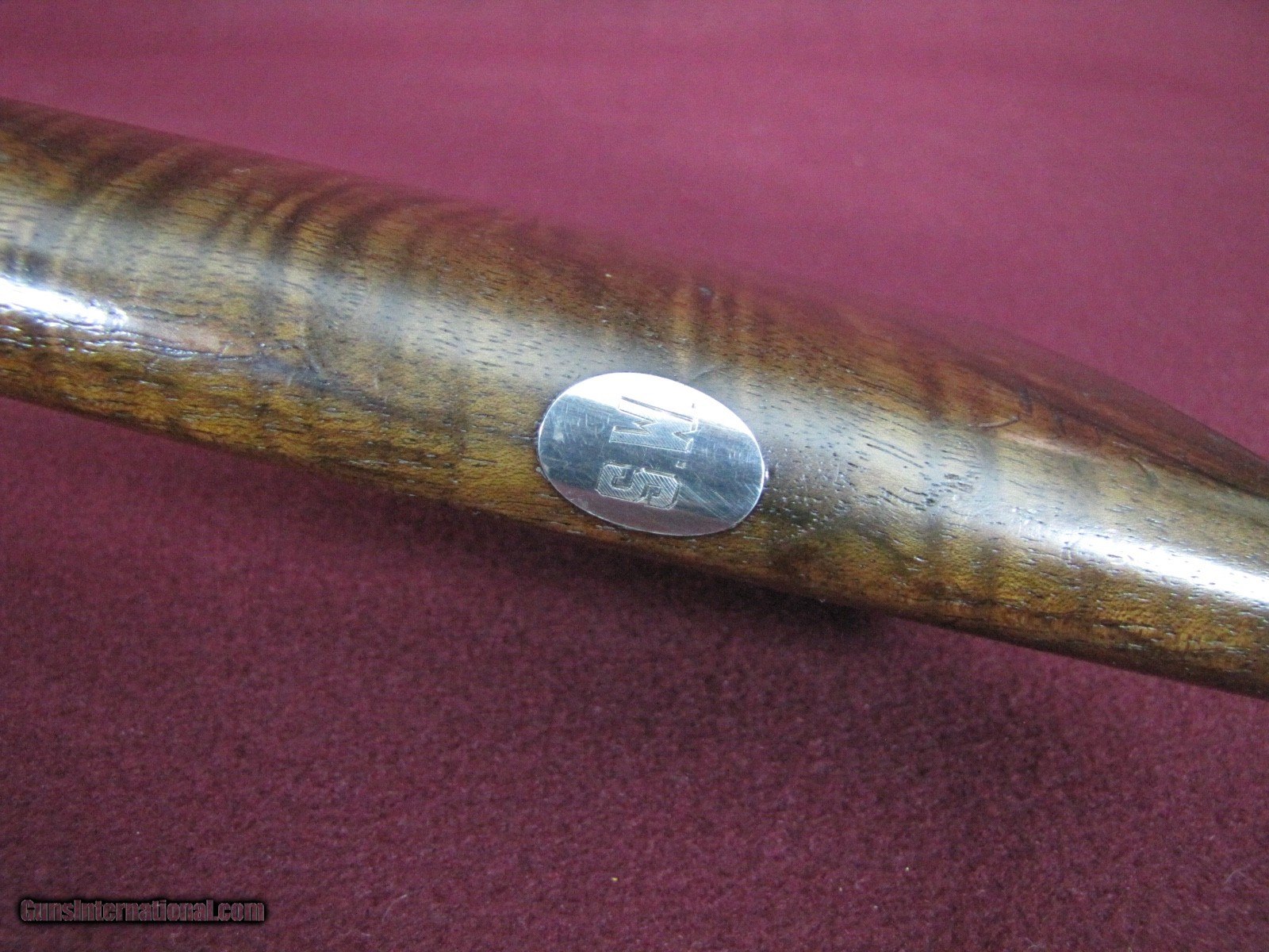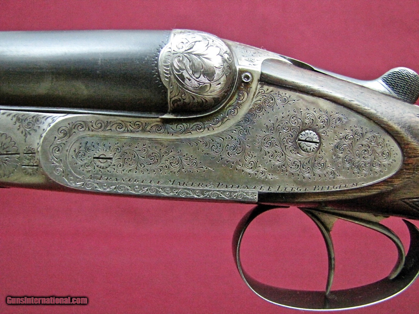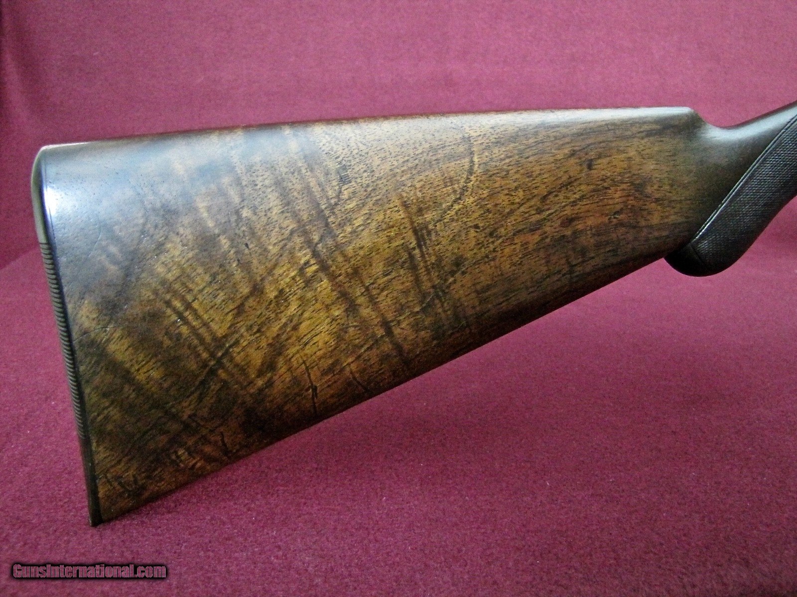 Description: I have for sale a very nice Francotte Model 20E in 20 gauge. This gun is set up perfectly for the uplands, so if you are a grouse, woodcock, or quail hunter take a long look at this one. This gun was built in 1936 and sold to Shaw Walker, owner of a nationally known furniture business by Abercrombie & Fitch. His initials are still on the initial shield. His name is also on the lovely leather toe under luggage case that was bought with the gun and has cleaning rod, oil bottle, snap caps, and cleaning jags, all from A&F and so marked. The gun has 26 inch barrels with ejectors and bores of .627 on the right barrel and .626 on the left. Choke constrictions are .004 right and .010 left. Chambers are original and 2 3/4 inches. Stock dimensions are 1 1/2 X 2 1/4 X 14 1/4 over the original bone butt plate with engraved screws. Cast of the gun is neutral and it features a 1/2 pistol grip or Prince of Wales grip. Splinter forend and Anson Latch. Weight of the gun is exactly as it was when originally sold at 5 pounds 8 ounces so it certainly won't wear you out in the grouse woods. Action is the Anson & Deeley style box lock with sideplates and features a Purdey style double underlug. The action has a greener crossbolt and sideclips making it a super strong action especially considering the weight. Gun appears to be all original with the exception of I believe somewhere along the line a lite coat of finish has been added but it may be original??? I have a very complete package of information done by Mr. Beach on this gun telling the history and specifications. Price of this lovely little original gun is $5000 plus $50 shipping to your FFL. Contact me with any questions. As always there is a three day non-firing inspection period on the gun with the buyer paying shipping charges if returned. SOLD Shotgun Gauge: 20 Gauge Manufacturer: Francotte Model: 20E Serial Number: 88111 Barrel Length: 26 Chambers: 2 3/4 Ejectors: Yes selective well timed Condition: Excellent Original Metal Condition: Good with bluing Wear Wood Condition: Good with some marks Bore Condition: Excellent Action: Anson & Deely Boxlock Triggers: Double Stock: 1/2 Pistol Stock Comb: 1 1/2 Stock Heel: 2 1/4 Stock Cast: Neutral - no cast Fore End: Splinter Butt Pad: Original Bone LOP: 14 1/4 Rib: Solid Raised Weight: 5 pounds 8 ounces Manufacture Date: 1936 Choke Left: .010 IC Choke Right: .004 Skeet Engraving: Scroll Extras: Cleaning Rod and Tools Case: A&F Leather Toe Under |