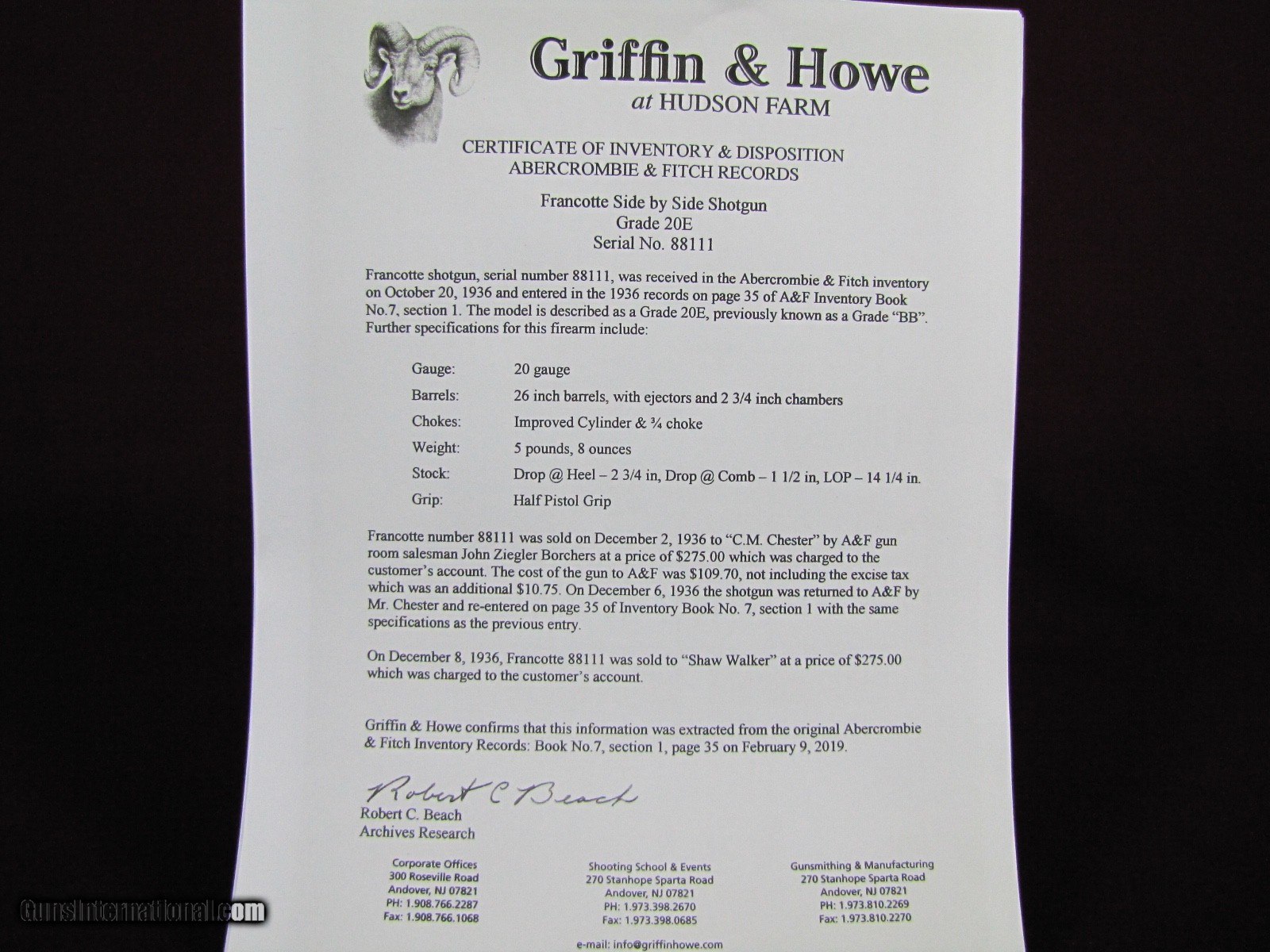 Francotte Model 20E in 20 Gauge Original and Lovely
