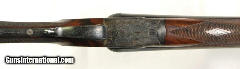 Description: Francotte Pre - 25E, 12 gauge Side plated boxlock SXS, 2 3/4" Chambers, 28" bbls., Choke: Rt. .732 / .005 / SKT, Left: .732 / .017 / Mod., Auto ejectors, Highly figured straight stock w/ splinter forearm, Double triggers, Ejectors, DC: 1 7/16", DH: 2 1/8", Cast at heel: 1/8" OFF, LOP: 14 1/4", Weight: 6 lb. 4 0z., Condition: Excellent, Made in Belgium circa 1899, Serial #: 32180, (C7009) Fieldsport: $ 5995. Early 25E Style w/ Foliate Engraved w/ Gold Inlays, Case Colored Action w/ Sideplates and Side Clips. Double Triggers, Automatic Ejectors, Beautifully Figured Walnut Stock w/ Checkered Butt and Splinter Forearm. Made For Von Lengerke & Detmold, US Agents New York, Made in Belgium in 1899 w/ Factory Letter Of Authenticity. This Is A Stunning Heirloom Game Gun Worthy Of Any Fine Gun Collection. Fieldsport: $ 5995 To see & enjoy the entire inventory fo fine shotguns, rifles and handguns, In the FIELDSPORT Gun Room, we invite you to visit us at FIELDSPORTLTD SOLD Manufacturer: Francotte Model: Pre-25E Serial Number: 32180 Condition: Excellent Barrels: Barrel Length: 28 Barrel Type: SxS Action: Side plated boxlock SxS Triggers: Double Triggers Gauge Info: 12 Gauge Stock: Highly Figured Walnut Stock Drop: Drop At Face: 1 3/4" At 4 1/2 Stock Comb: Drop At Comb: 1 7/16 Stock Heel: Drop At Heel: 2 1/8 Stock Cast: Cast At Heel: 1/8" OFF Fore End: Splinter Forend Butt Pad: Checkered Butt LOP: L.O.P.: 14 1/4 Rib: Filed Concave Finish: Case Colored Receiver W/ Best Hand Rubbed Oil Satin Finish Weight: 6 Lbs. 4 Oz. Manufacture Date: 1899 Choke Left: .732 / .017 / Mod. Choke Right: .732 / .005 / Skt. Engraving: Beautiful Scroll Engraving W/ Rosettes and Gold Inlays Extras: Factory Letters Authenticating 1899 Production Item Location: Michigan |