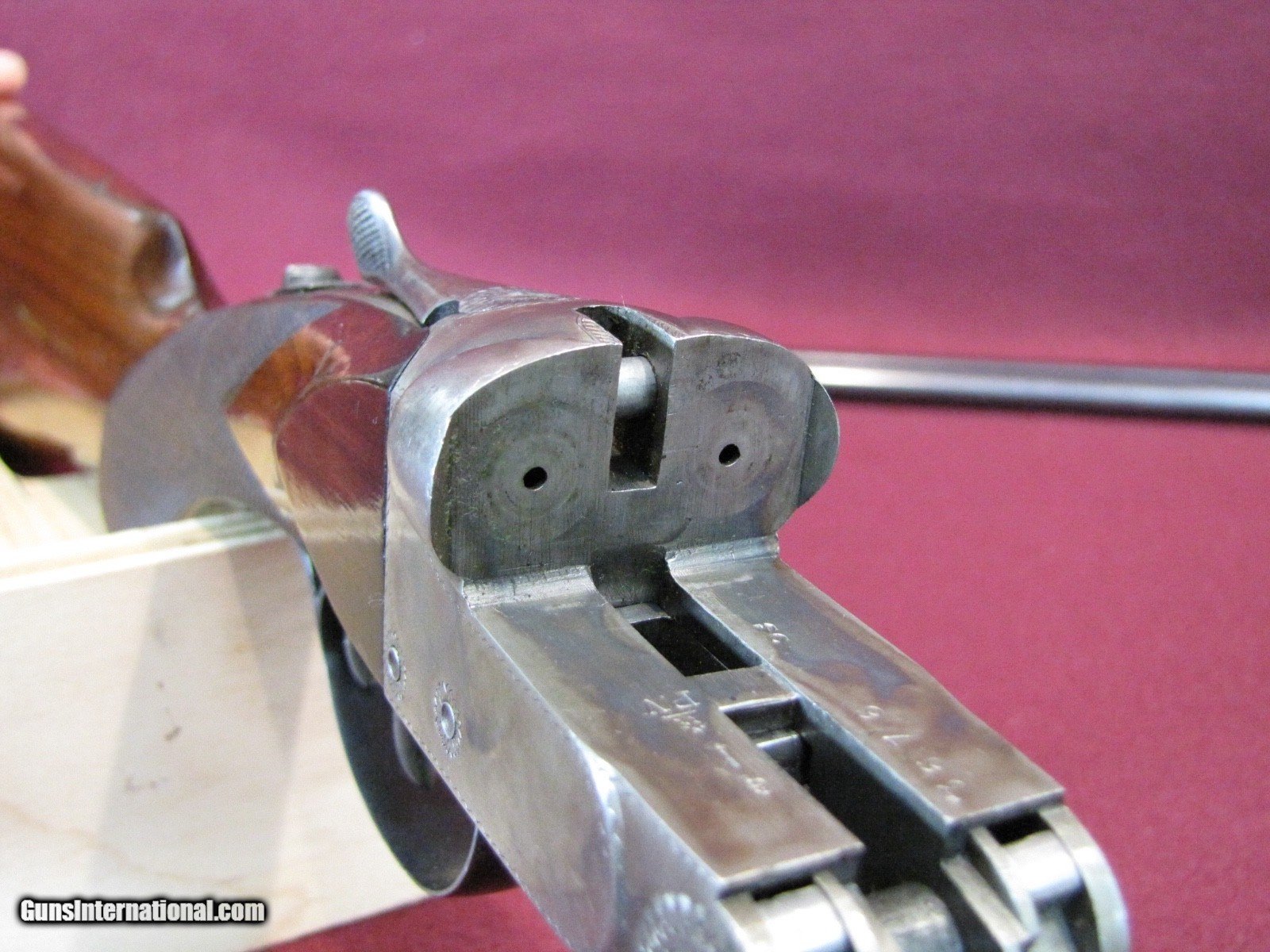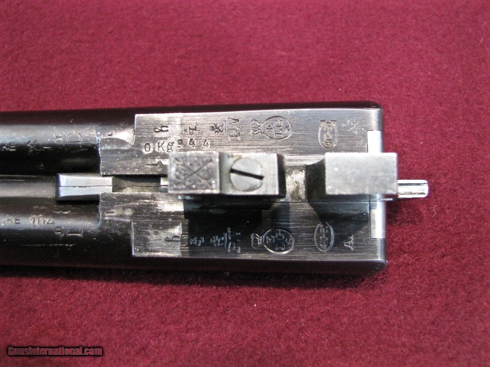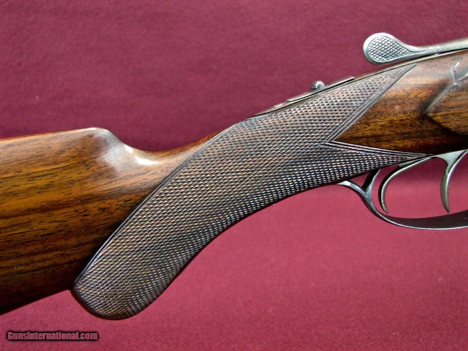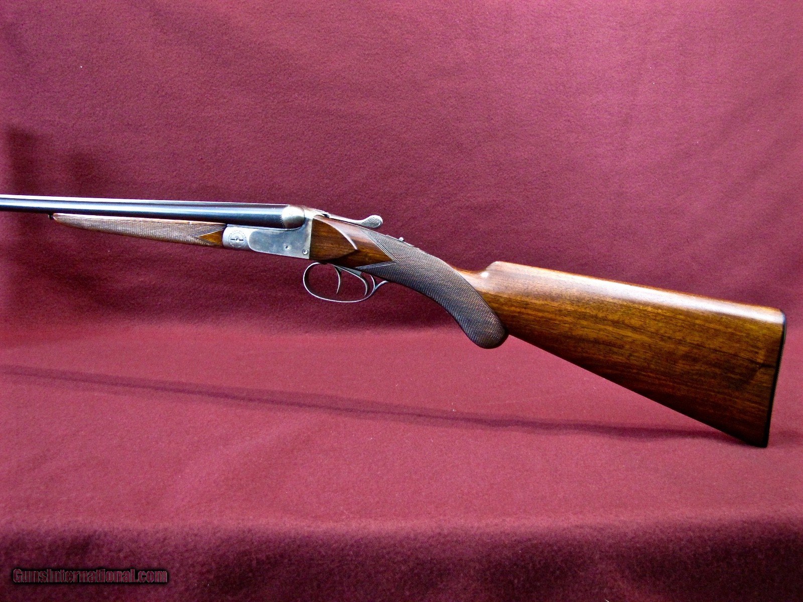 Description: Gun is now sold pending payment and inspection. I have for sale a rare little piece and one that I think one any side by side guy would enjoy owning. This gun is a Francotte Model 1923-H and from what I'm told by Bob Beach the very fine gentleman that is in charge of all the records for Griffin & Howe there were very few of these brought into this country. This little gun features 26 inch barrels with untouched bores that measure .411 in the right barrel and .412 in the left. Chokes (restriction) measures .014 in the right barrel, and .016 in the left barrel giving you improved modified in both barrels. Chambers measure 3 inches exactly. Barrels have an ivory front and mid bead. Barrels have side clips and ejectors which are very strong. Bluing is all original and nice with a few marks which can be seen in the pictures. There is no rust or corrosion on the barrels and they are very tight and on face. Lockup includes a greener cross bolt, side clips, and locking lugs. Stock is in excellent original condition with a few scattered marks and having a Prince of Wales grip. Forend is tiny splinter with Anson latch. Stock dimensions are very nice at 1 1/2 X 2 1/2 X 14 1/2 over original horn butt plate which is in excellent condition. Stock is cast off for the right hand shooter. Weight of the gun is 4 pounds 9 ounces and it has wonderful balance. Mr. Beach is preparing a research packet on the gun which I will receive and will pass along to the new owner. He has told me the gun was received by V L & D on April 3rd,1930. Price of the gun is $XXXX plus shipping to your FFL. This is a very unique little gun and one that you will be proud to own, shoot, and hunt with. How much fun would this be to shoot Quail, Grouse, or Woodcock, over a nice pointing dog with this little gun? SOLD Manufacturer: Francotte Model: 1923-H Chambers: 3 inch Ejectors: Yes Selective Strong Metal Condition: Excellent Light Marks Wood Condition: Excellent Light handling impressions Bore Condition: Bright Action: Boxlock Triggers: Double Gauge Info: 410 Stock: Prince of Wales Stock Comb: 1 1/2 Stock Heel: 2 1/2 Stock Cast: Off for Right Hand Shooter Butt Pad: Bone Original LOP: 14 1/2 Weight: 4 pounds 9 ounces Sights: Front and Middle Bead Ivory Manufacture Date: 1946 Choke Left: Improved Modified Choke Right: Improved Modified |