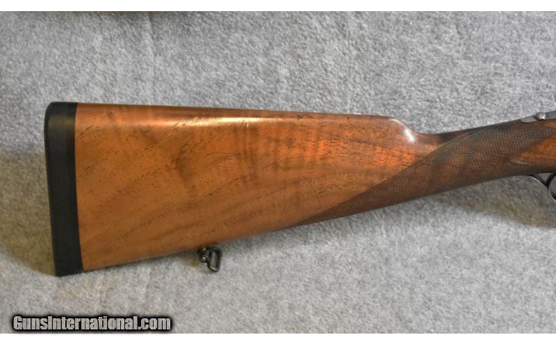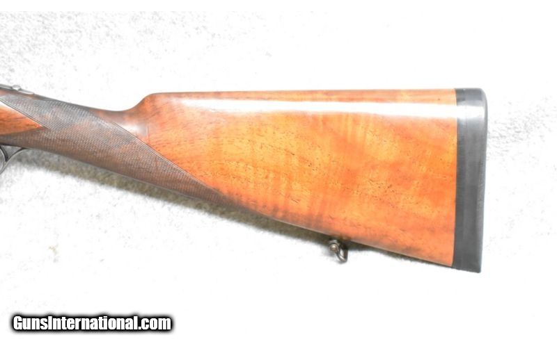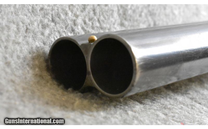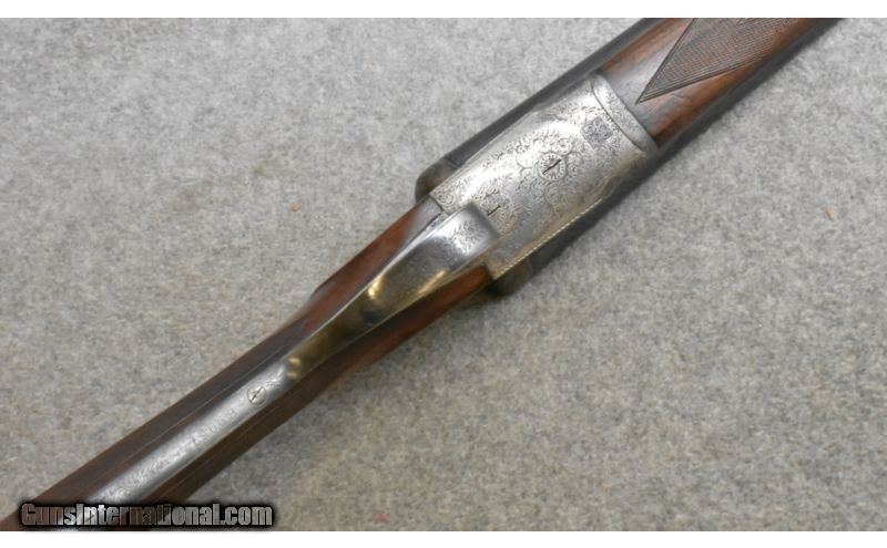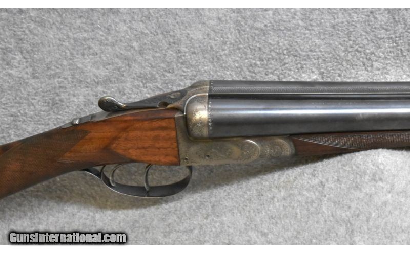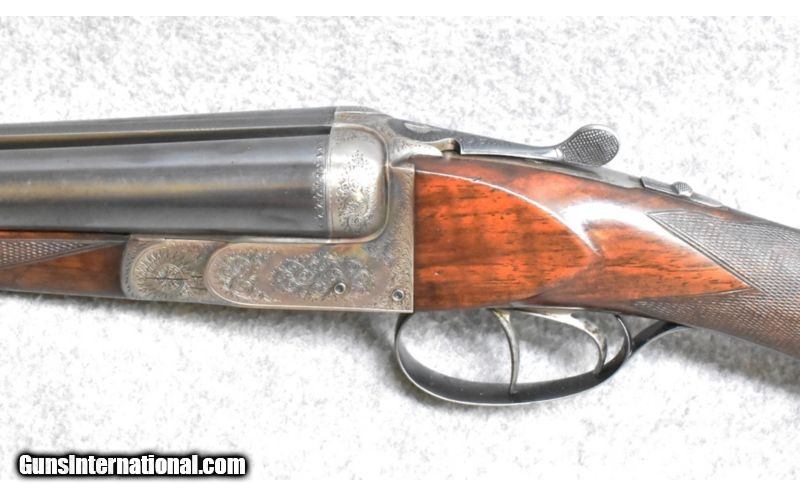 Description: Francotte Boxlock Ejector side by side 12 Gauge shotgun. August Francotte/Brevete a Liege marked barrels. Case colored boxlock action with arabesque scroll, hand checkering European walnut. SOLD Caliber Info: 12 Gauge. Chambers: 2 3/4 inch. Metal Condition: Very good, lightly faded blue with small scratches, spots of freckling and very light pitting. Wood Condition: Good, wood finish shows wear with scratches and marks, stock as small chip behind top tank. Bore Condition: Bright bores. Barrels: 27 1/2 inch Arquebusier fluid steel. Triggers: Double triggers. Stock: Straight grip, hand checkered, European walnut. Stock Dimensions: 14 inch LOP. Fore End: Hand checkered, splinter forearm. Butt Pad: Aftermarket black Old English pad. Weight: 6 lbs. Sights: Ivory front and mid bead. Chokes: Fixed modified and improved cylinder. Item Location: Kansas City, KS |