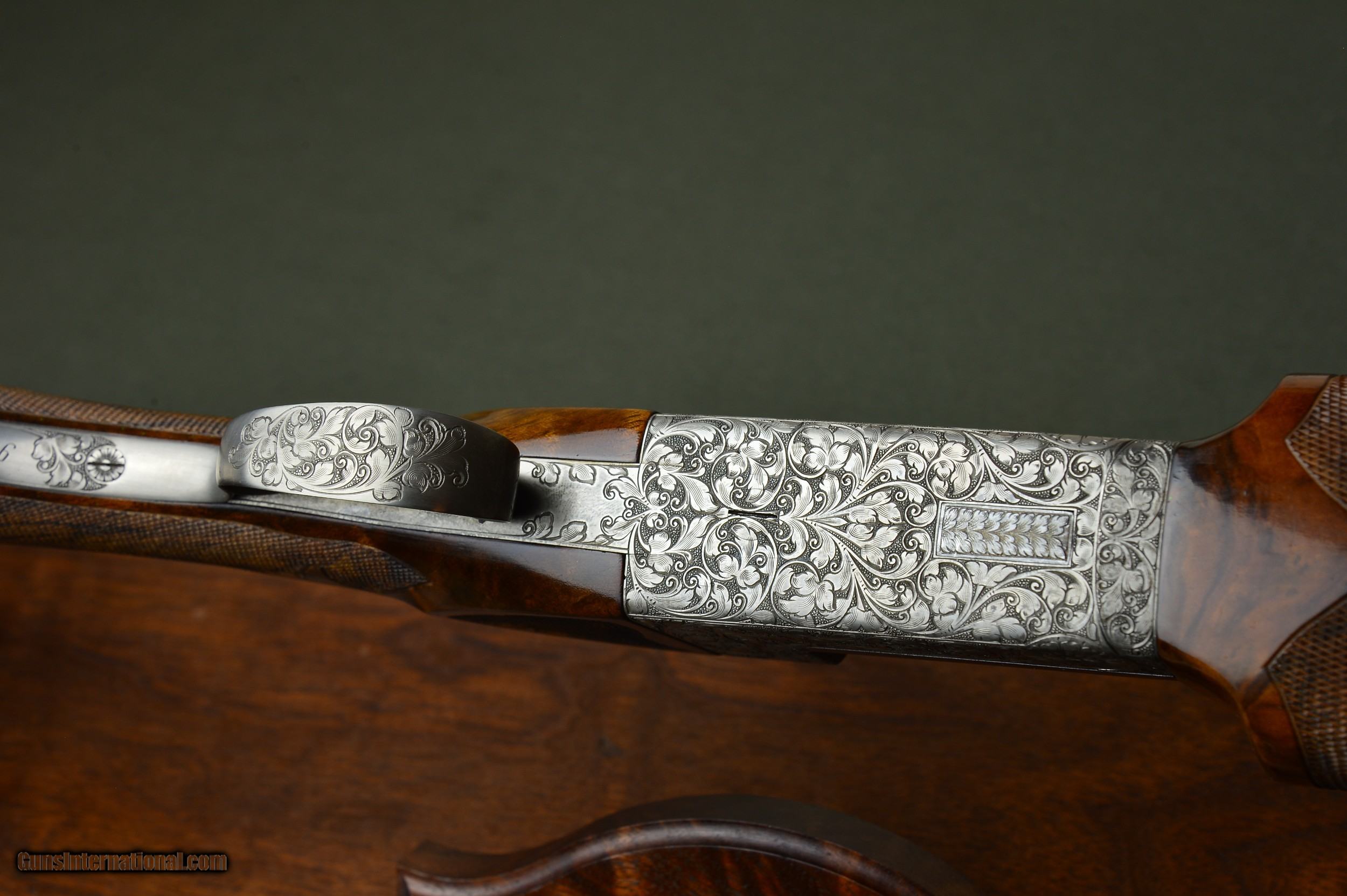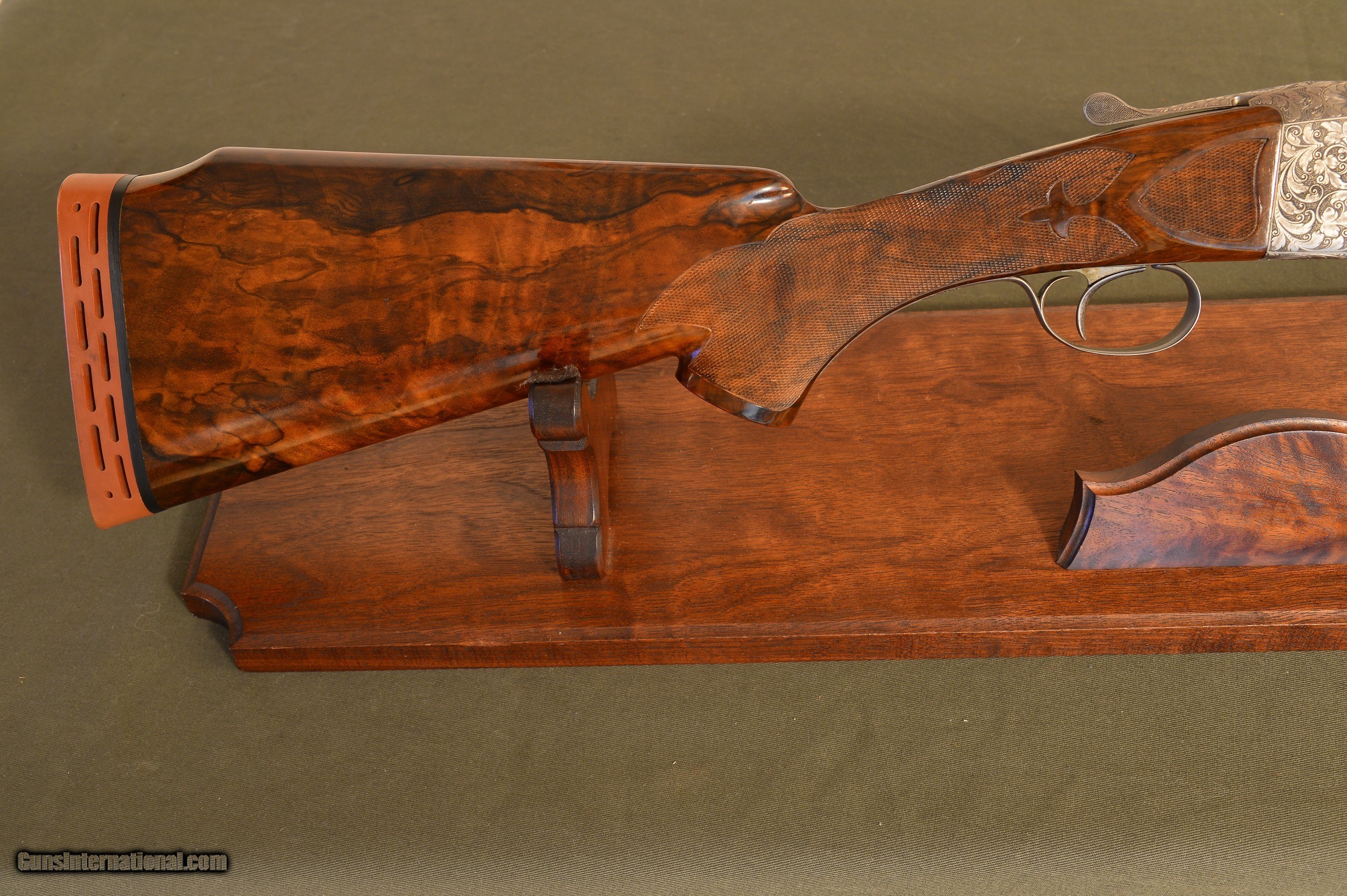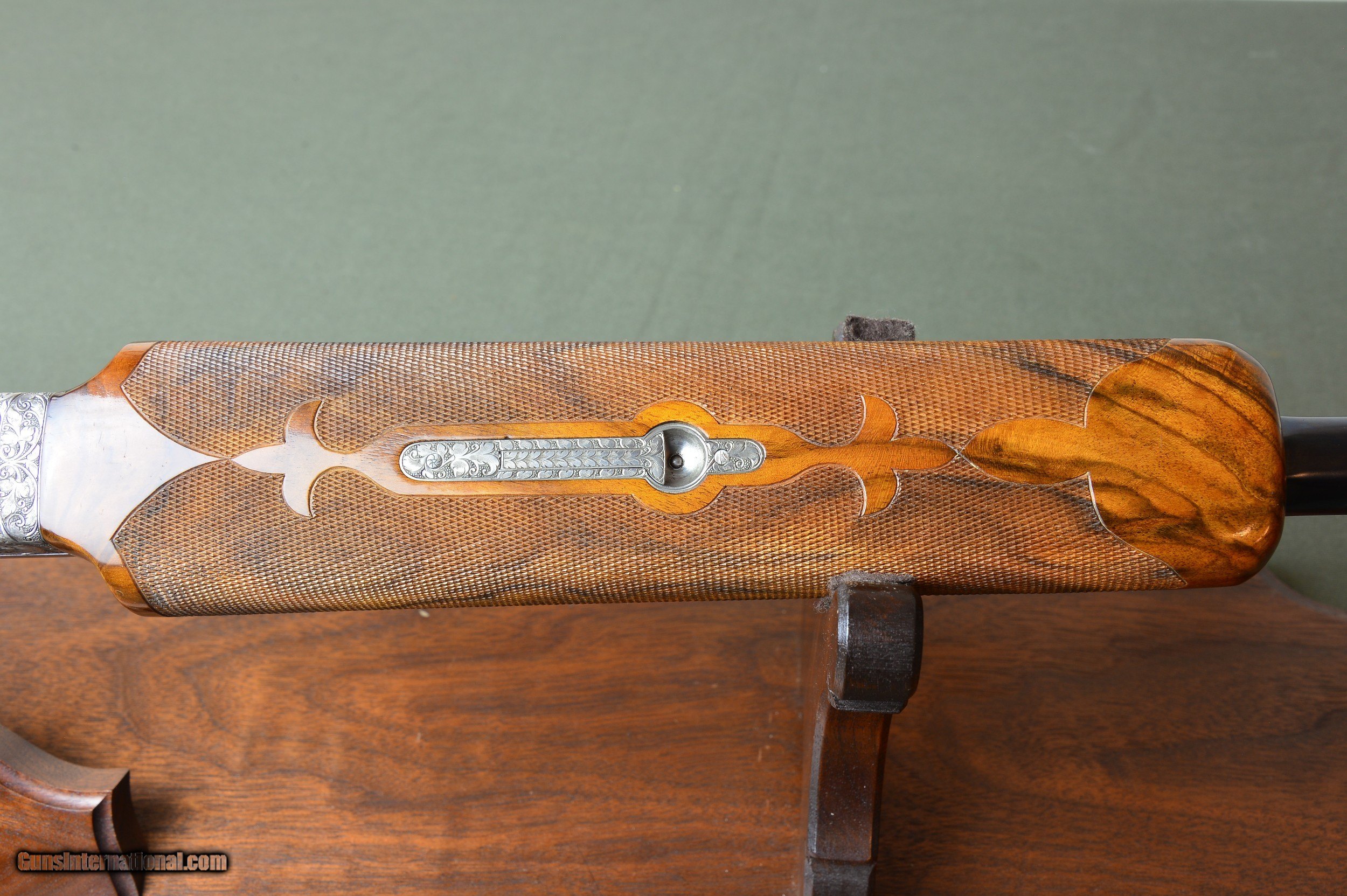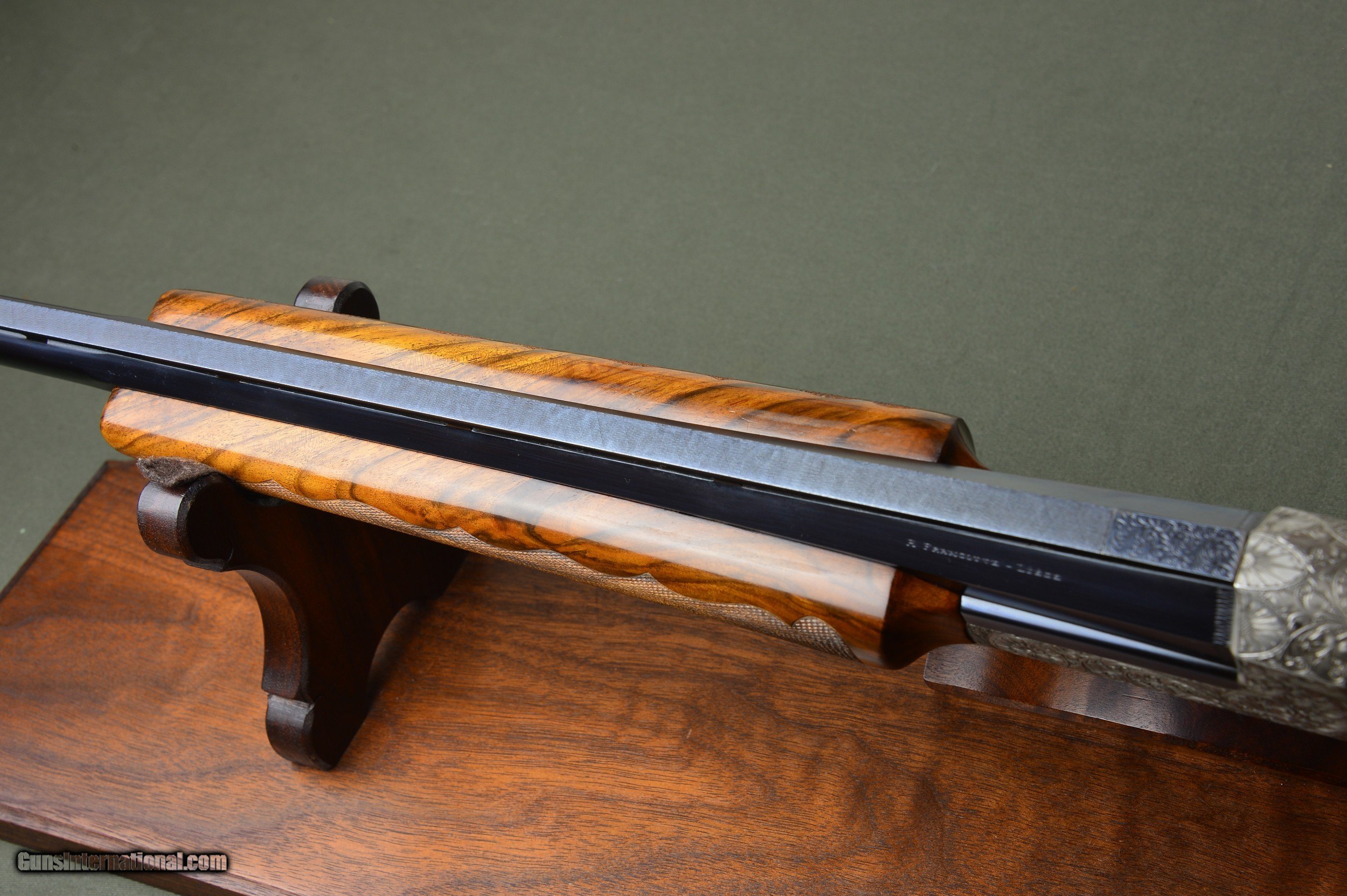 Description: *** SOLD *** Beautiful and sure-poinitng Francotte 12 Gauge Single Barrel Trap gun with 87cm(34-1/4”) barrel, knock-out wood, and Belgian style vine and floral engraving. Auto ejector, no safety, and chambered for 2-3/4” shotshells. Weighs 7lb 13oz. *** The 34-1/4” Siemens Martin Steel barrel is bored 0.734” and has a constriction of 0.036” for Full choke. The bluing is in excellent condition. *** The Monte Carlo stock and wide hand-filling beavertail forearm are made of exhibition grade European walnut. The checkering is crisp and ornate. Stock dimensions are 14-7/8” including a 1” recoil pad by 1-1/2” Drop at Comb by 1-1/2” Drop at Monte Carlo by 2” Drop at Heel. *** The beauty and handling of this Francotte SBT will inspire you. You will be proud to uncase it at the range. I’ve never seen another quite like this one. Don’t let it slip away. *** I am an FFL and will need a signed copy of your dealer’s FFL license. The photographs are part of the description. Not for sale where prohibited by state or local laws. Buyer is responsible for all shipping, insurance, and any other related charges. I give a 3-day non-firing inspection period and will only accept returns at buyer’s expense. SOLD |