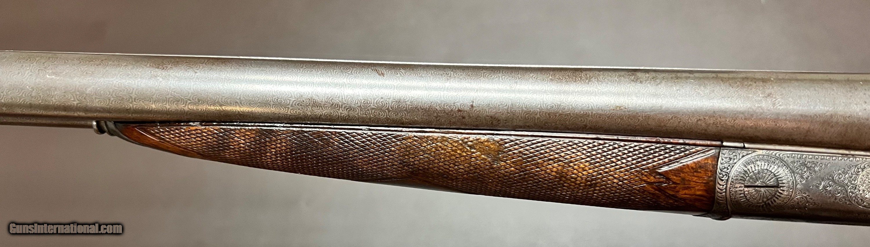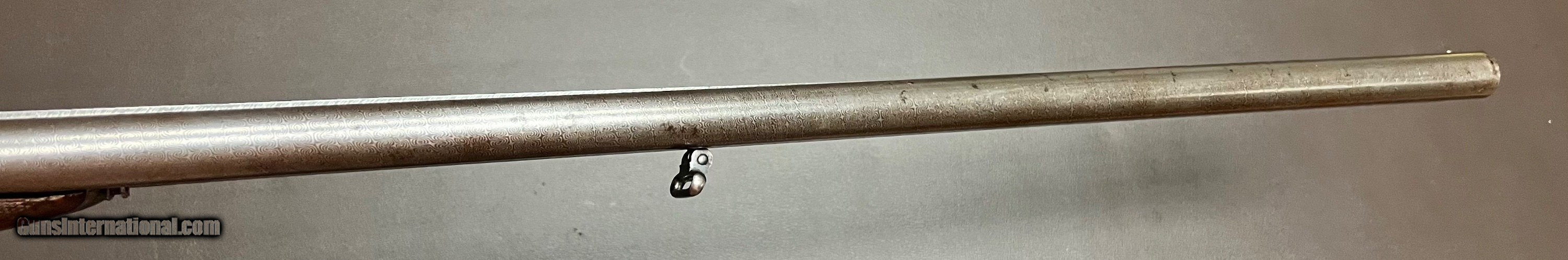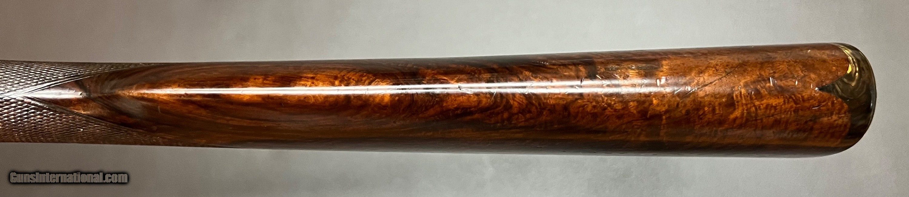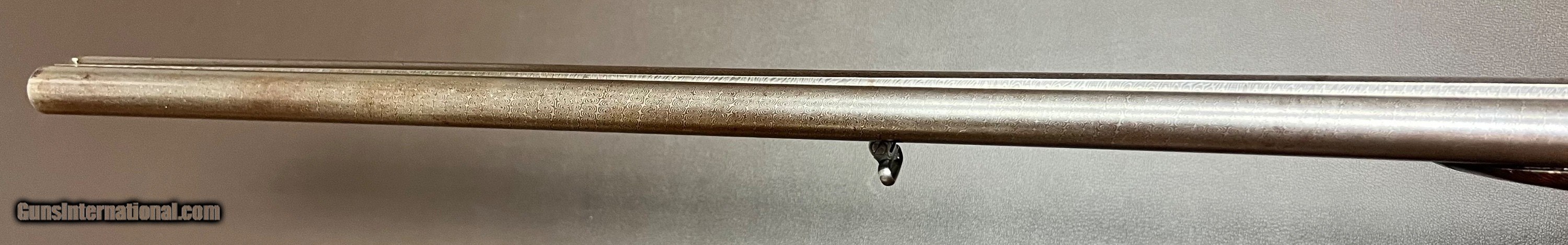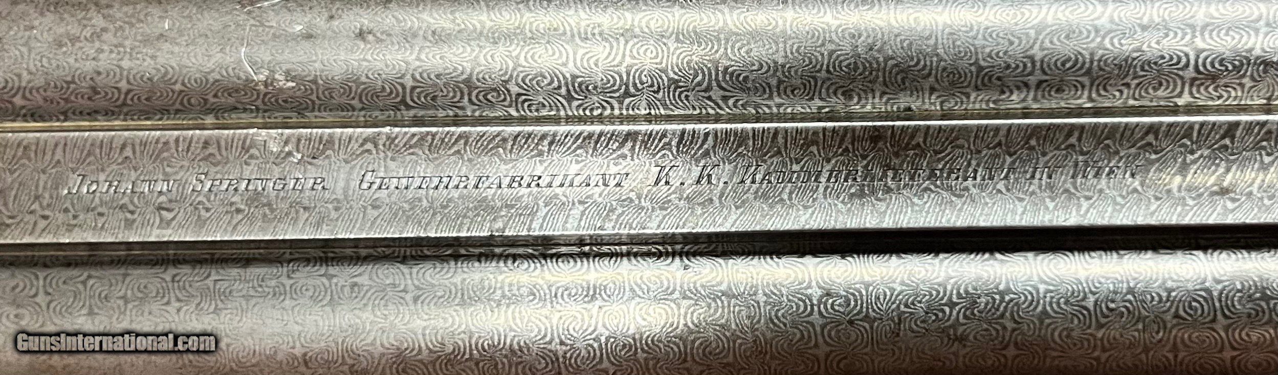 Description: Johann Springer Vienna (Built by August Francotte) best quality 16ga rounded bar action hammergun 29.5" non ejector fine Damascus game rib barrels with single front bead 2 1/2" chambers Chokes: .009/.021 IC/M Bore measurements: .678/.676 Minimum wall thickness R:0.026 L:0.025 Lockup is tight closes like a vault Damascus barrels have excellent bores with no dings or dents. Original sling swivels Highly figured straight grip stock and splinter forend with original flat top checkering, silver initial oval on top of grip. Wood to metal fit is perfect with no cracks anywhere. LOP 14 1/4" over checkered horn butt with engraved screws DAC 1 5/8 DAH 2 1/4 Cast off 1/8" 6lbs 4oz Built in the mid 1890s Crisp well cut full coverage scroll engraved rounded bar crossbolt action with sculpted low hammers that fall out of the line of sight when cocked, every detail is top quality and all screws & pins are in excellent condition. The Auguste Francotte maker mark can be seen on both sides of the barrel flats (AF) towards the rear. Very nice original condition with some handling marks from use, highly figured best quality Damascus barrels would look brilliant with a re brown. This gun is a Antique and can be shipped directly Antique: Yes Shotgun Gauge: 16 Gauge Price: $4,500.00 Buy Now Contact Seller |