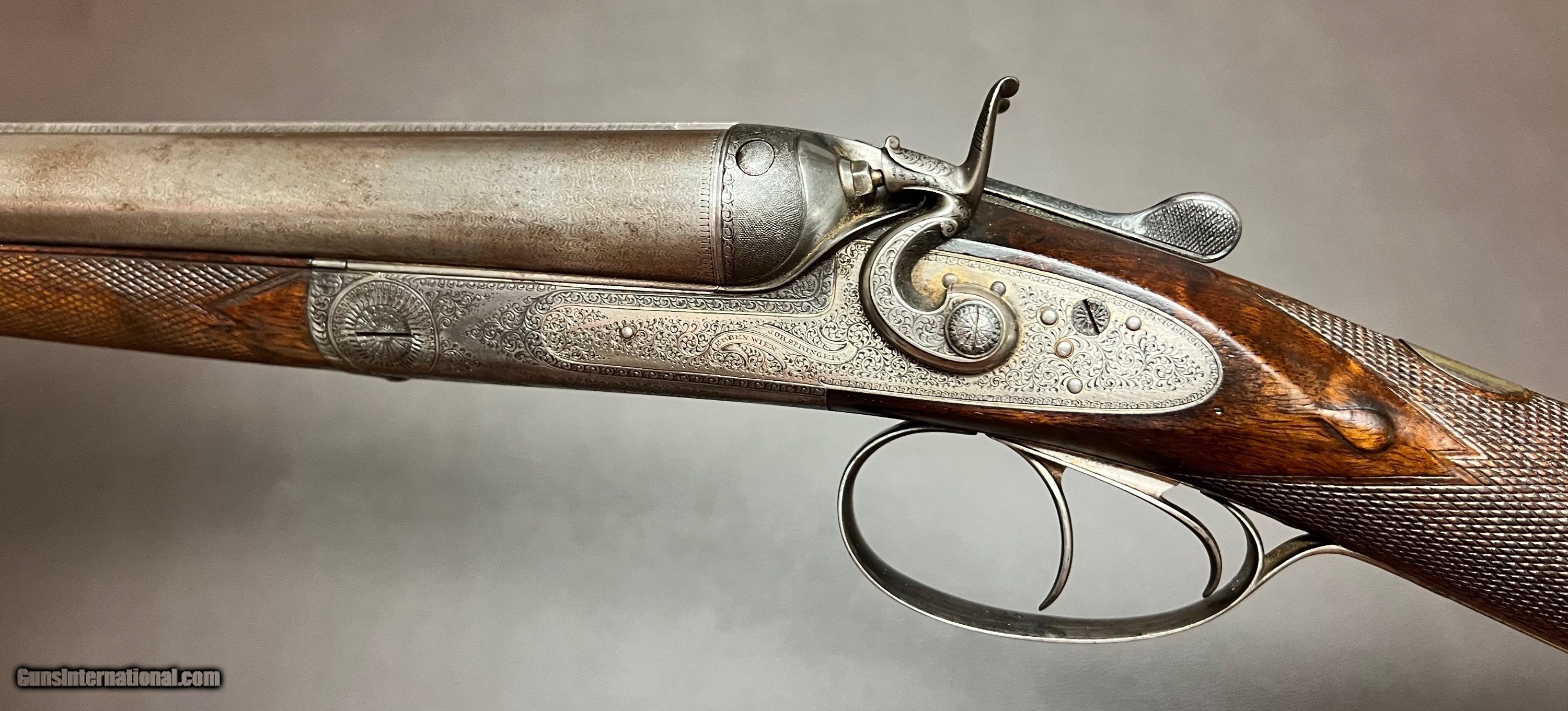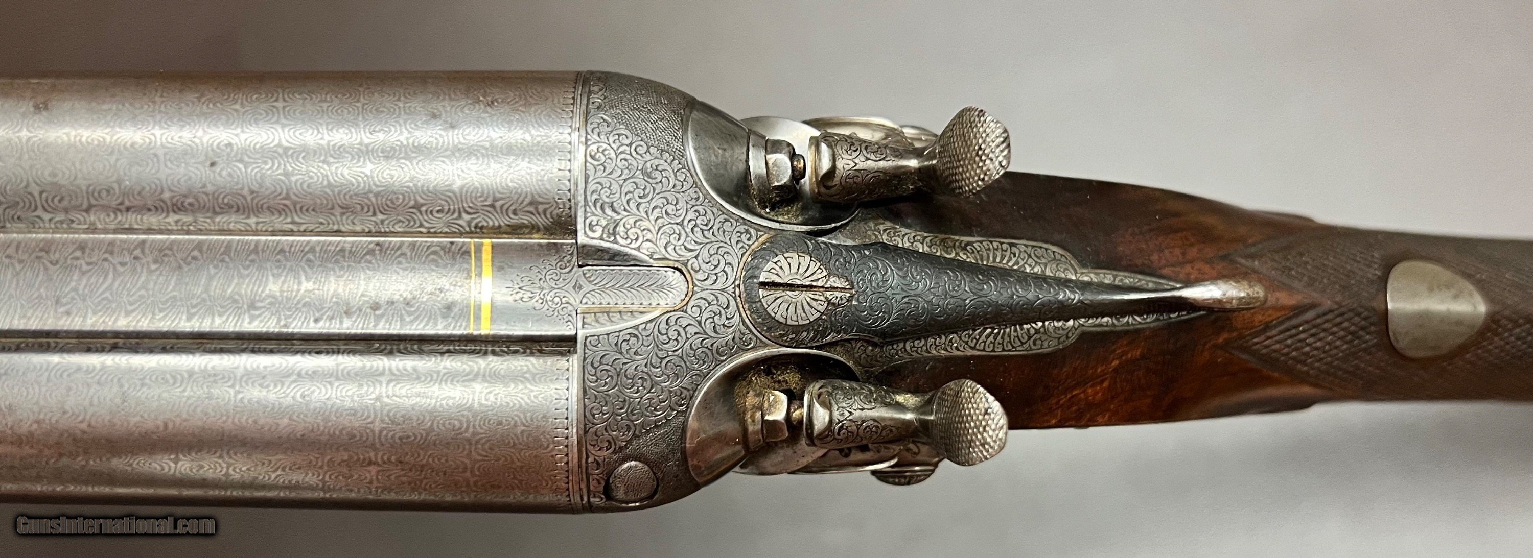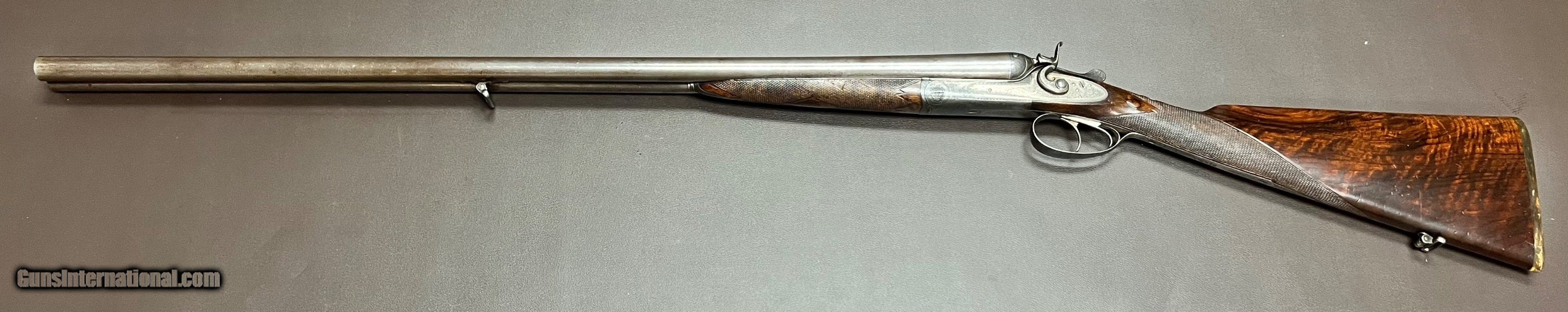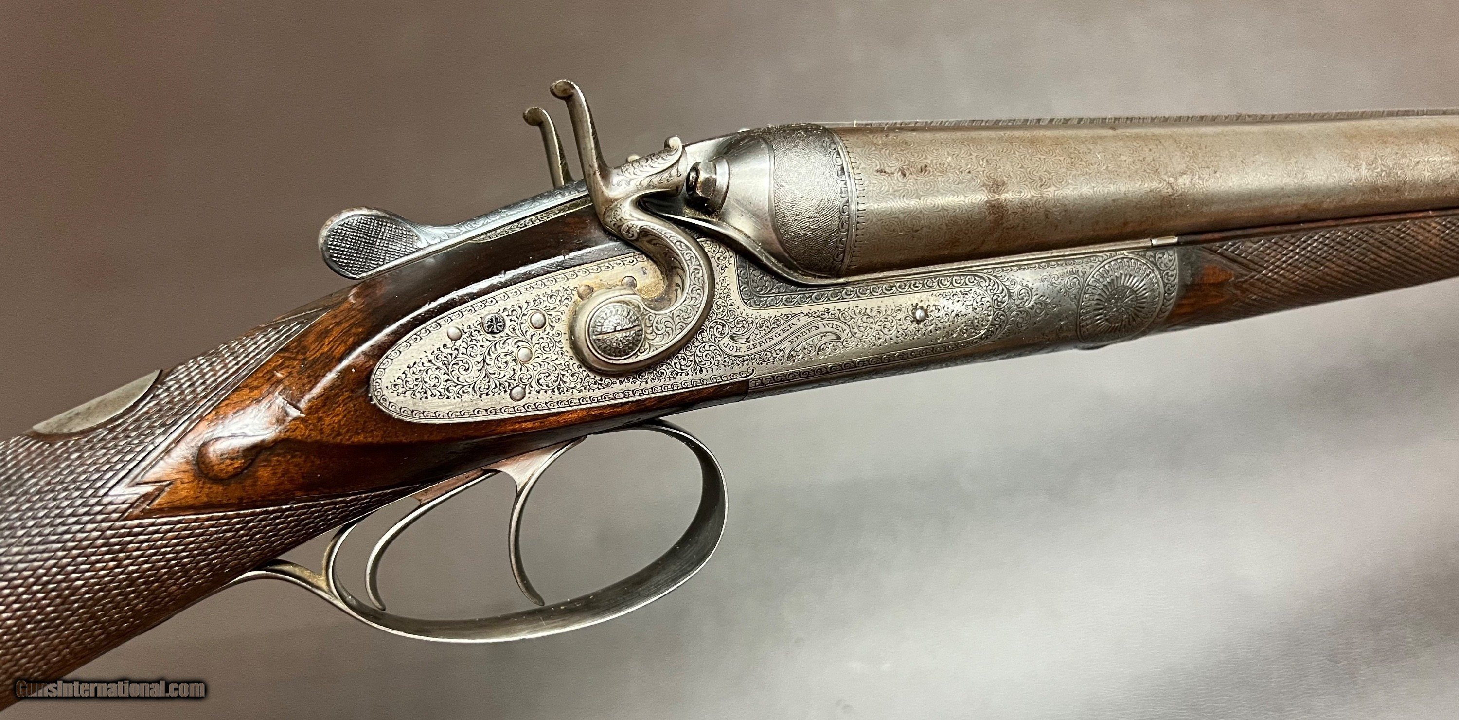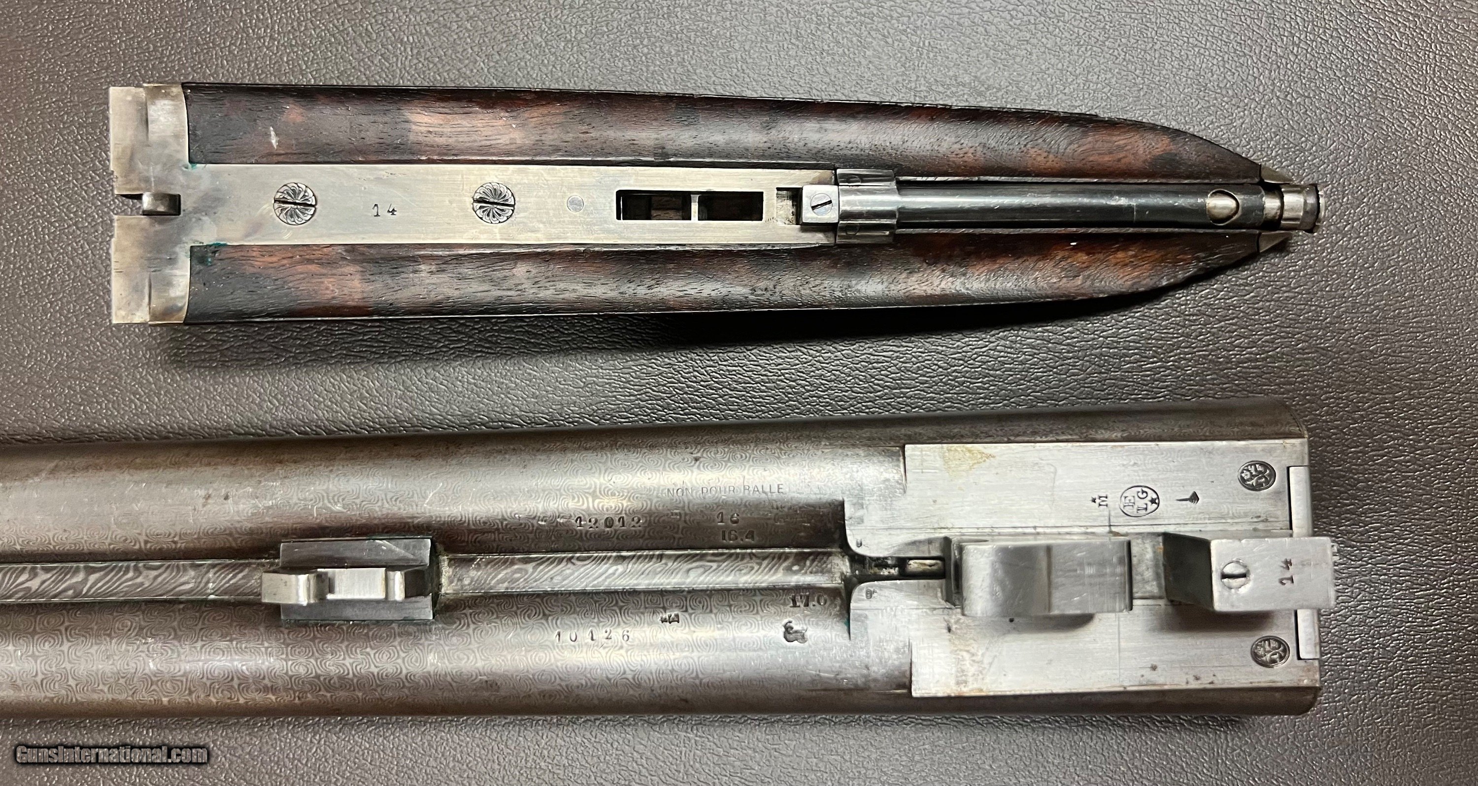 Description: Johann Springer Vienna (Built by August Francotte) best quality 16ga rounded bar action hammergun 29.5" non ejector fine Damascus game rib barrels with single front bead 2 1/2" chambers Chokes: .009/.021 IC/M Bore measurements: .678/.676 Minimum wall thickness R:0.026 L:0.025 Lockup is tight closes like a vault Damascus barrels have excellent bores with no dings or dents. Original sling swivels Highly figured straight grip stock and splinter forend with original flat top checkering, silver initial oval on top of grip. Wood to metal fit is perfect with no cracks anywhere. LOP 14 1/4" over checkered horn butt with engraved screws DAC 1 5/8 DAH 2 1/4 Cast off 1/8" 6lbs 4oz Built in the mid 1890s Crisp well cut full coverage scroll engraved rounded bar crossbolt action with sculpted low hammers that fall out of the line of sight when cocked, every detail is top quality and all screws & pins are in excellent condition. The Auguste Francotte maker mark can be seen on both sides of the barrel flats (AF) towards the rear. Very nice original condition with some handling marks from use, highly figured best quality Damascus barrels would look brilliant with a re brown. This gun is a Antique and can be shipped directly Antique: Yes Shotgun Gauge: 16 Gauge Price: $4,500.00 Buy Now Contact Seller |