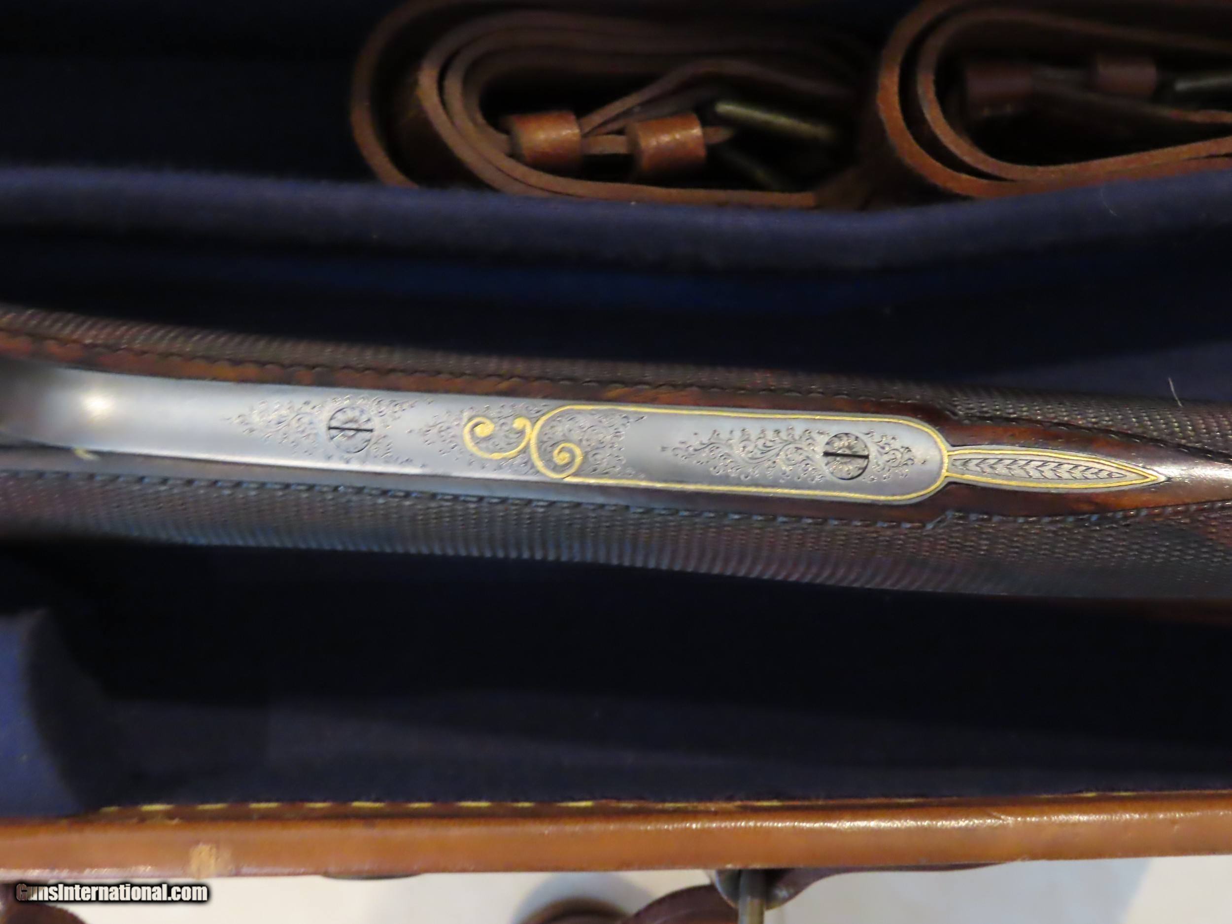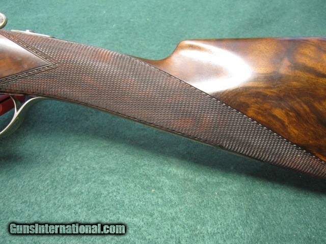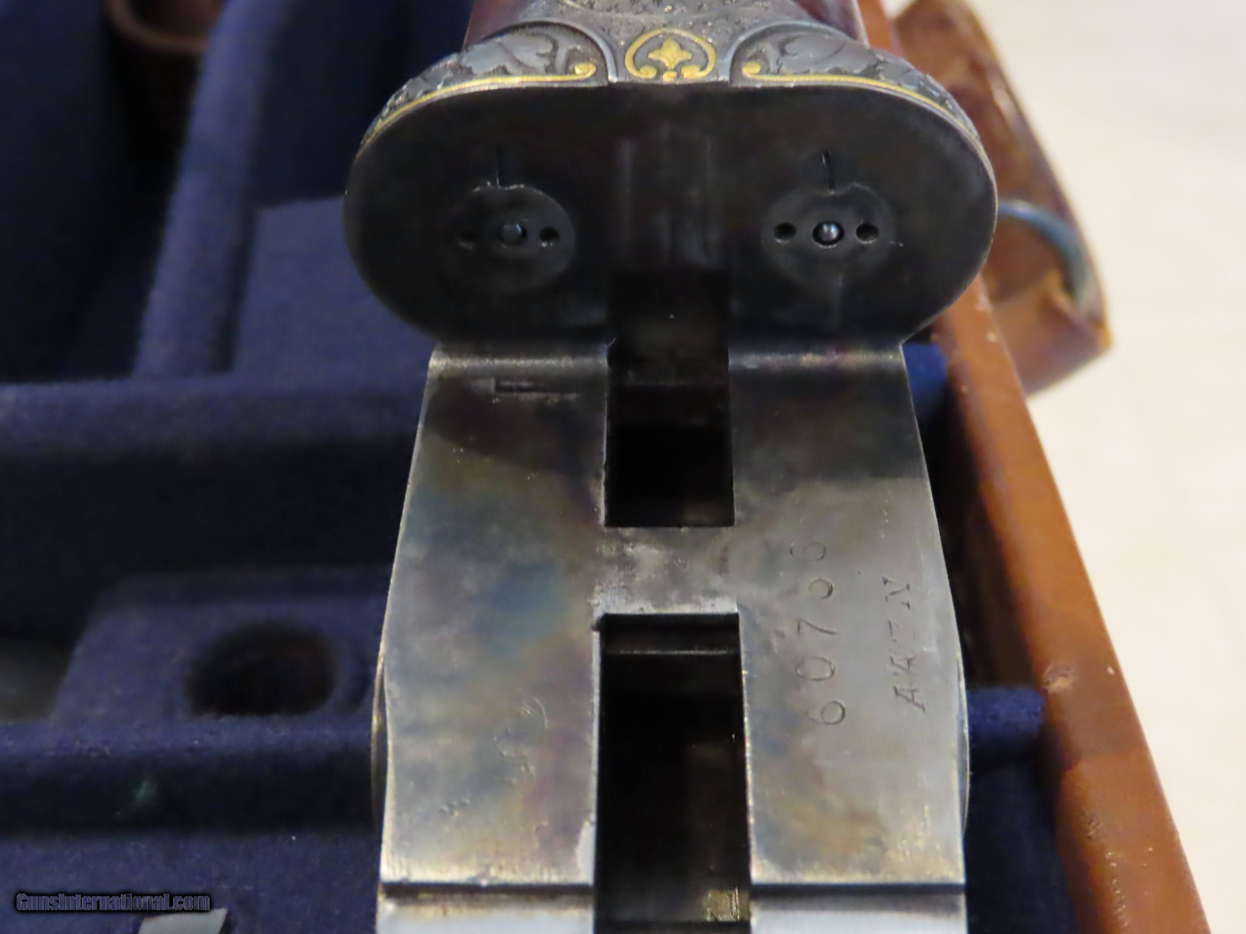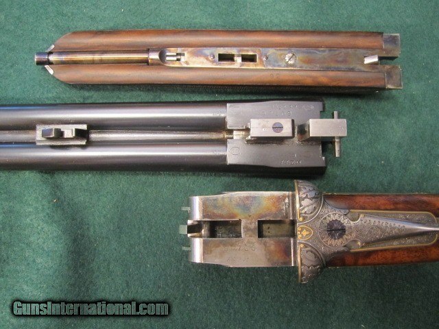 Description: "Armes Artisinales de Grand Luxe, Liege" is the name on the barrels. Rocco Capece, renowned master engraver, is the signature on the trigger guard. The gun is a work of art! It is a light weight (6 pounds exactly) 20 gauge side by side, seven pin sidelock ejector of the highest quality. I understand that Rocco Capece organized the custom production of just a few of these guns using the very best craftsmen of Liege (some from Francotte I understand) to build the guns for him to engrave and sell under this name. I have no clue how many of these guns were built and I am the second owner of this one. When I acquired it I I had the barrel blue properly (cold rust blue) refreshed by Kirk Merrimgton who sent it to Briley for a set of five long thin wall choke tubes. I then sent it with a fine vintage English leather gun case to Michael Messina for a custom fitting and custom accessories by Michael Marsh of England (ebony handle turn screws, cleaning rod, snap caps, etc). To display it I had a custom table height Chippendale stand made to fit the case. All of these go with the sale of the gun. The gun has 28 inch (70 cm) chopper lump barrels with Briey cokes, single trigger, ejectors, bushed firing pins, straight English stock with splinter fore end. Full coverage bank note or Bulino style game scenes and dog engraving with gold inlays, oak leaf carved fences, beautiful 4X Turkish walnut with exquisite checkering and borders and checkered butt must be seen to be appreciated. The stock is 14-1/2 inches from the single trigger to the center of the butt. I have never seen a more beautiful gun and I have owned a few! And it shoots as well as it looks and I have hunted with it but never abused it. Its condition remains excellent and shows almost like new. Check the pictures closely and I will gladly answer any questions by email or by cell phone at 410-924-8484. My asking price is far under replacement cost, if it could be replaced at all, and reasonable offers will be considered. And I would welcome any information you might have and want to share about these fine and rare best guns. Watch my listings for more fine double guns as I sell off my long time collection. SOLD Shotgun Gauge: 20 Gauge Manufacturer: Armes Artisinales Custom Model: Grand Luxe SLE Chambers: 3 inch Ejectors: Auto Condition: Excellent Metal Condition: Excellent Wood Condition: Excellent Bore Condition: Excellent Barrels: Chopper lump Barrel Type: Side by Side Action: Sidelock Ejector Triggers: Single Stock: English style 4X Turkish Walnut Fore End: splinter Butt Pad: Checkered Butt LOP: 14-1/2 Rib: Flat cross filed game rib Weight: 6 pounds Manufacture Date: Circa 1985 Chokes: Briley - 5 long thin wall set Choke Left: Tubes Choke Right: Tubes Engraving: Rocco Capece Finest Bulino Game Scenes w/ Gold Extras: Case accessories ebony & silver snap caps, cleaning rod, and two turn screws custom made by Michael Marsh. Plus cleaning accessories in leather Pouch, Choke set and display stand. Case: Vintage and fine English leather, custom French fit by Michael Messina. Item Location: FL |