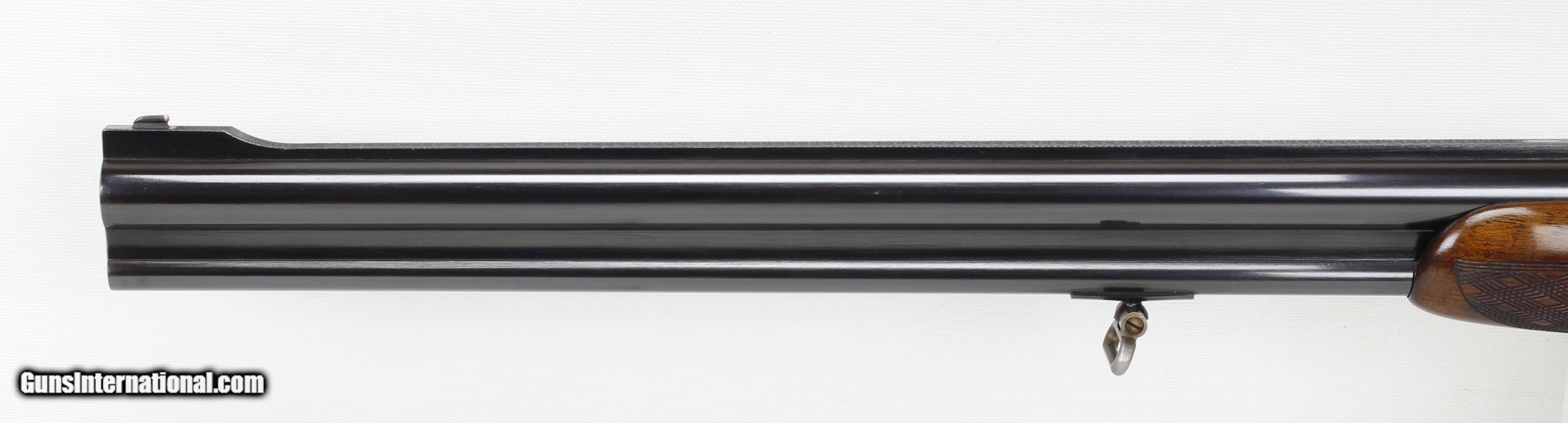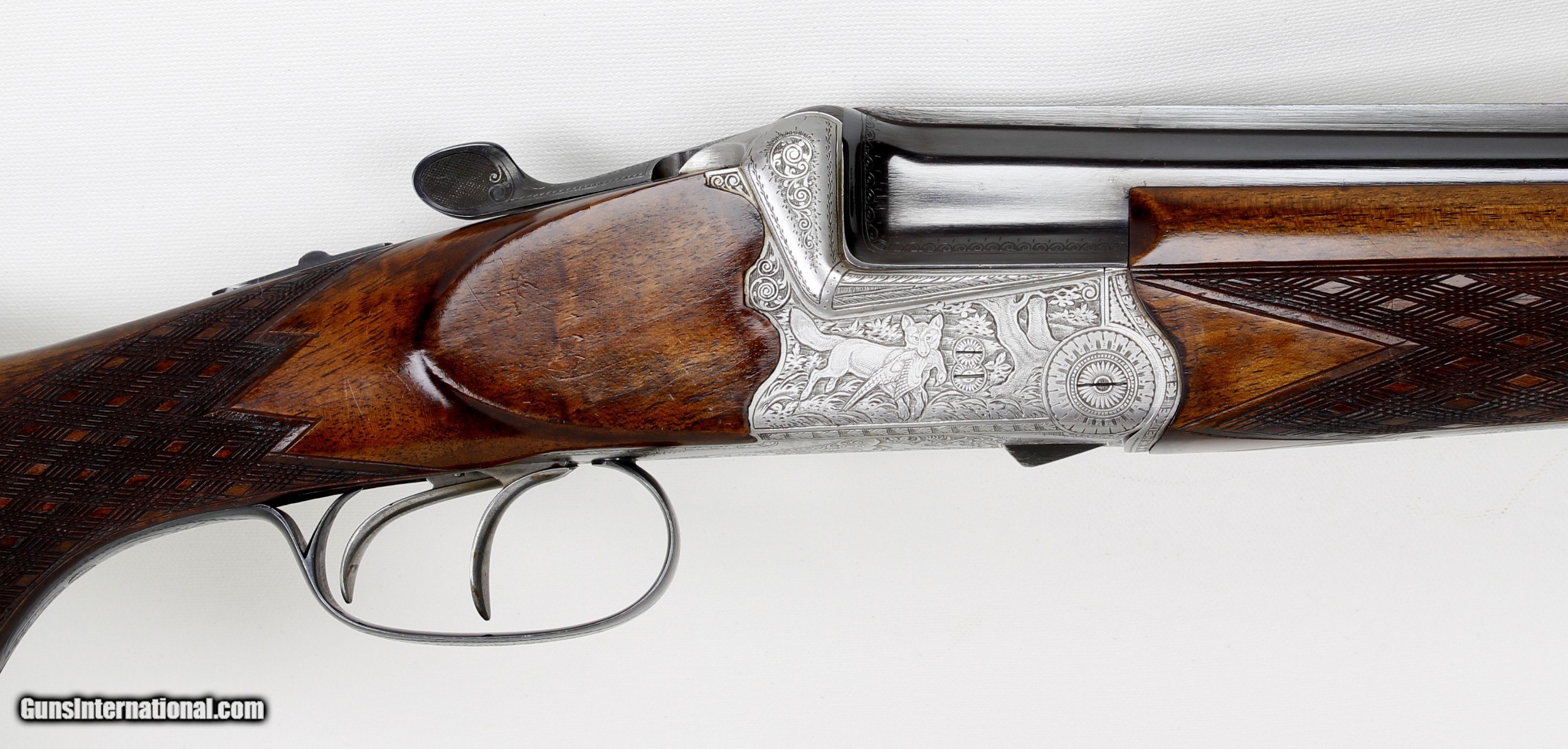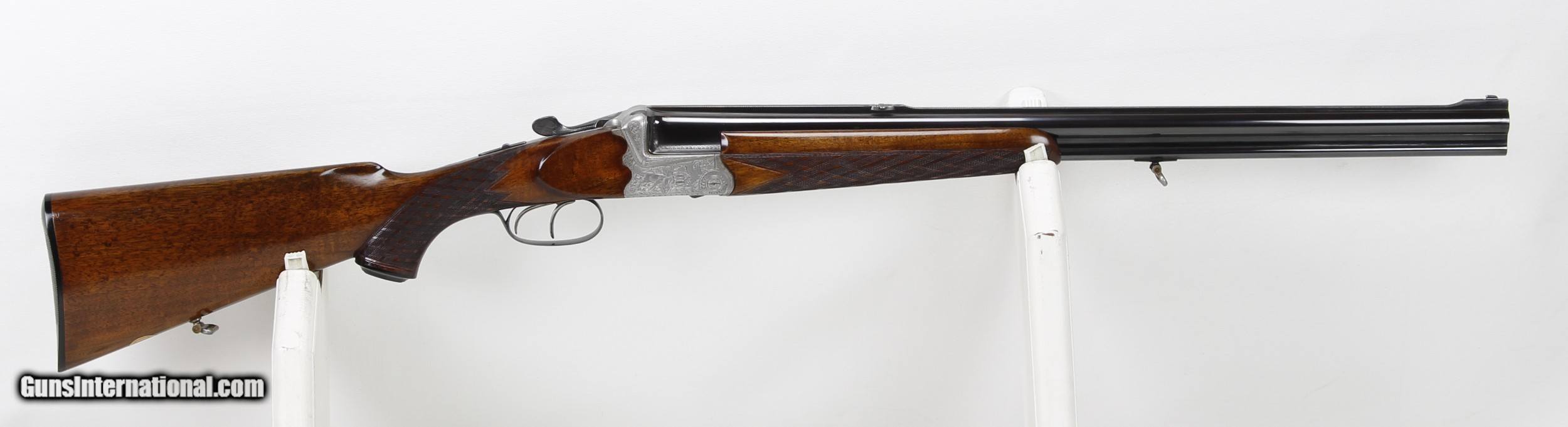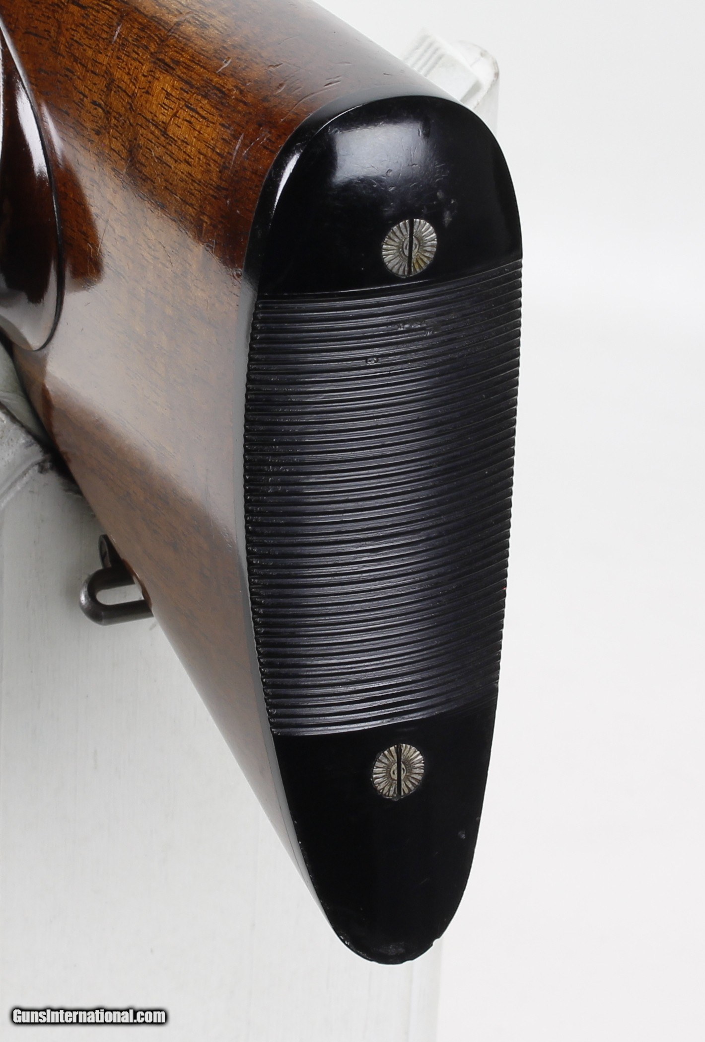 Description: Franz Sodia 16Ga./.222 Rem. O/U Engraved Combo Gun.SN #7357. Mfg. in Ferlach, Austria in 1957. LOP 14". Chamber 2 3/4". DAC 1 1/2"- DAH 2 1/4". Buhler-Stahl 24 3/8" barrels with excellent, mirror bright bores on both the rifle and shotgun barrels. Light Modified choke on the 16Ga. barrel.The blued metal finish on the barrel is in very good condition. The receiver is highly engraved with Wildlife scenes. Walnut checkered stock and forend are in fine condition. Double triggers. Flip up rear rifle sight. Plastic buttplate. Sling swivels. A rare find in great condition. Weight 6.6 Lbs. More pictures available upon request. Ships lower 48, W/ Insurance $65.00. SOLD Manufacturer: Franz Sodia Model: Combination Gun Serial Number: 7357 Barrel Length: 24 3/8 Caliber Info: .222 Rem. Chambers: 2 3/4 Condition: VG Metal Condition: VG Wood Condition: VG Bore Condition: Excellent Triggers: Double Gauge Info: 16 LOP: 14 Finish: Blue Weight: 6.6 Lbs Manufacture Date: 1957 Engraving: Wildlife Scenes |