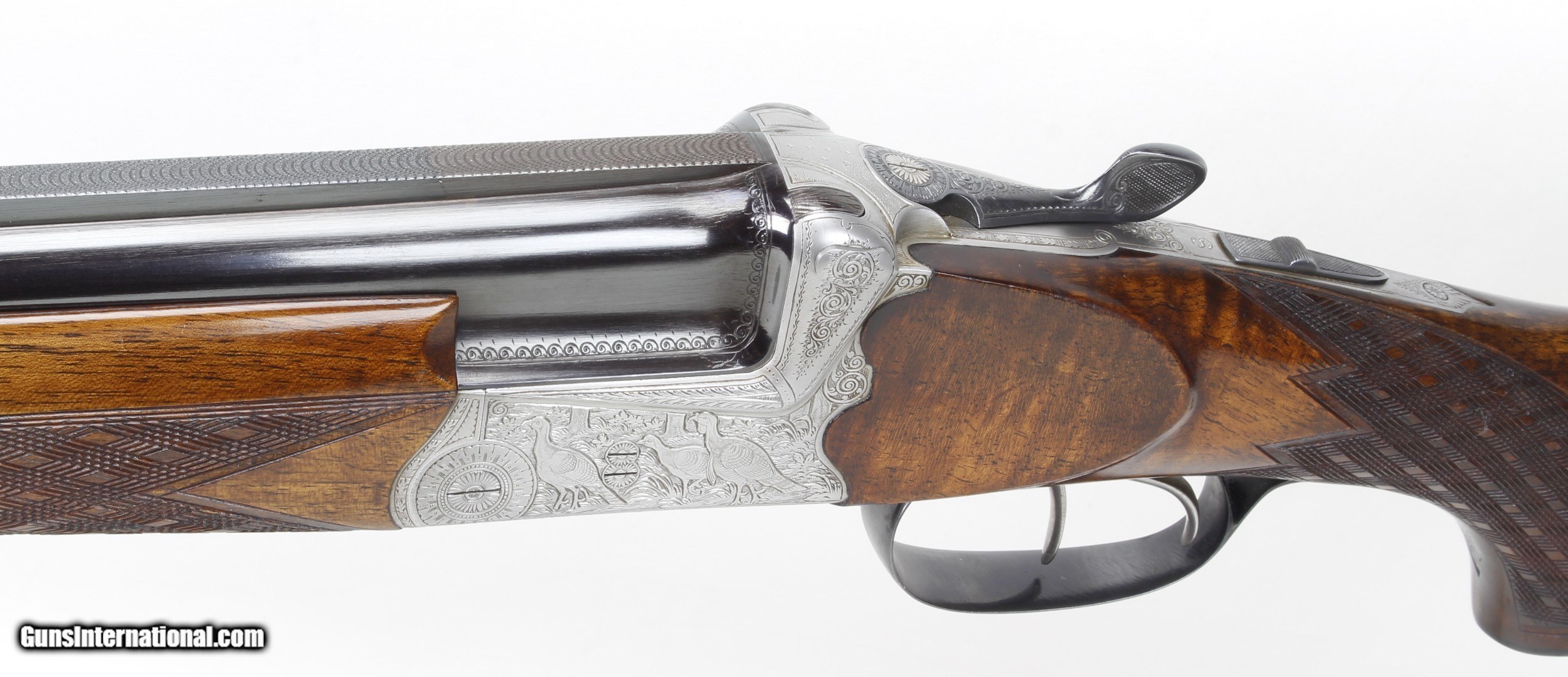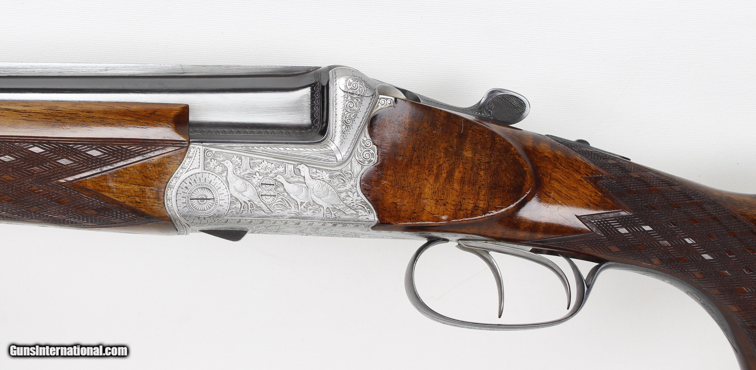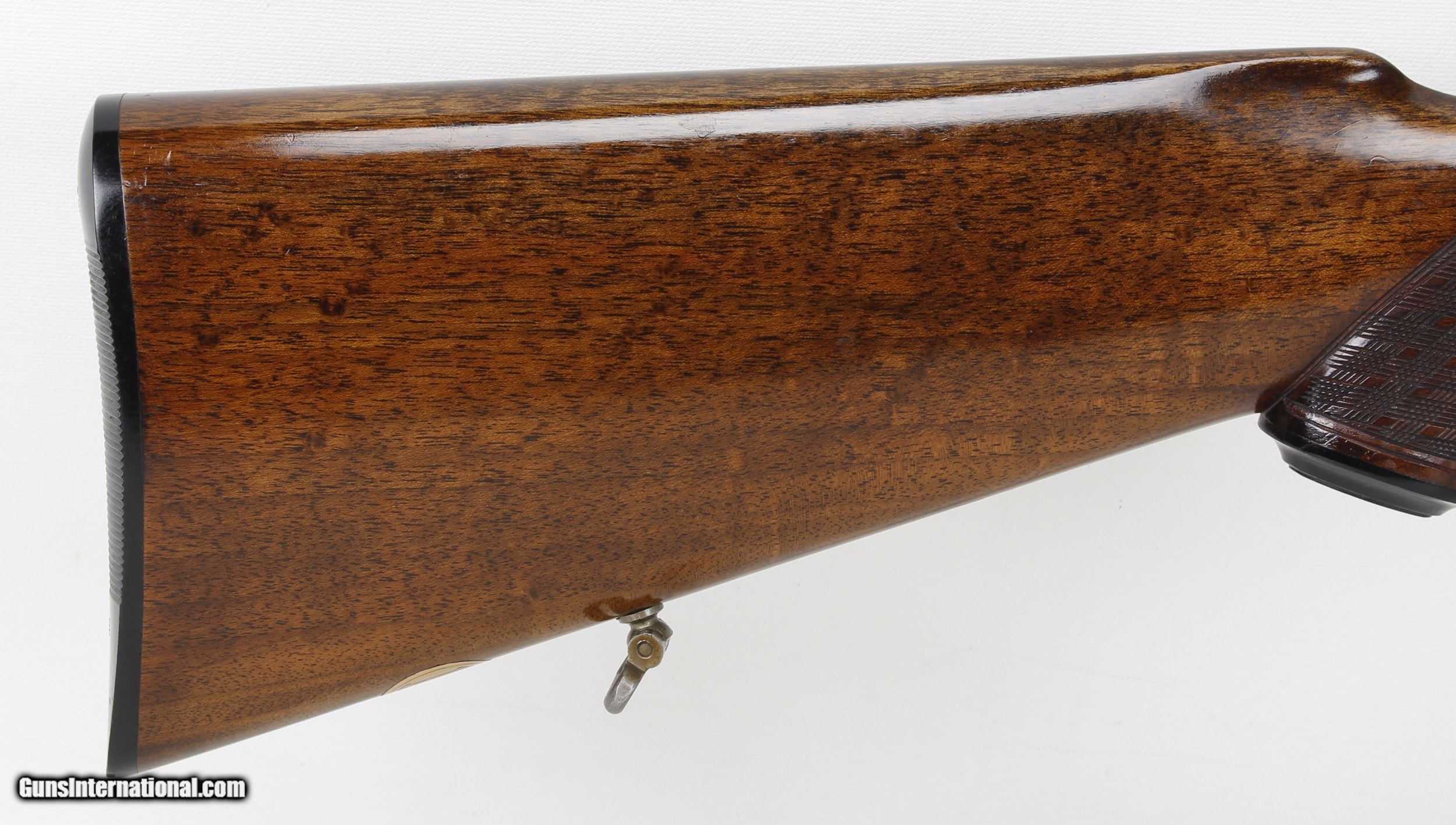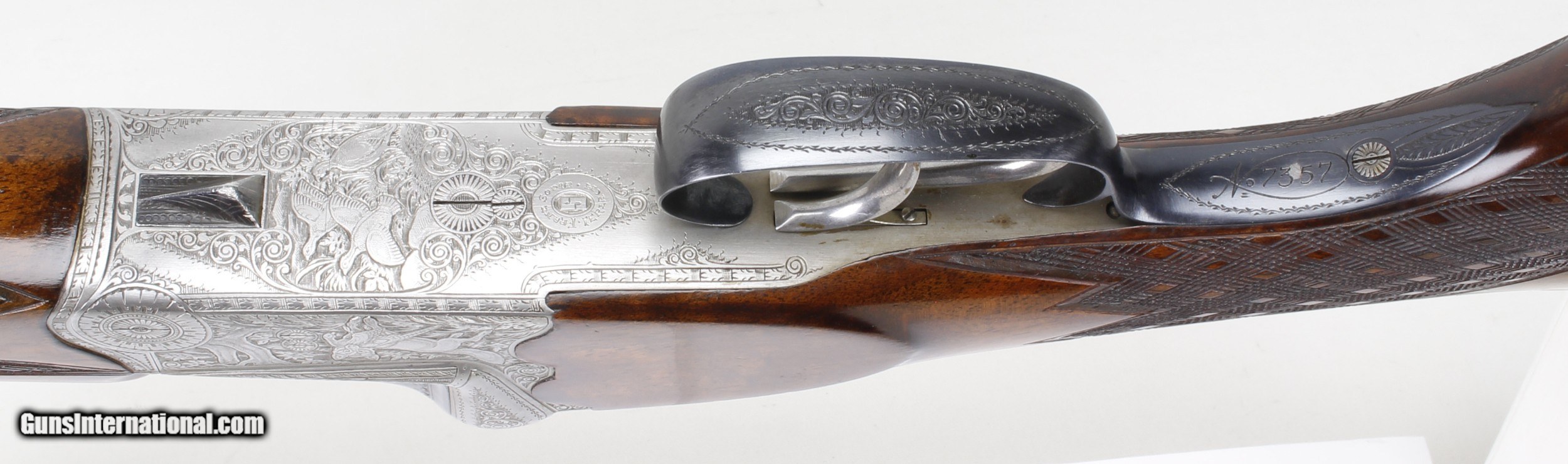 Description: Franz Sodia 16Ga./.222 Rem. O/U Engraved Combo Gun.SN #7357. Mfg. in Ferlach, Austria in 1957. LOP 14". Chamber 2 3/4". DAC 1 1/2"- DAH 2 1/4". Buhler-Stahl 24 3/8" barrels with excellent, mirror bright bores on both the rifle and shotgun barrels. Light Modified choke on the 16Ga. barrel.The blued metal finish on the barrel is in very good condition. The receiver is highly engraved with Wildlife scenes. Walnut checkered stock and forend are in fine condition. Double triggers. Flip up rear rifle sight. Plastic buttplate. Sling swivels. A rare find in great condition. Weight 6.6 Lbs. More pictures available upon request. Ships lower 48, W/ Insurance $65.00. SOLD Manufacturer: Franz Sodia Model: Combination Gun Serial Number: 7357 Barrel Length: 24 3/8 Caliber Info: .222 Rem. Chambers: 2 3/4 Condition: VG Metal Condition: VG Wood Condition: VG Bore Condition: Excellent Triggers: Double Gauge Info: 16 LOP: 14 Finish: Blue Weight: 6.6 Lbs Manufacture Date: 1957 Engraving: Wildlife Scenes |