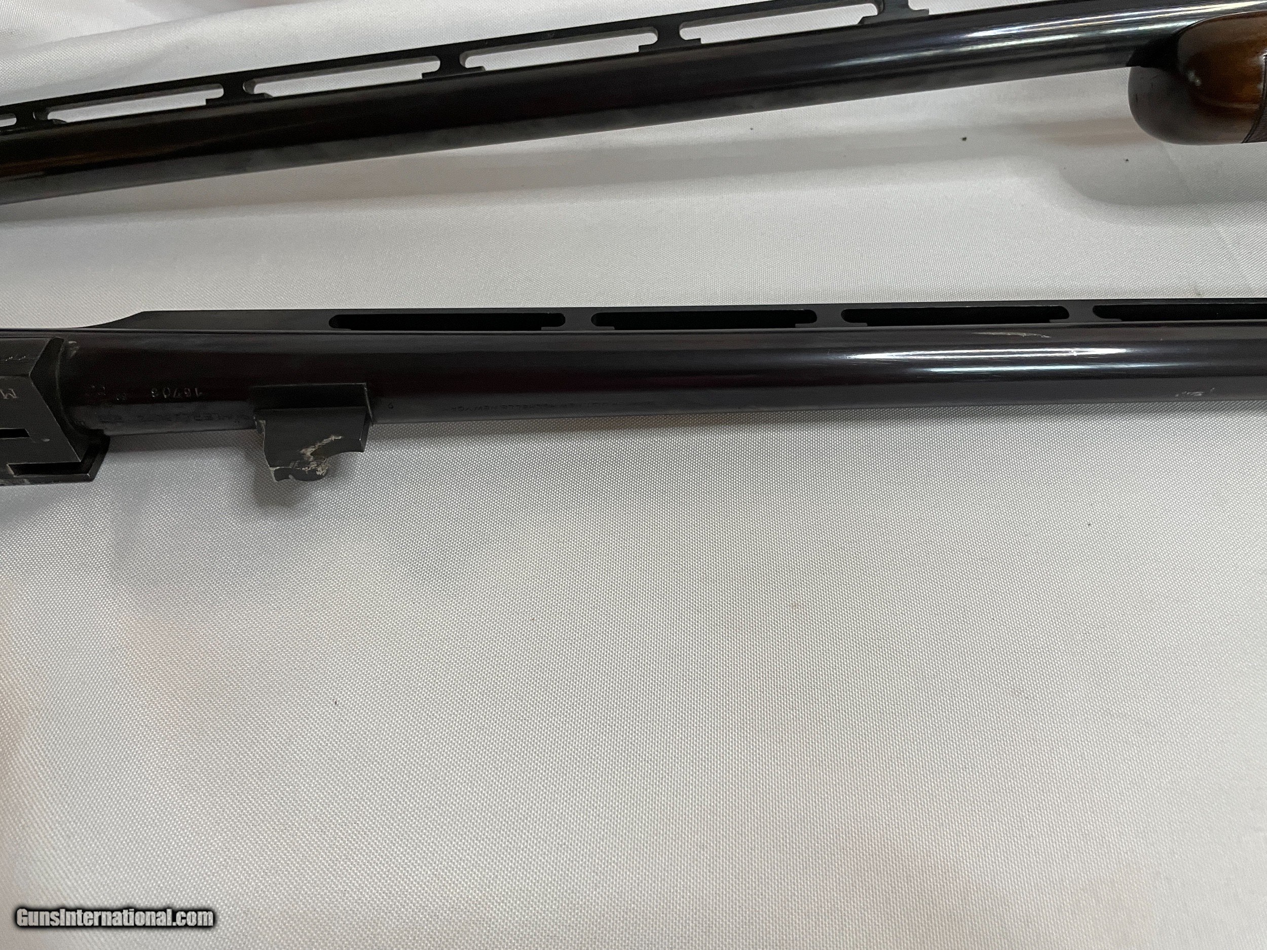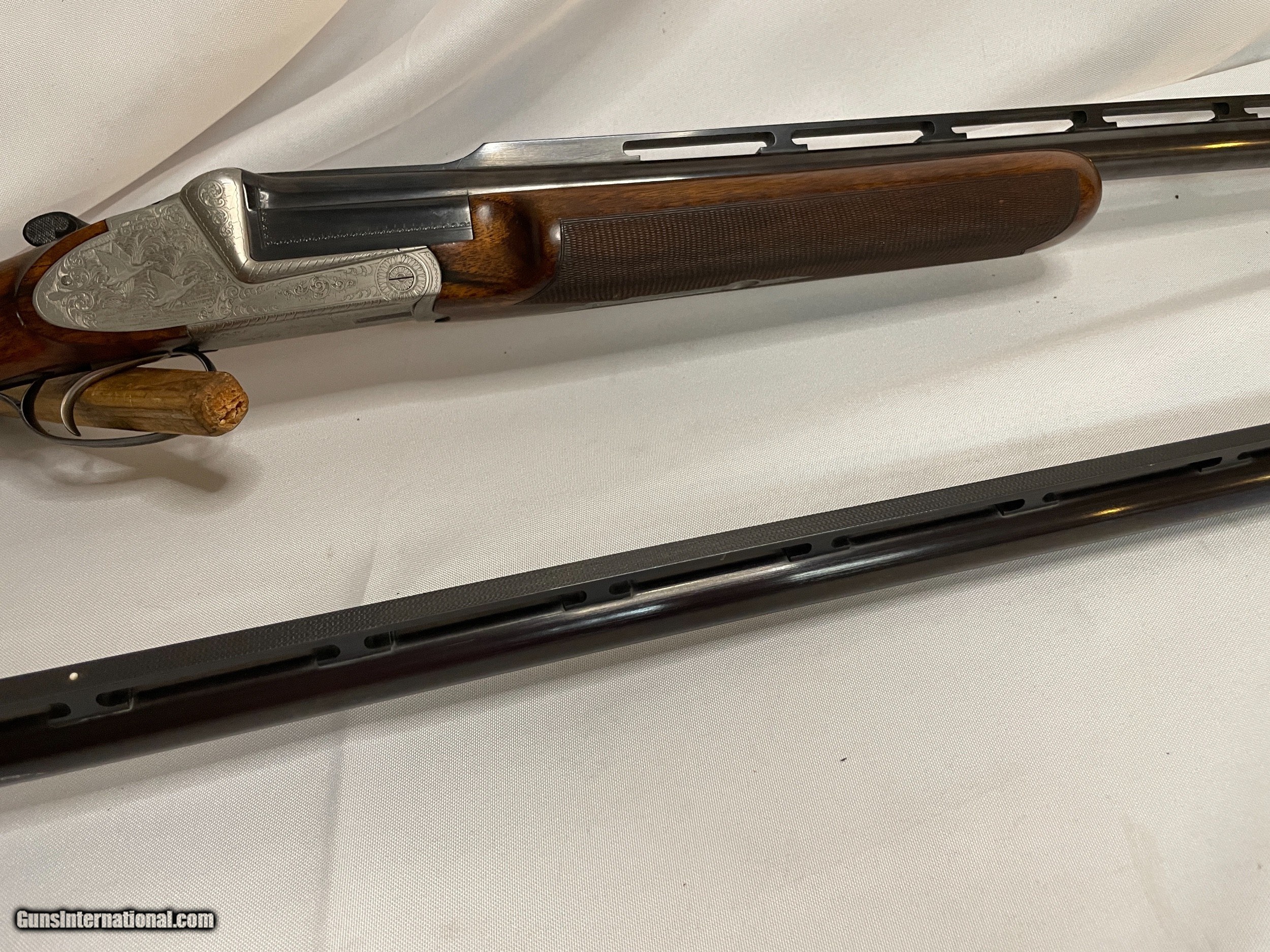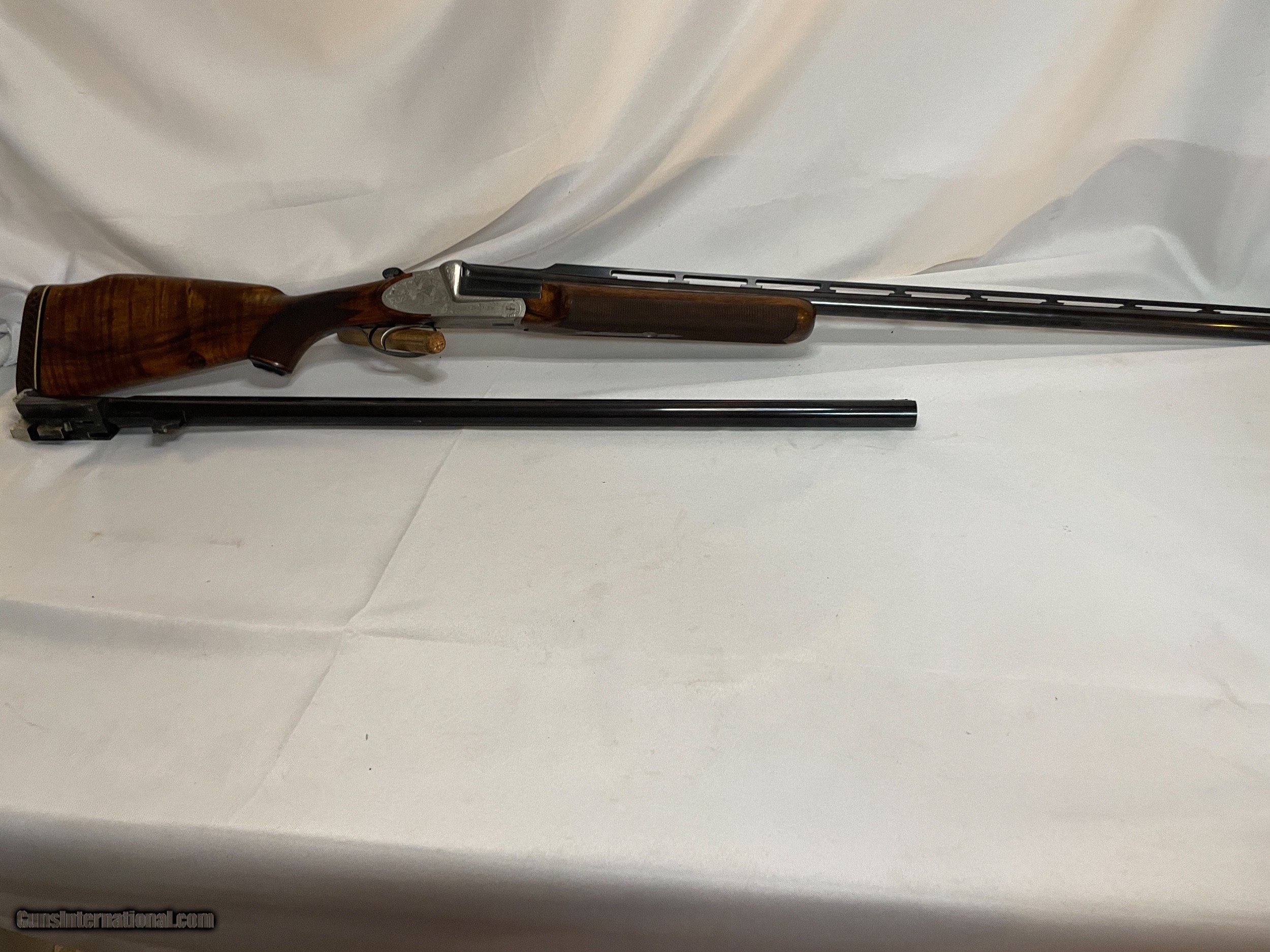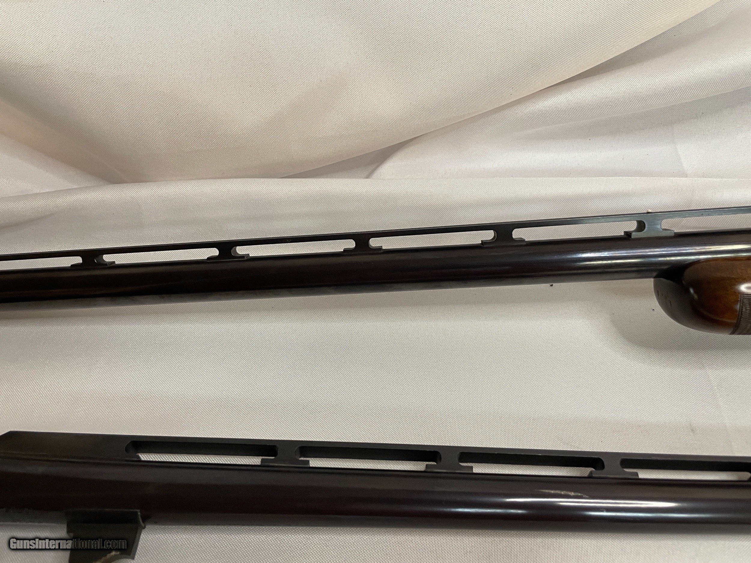 Description: Franz Sodia Ferlach 2 Barrel Cased Trap Set 12 Gauge 2 3/4” Single Trigger Side Plate Box Lock With Game Scene Engraving ( Pheasants and Waterfowl) Deluxe Hand Checkered Walnut Beavertail Forend No Safety 14 1/8” Length of Pull 1 5/8” Monte Carlo Drop Both Barrels are 32” Vent Rib Choked .039 Extra Full Choked .028 Improved / Modified Superb Condition Throughout SOLD Curio/Relic: Yes |