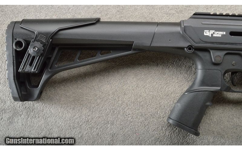 Description: This shotgun is new. GFORCE Arms CTI 12 AR, This incredible G-Force CTI 12 AR shotgun delivers robust reliability and is ideal for home defense, competitive shooting, or hunting. This CTI 12 AR is chambered in hard-hitting 12 gauge and will accept 2 ¾" and 3" shells. The 18.5" barrel on this model is topped with factory folding sights and is incredibly easy to get on target. Other great features of this shotgun include a robust impact-resistant synthetic stock, pistol grip, recoil pad, and a generous 5-round capacity. Stock photos. 12 Gauge SOLD Chambers: 2 ¾ and 3" Semi-auto 5 round. Metal Condition: New in the box. Wood Condition: The stock is new in the box. Bore Condition: New in the box. Barrels: 18.5" with a shroud. Triggers: Single blue. Stock Dimensions: 14 ½" LOP and an adjustable comb. Fore End: Aluminum handguard with a quad rail. Butt Pad: Black synthetic with an adjustable comb and black rubber butt pad. Weight: 7 Lbs. 12 Oz. Sights: Flip up adjustable front and rear sights. Chokes: "Screw in, comes with a MOD. Item Location: Owatonna, MN |