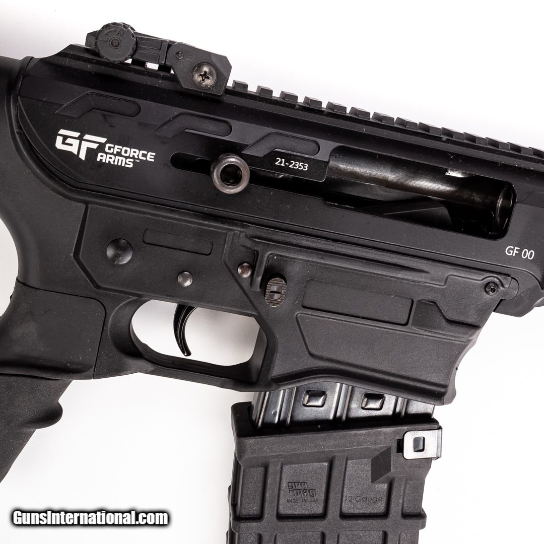 Description: Guns Listing ID: 346601 The GForce GF00 is a self-dense shotgun that is patterned after the AR15. This gives the user familiar controls paired with the power of the 12-gauge round. This shotgun features two 5-round magazines and two 10-round magazines. SOLD Manufacturer: GFORCE ARMS Model: GF00 Condition: Used - Certified Barrels: 20 BARREL Gauge Info: 12 GA Finish: BLACK |