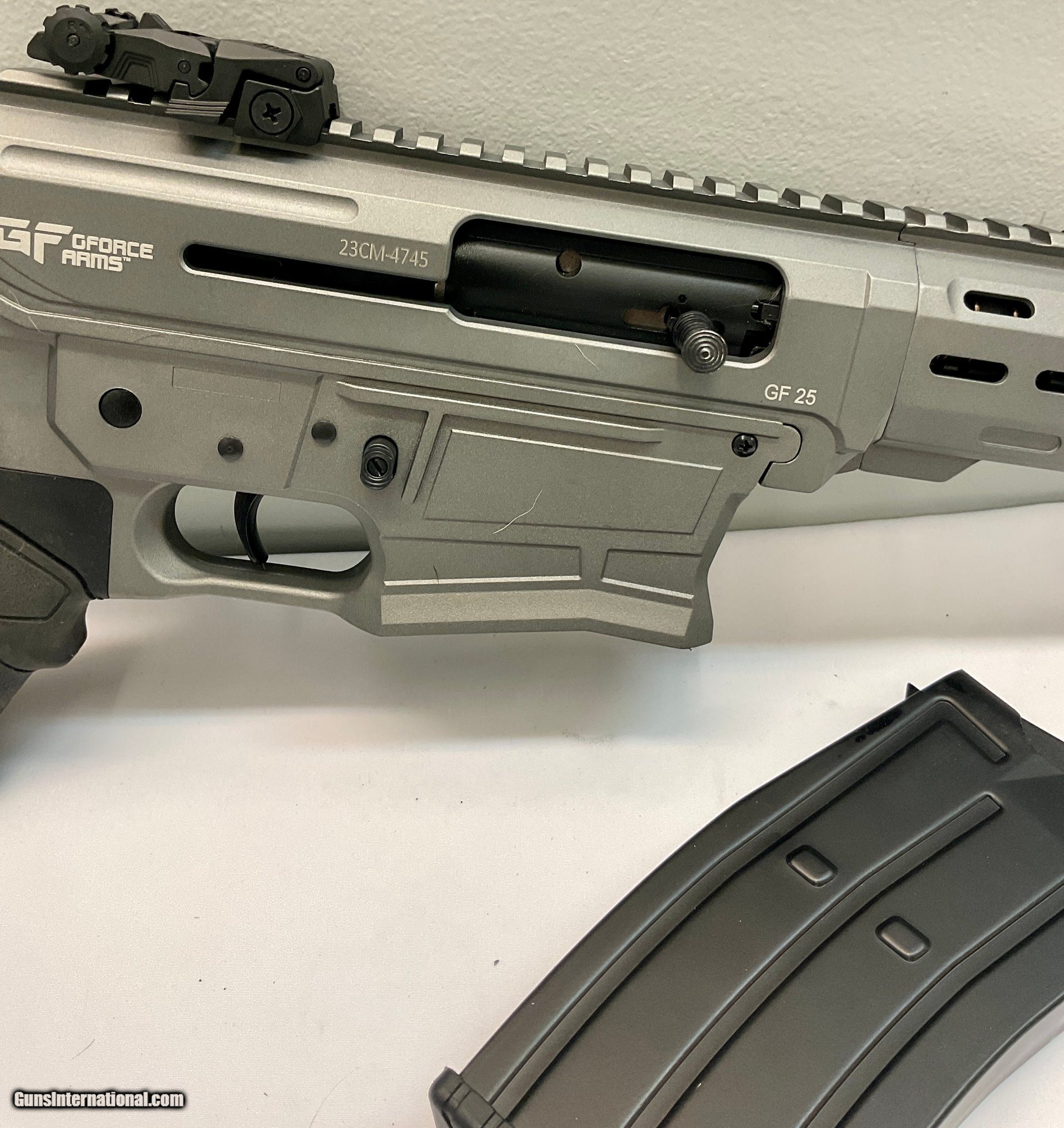 Description: Guns Listing ID: 542701 The GFORCE GF25 is a relatively recent addition to the American shotgun market, particularly known for its \"AR-style\" design and affordability. Unlike legacy brands with long, continuous production histories, GFORCE Arms is a newer company that primarily imports firearms. Here‚s a breakdown of the GFORCE GF25‚s history and the company‚s place in the market: 1. GFORCE Arms as a Company: GFORCE Arms is a firearms importer and distributor based in Reno, Nevada. They state they were \"founded during a time when the U.S. was faced with a shortage of imported firearms.\" While a precise founding year for GFORCE Arms isn‚t widely published, their products, including the GF25, began appearing prominently in the US market in the early to mid-2010s. Their business model focuses on providing firearms that offer a combination of modern features and competitive pricing. SOLD Manufacturer: GFORCE ARMS Model: GF25 Condition: Used - Non-Certified Barrels: 19 BARREL Action: SEMI AUTOMATIC Gauge Info: 12 GA Finish: TITANIUM |