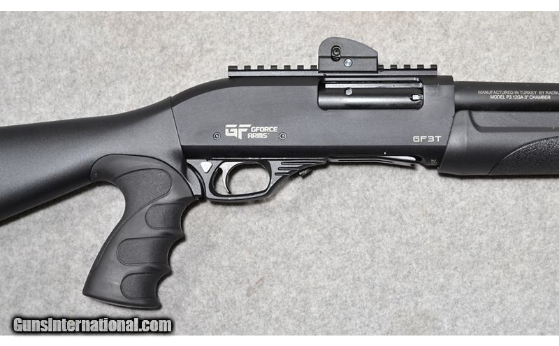 Description: G Force Arms model GF3T 12 Gauge with 20-inch barrel. Three inch chamber with fixed cylinder choke. Ghost ring sight, front post sight with wings, and cross slotted base for optics. Bore is bright with no dings, dents, rings, or bulges. Includes factory box. 12 Gauge SOLD Chambers: 3" chamber. Metal Condition: Action and barrel are in excellent condition. Wood Condition: Black synthetic stock and fore end are in excellent condition. Bore Condition: "Bright bore with no rings, dings, dents, or bulges. Barrels: 20" barrel Triggers: Smooth trigger. Stock Dimensions: 14 1/4" LOP Fore End: Black synthetic pistol grip stock and fore end with rail. Butt Pad: Factory black rubber recoil pad. Weight: 6 lb - 14 oz Sights: Fully adjustable rear ghost ring sight with front post fiber optic bead with wings. Cross slotted rail for optics. Chokes: Fixed cylinder choke. Item Location: Mitchell, SD |