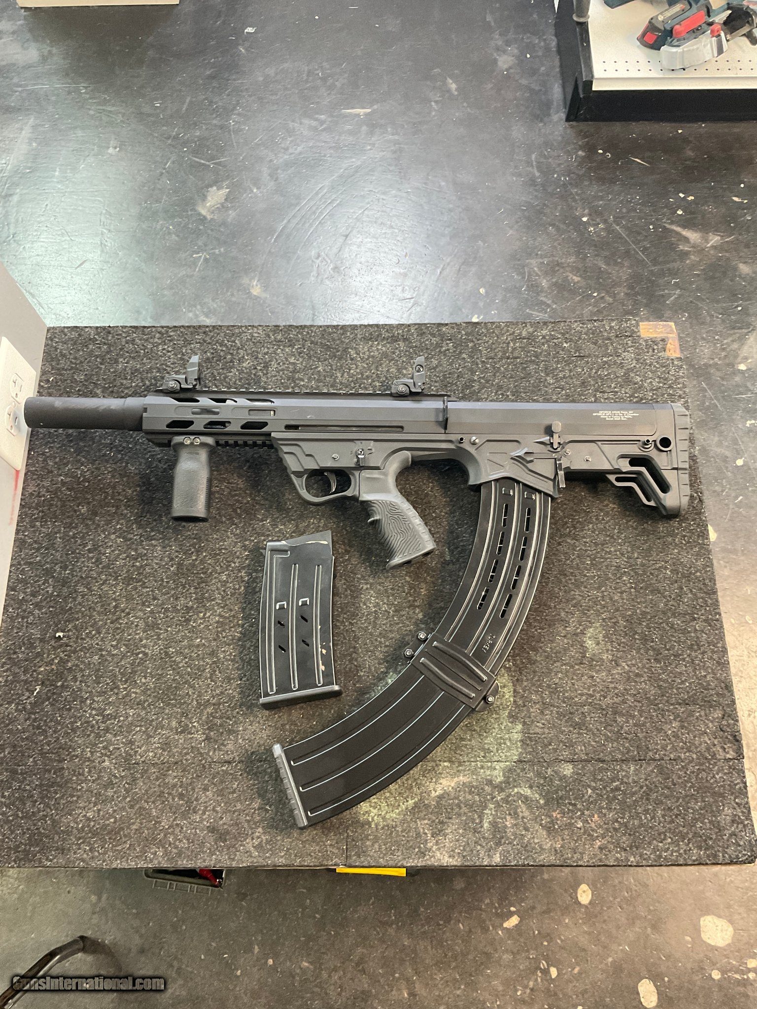 Description: Guns Listing ID: 392946 The GFY-1 is a short and handy Shotgun in the classic bullpup configuration (action and magazine behind the trigger). Bullpup shotguns accommodate a longer barrel without adding unnecessary length, and allow you to hold the weapon closer to your body. At only 2 inches longer than the Mossberg 590 Shockwave, The 28.5-inch GFY-1 is ideal for the narrow corridors of home defense and tactical use. The GFY-1 bullpup shotgun is compatible with MKA-1919 magazines and accepts 2 3/4 and 3-inch 12ga ammo. The GFY-1 features adjustable flip-up sights, as well as a bottom Picatinny rail for mounting accessories. Red dots and reflex sights can also be installed on the GFY-1 for faster target acquisition. SOLD Manufacturer: GFORCE ARMS Model: GFY-1 Condition: Used - Non-Certified Barrels: 18.5 BARREL Action: SEMI AUTOMATIC Gauge Info: 12 GA Finish: BLACK Weight: not specified |
