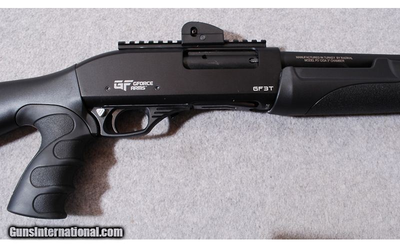 Description: Be the envy of your gun club during your next three-gun competition. This GForce Arms tactical pump action shotgun is manufactured in Turkey by Radikal Arms. Pump action with alloy frame, blued carbon steel barrel, polymer stock with non-slip pistol grip. New in factory box, manual. 12 Gauge. 12 Gauge SOLD Chambers: Three inch magnum chamber. Metal Condition: Like new. Minor handling marks from rack storage. Bore Condition: Like new. Barrels: Twenty inch barrel with fixed cylinder choke. Triggers: Smooth single-stage trigger with positive reset after pump functioning. Stock Dimensions: 14 1/2" Length of pull. Fore End: Strong synthetic fore end with integral picatinny rail for optional lights or laser of your choice. Butt Pad: Factory rubber pad. Weight: 7 lbs Sights: Windage and elevation adjustable ghost ring rear sight. Fiber optic front sight. Picatinny rail for optional optics. Chokes: Fixed cylinder. Item Location: Rapid City, SD |