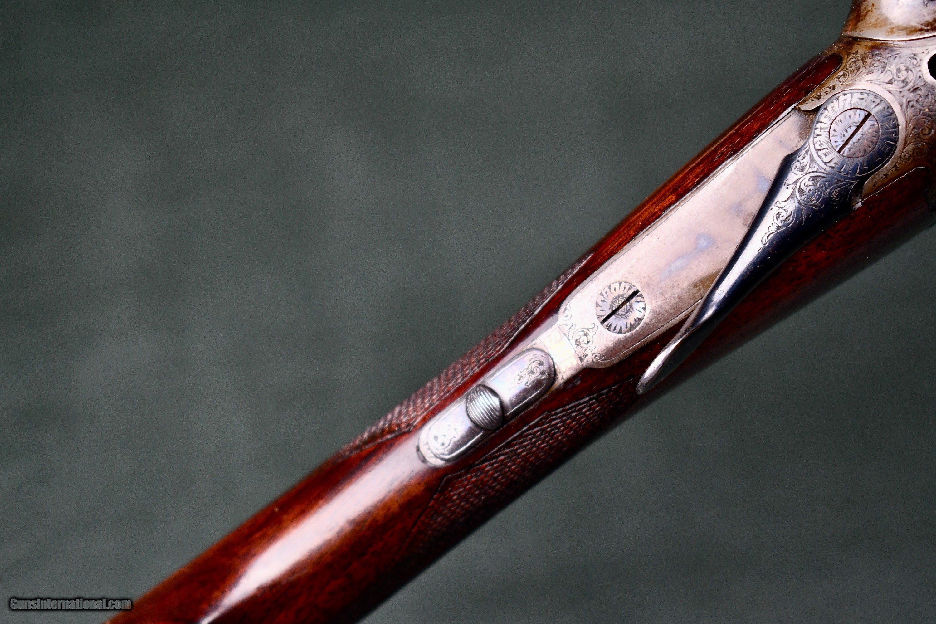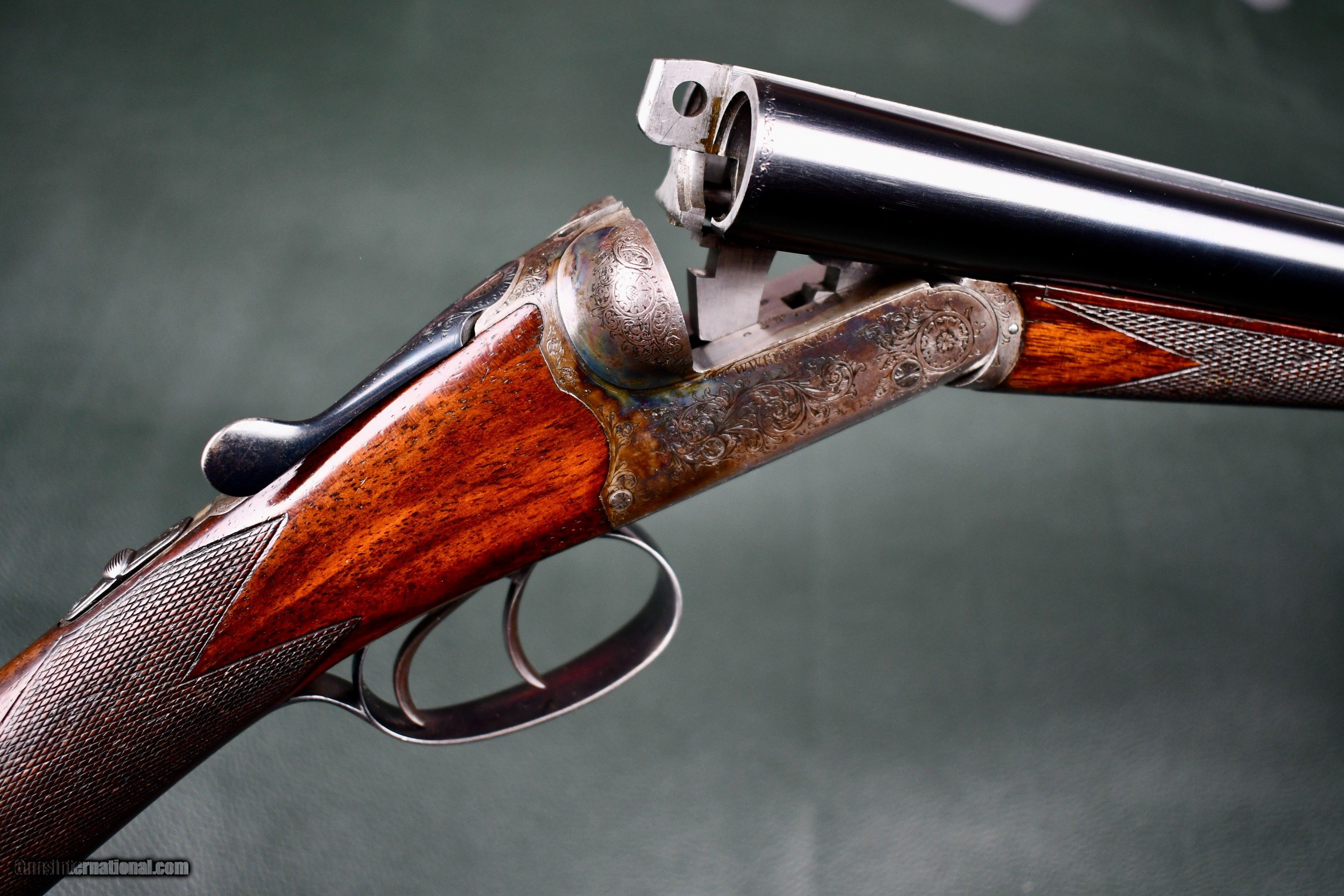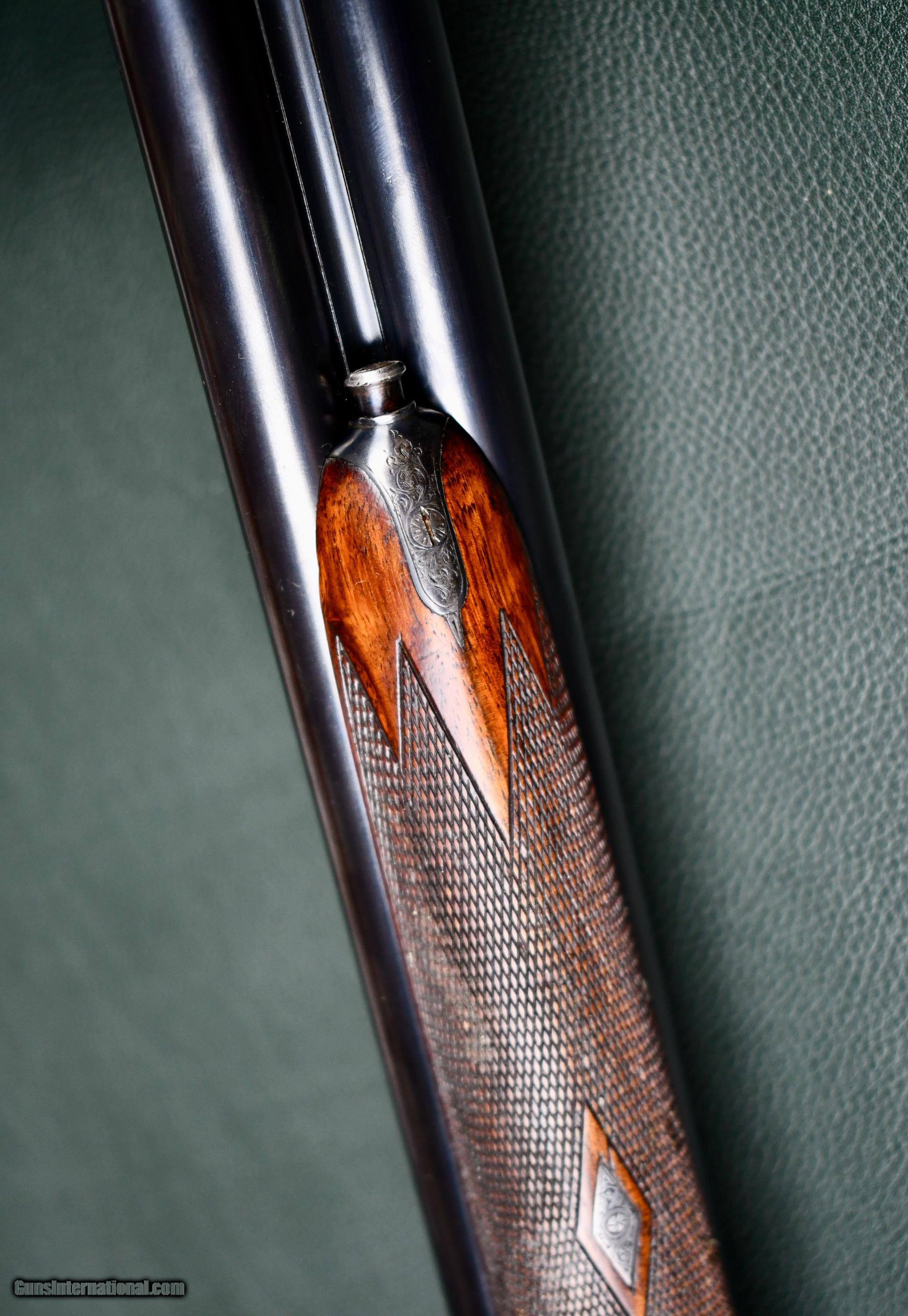 Description: W.W. GREENER 12GA DH33 2" LIGHTWEIGHT -- 1934 DOM -- WHAT AN INCREDIBLE BEST QUALITY LITTLE SHOTGUN! --26" BARRELS CHOKE .010/.027. IC/FULL -- ALL ORIGINAL AND MARKED " FOR 2" CARTRIDGES ONLY" -- "MAXIMUM 1oz LOAD" 85-90% OF ITS FACTORY COLOR -- EJECTORS -- RARE TOP SAFETY -- DOUBLE TRIGGERS WITH ROLLED TRIGGER GUARD -- THESE ARE THE PERFECT QUAIL/GROUSE/WOODCOCK GUNS THAT DELIVER 3/4 TO 1 OZ OF SHOT IN A PERFECT PATTERN -- TREBLE BITE -- BEADED FENCES -- SCALLOPED AND REBATED FRAME -- STRAIGHT HAND STOCK AT 14 3/4 TO ITS ORIGINAL SILVERS PAD -- 1 3/8 X 2 1/4 DROP WITH SLIGHT CAST OFF -- BEAUTIFUL ENGRAVING -- TOP SAFETY -- GAME RIB -- SINGLE BEAD -- THIS GUN IS TIGHT AS NEW, UNALTERED AND FLAT BEAUTIFUL -- SCREWS ARE IN TIME WITH UNALTERED ORIGINAL SLOTS -- IT COMES IN ITS ORIGINAL CASE THAT HAS HAD A HANDLE AND HINGE REPLACEMENT -- ORIGINAL CLEANING RODS, BRUSH AND JAG ARE PRESENT -- WILTON WOOL INTERIOR SHOWING SOME TATTERING -- BEAUTIFUL ORIGINAL TRADE LABEL IS INTACT AND PERFECTLY LEGIBLE -- THIS GUN NEEDS TO RETURN TO FIELD SERVICE AND JUST THE WAY YOU WANT TO FIND IT. CONSIDERING A MODERN MONO BLOCKED COMPUTER LAZER ENGRAVED SHOWPIECE? HOW ABOUT A REAL GUN THAT WON'T SHOW UP IN YOUR SHOOTING BUDDYS HAND AS WELL! EXTREMELY RARE!!!!! NO PROBLEM FINDING SHELLS, AS FEDERAL NOW PRODUCES A PERFECT BIRD LOAD IN FACTORY ROLL CRIMPED #8's at 15/16oz. AT GREENES, WE LITERALLY HAVE ACCESS TO HUNDREDS OF SMALLBORE AMERICAN AND EUROPEAN COLLECTABLE LONGARMS -- FEEL FREE TO CALL WITH YOUR NEEDS -- WHY FIGHT THE EXPENSIVE AND AGGRAVATING CROWDS FOR THAT ONE IN FIFTY CHANCE. WE HAVE THEM AND YOU ARE NOT GOING TO PAY A 20% BUYERS PREMIUM. STOP HITTING THE "BID NOW" BUTTON, PICK UP THE PHONE AND CALL ME! Factory Parker Brothers skeet and field guns..... We have them. Factory Graded Winchester 21's....... Not a problem English and European O/u and SXS's Rare and hard to find Colts and S&W hand guns I have been providing hard to find smallbore American and English long guns to collectors and dealers since 1997. Give us a try call , text or email. you have nothing to lose except 20% of your money! SOLD Shotgun Gauge: 12 Gauge Manufacturer: WW GREENER Model: DH 33 Barrel Length: 26 Chambers: 2 Ejectors: yes Condition: excellent Metal Condition: excellent Wood Condition: excellent Barrel Type: sxs Action: boxlock Triggers: 2 Stock Comb: 1 3/8 Stock Heel: 2 1/4 Stock Cast: off Fore End: splinter Butt Pad: silvers pad LOP: 14 3/4 Rib: game Finish: oil Weight: 5lbs 9oz Sights: 1 Manufacture Date: 1934 Choke Left: .025 Choke Right: .010 Engraving: yes Extras: jag rods brush Case: yes Proof:Nitro: yes |