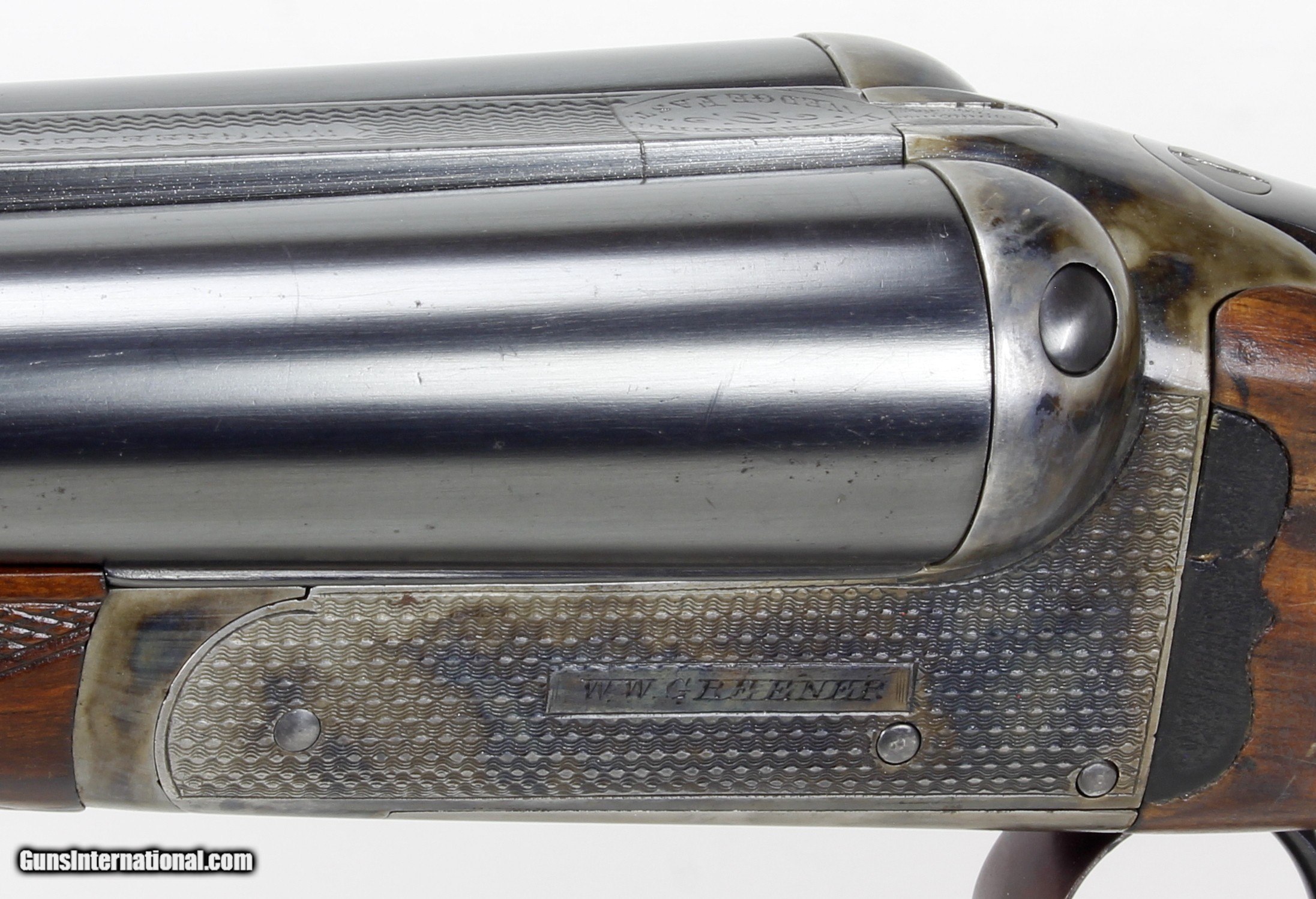 Description: W.W.GREENER, 12GA, S X S, 30" Barrels, Fine Bores, 2 3/4" Chambers, Extractors, Double Triggers, LOP: 15 1/4"/14 1/4", DAC: 1 1/2", DAH: 2 1/4". Weight: 6 1/2LBS, Nice Fineline Checkering W/Checkered Butt. SN#32880, MFG: 1950's Estimate. Barrels are Choked: Left Barrel: Modified, Right Barrel: Skeet. "I shot 100 Rounds of Sporting Clays with the Gun, and it performed Great". Ships to Lower 48, W/Insurance: $45.00 NOTE: W W GREENER, CONTINUES IN BUSINESS IN BIRMINGHAM, ENGLAND, Making Fine Double Rifles, Shotgun on a Custom Basis. This gun was Probably Custom Made for a Customer int the 50's or 60's. Information may be available from the company on this gun. SOLD Shotgun Gauge: 12 Gauge |