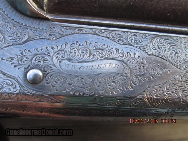 Description: W.W.GREENER "BEST QUALITY" MFG. "1879" ANSON DEELY 12GA.EXTRACTOR SCALLOPED FENCED HAMMERLESS BOXLOCK SHOTGUN .2 1/2" CHAMBERS W/ TREBLE WEDGE FAST FASTENERS.30" ORIGINAL PLUMB BROWN DAMASCUS BARRELS WITH EXCELLENT BORES,NO PITTING,NO DENTS AND FULL AND MODIFIED FIXED CHOKE.FULL BARREL THICKNESS REMAINS,.035 & .037 THICKNESS.LISTED IN THE GREENER BOOK AS BEST QUALITY.FULL COVERAGE TIGHT SCROLL EXQUISITE ENGRAVING.GREENER SIDE SAFTEY AND COCKING INDICATORS.BARRELS ON FACE AND ACTION LOCKS UP TIGHT.GUN WEIGHS IN AT 7 LBS 8 OZS.ENGLISH WALNUT STOCK WITH FIDDLEBACK AND STREAKED FIGURE SOME LIGHT CHECKERING WEAR.L.O.P. 15" OVER ORIGINAL HORN BUTT PLATE,D.A.C. 1 9/16",D.A.H. 2 9/16",1/4" CAST OFF AT HEEL,1/8" AT TOE. 3259.00 PLUS 65.00 REGISTERED INSURED SHIPPING.CHECKS TAKE 10 DAYS TO CLEAR BANK,M/O'S TAKE 5 BUSINESS DAYS TO CLEAR BANK,NO CREDIT CARDS TAKEN. CALL DANNY AT 828=698=8804 IF NEEDED.GOD'S BLESSING ON YOU AND YOUR'S! SOLD Curio/Relic: Yes |