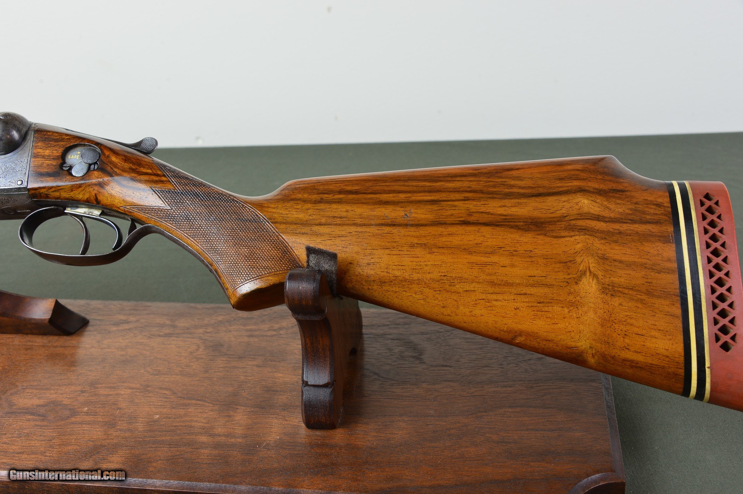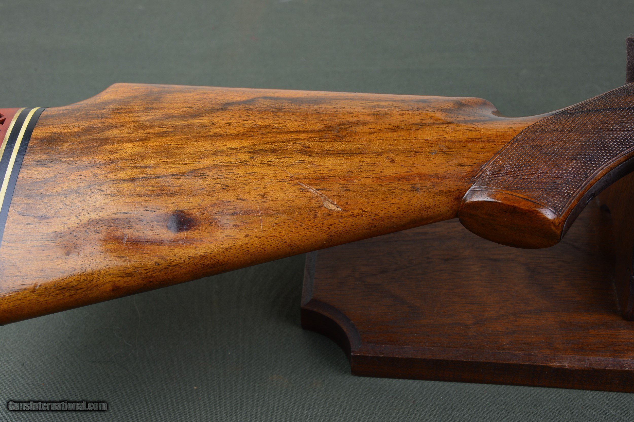 Description: *** SOLD *** This Greener boxlock non-ejector, number 41192, was made circa 1894 and has 28-1/2” nicely figured Damascus barrels. It also has a Greener cross-bolt for strength, a Greener side-safety and extractors. Game gun weight at 6lb 10oz. *** The 28-1/2” Damascus barrels are chambered for 2-1/2” shotshells. They are topped with a raised solid crosshatched rib. The rib is inscribed “W.W. Greener St. Mary’s Square Birmingham England Winner At All Gun Trials 1875 - 1891” The right barrel is bored.738 with a constriction of 0.007 for Improved Cylinder choke. Minimum wall thickness is 0.032. The left barrel is also bored 0.738 and has a constriction of 0.013 for Light Modified choke. Minimum wall thickness is 0.033. The barrels are black powder proofed and the bores are shiny. There is a small dent on the side of the right barrel near the muzzle that can easily be repaireded by a gunsmith. With their great wall thickness they will be safe to shoot with low pressure loads such as those made by RST Shotshells. *** The Monte Carlo stock and splinter forearm are made from lightly figured walnut. The forearm has a Deeley latch and an ebony tip which shows a little wear. Length of Pull is 14-5/16” with very low drop dimensions on the monte carlo. Cast off for the righthanded shooter. There is a repaired crack on the right side of the stock near the rear of the grip and some damage near the right toe and in the right pistol grip checkering. These latter two are cosmetic rather than structural. *** This W.W. Greener is made on a strong action but has some issues that the new owner will want to address as listed above. Great starter double from a renowned and innovative English maker. *** Buyer is responsible for all shipping, insurance, and any other related charges. At this price the gun is sold “As Is” with no return. SOLD Antique: Yes |
