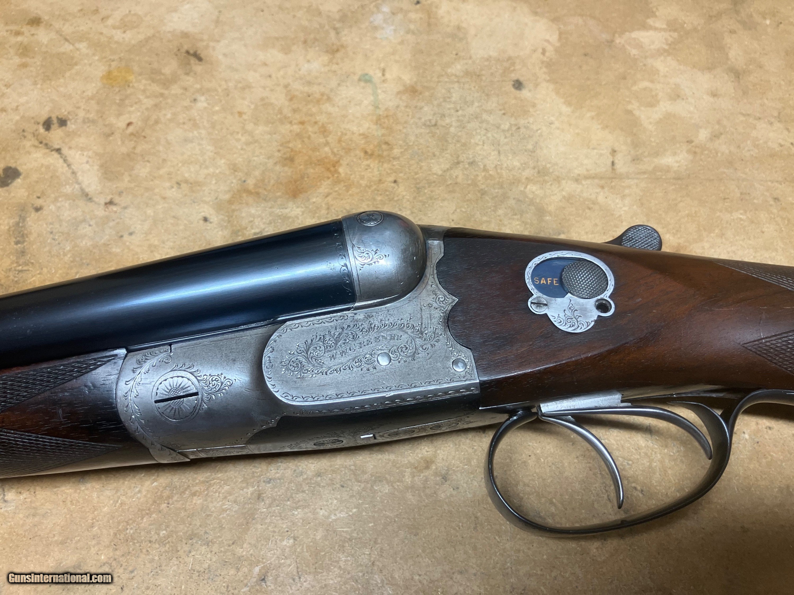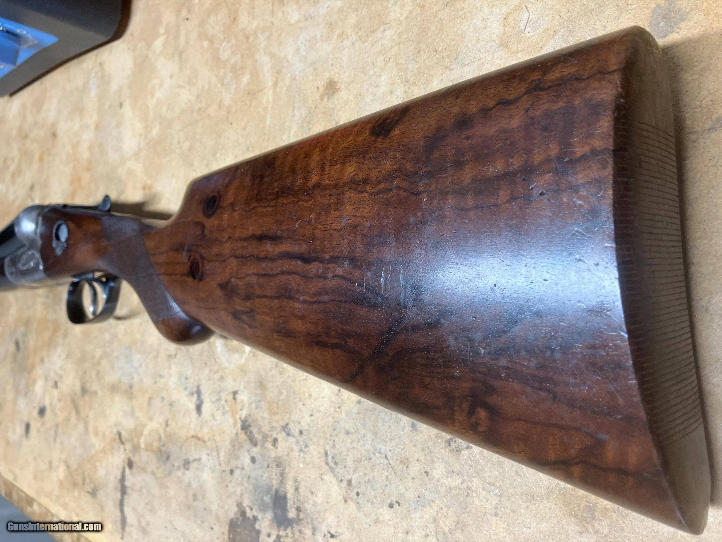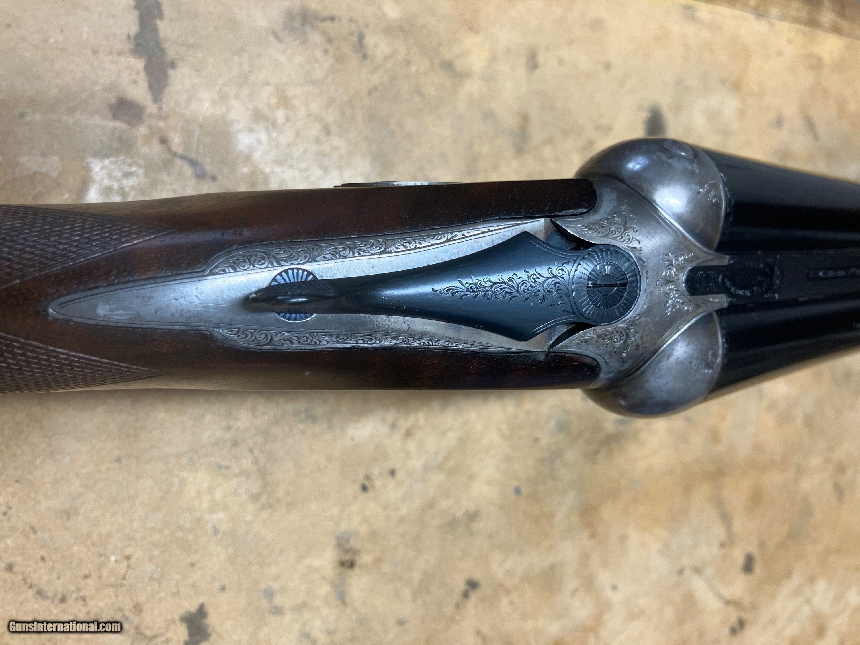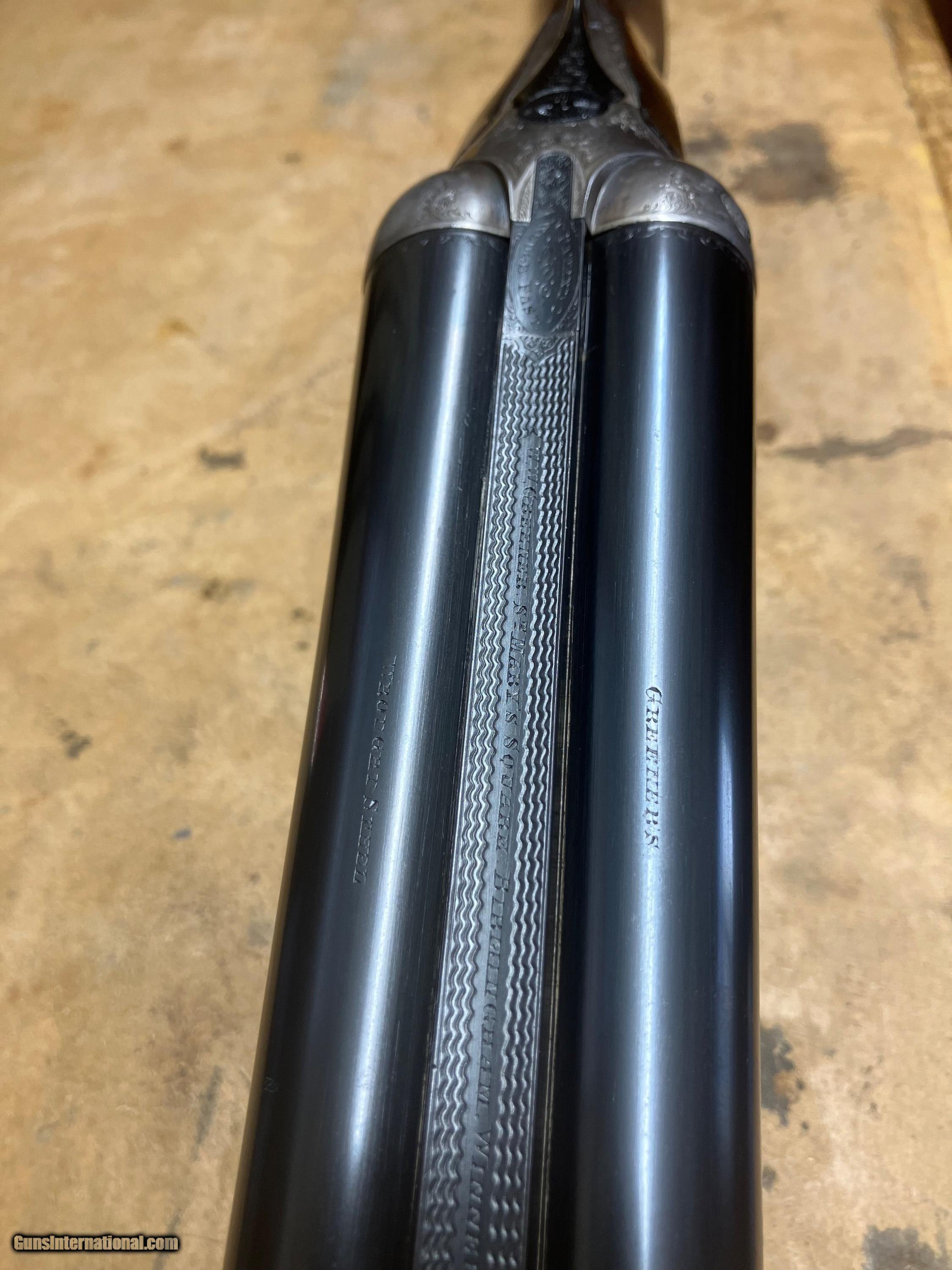 Description: W.W. Greener self acting ejector gun. Commonly referred to as a G-gun in the trade. This gun was built in 1894 and the ejectors are fully functional!!!! This gun would make an excellent project gun. It has recently been stripped, cleaned, and lubed, the mechanism is flawless and all internal parts a very finely finished. Excellent spring tension. Action pins & screws are perfect. The barrels have been professionally blacked. Ribs are tight. Action is tight and barrels are on the face. It has been previously restocked ( done in England many years ago), not a bad job, inletting is very good, but new wood to your dimensions would set this gun apart. The Greener side safety has been disabled. The safety lever still moves, it was previously made to not contact the trigger blades. One of the mounting screws for the safety has broken, that'll need to be fixed. Overrall an outstanding gun that would make a good base for a custom gun project. $1200 Buyer pays actual shipping (averaging about $60) SOLD Curio/Relic: Yes Antique: Yes Shotgun Gauge: 12 Gauge Manufacturer: W.W. Greener Model: List #6 Self acting ejector Serial Number: 42128 Barrel Length: 28” Bore: Shiny Chambers: 2.5” Ejectors: Yes Condition: Very Good Metal Condition: Excellent Wood Condition: Very good Bore Condition: Excellent Barrel Type: Steel Action: Excellent Triggers: Two Stock: Walnut Stock Comb: 1 3/4” Stock Heel: 2 1/4” Stock Cast: Very slight cast off Fore End: Splinter LOP: 14 5/8” Rib: Raised game rib Weight: 7 lbs 2.7 oz. Sights: Metal bead Manufacture Date: 1894 Chokes: Fixed Choke Left: .015 Choke Right: .006 Engraving: Fine scroll Item Location: Utah Proof:Nitro: Yes Minimum Wall Thickness Left: .026 Minimum Wall Thickness Right: .026 |