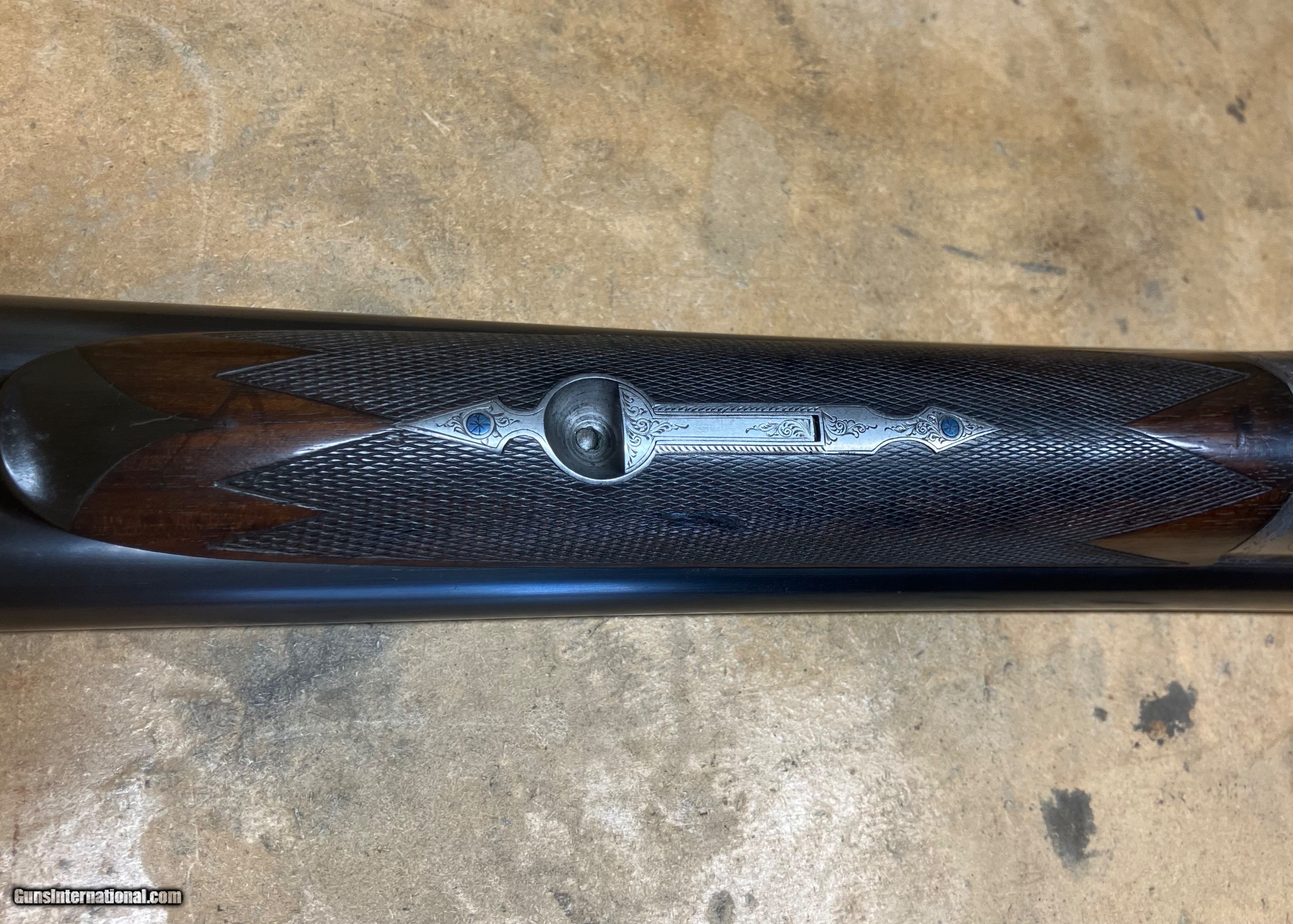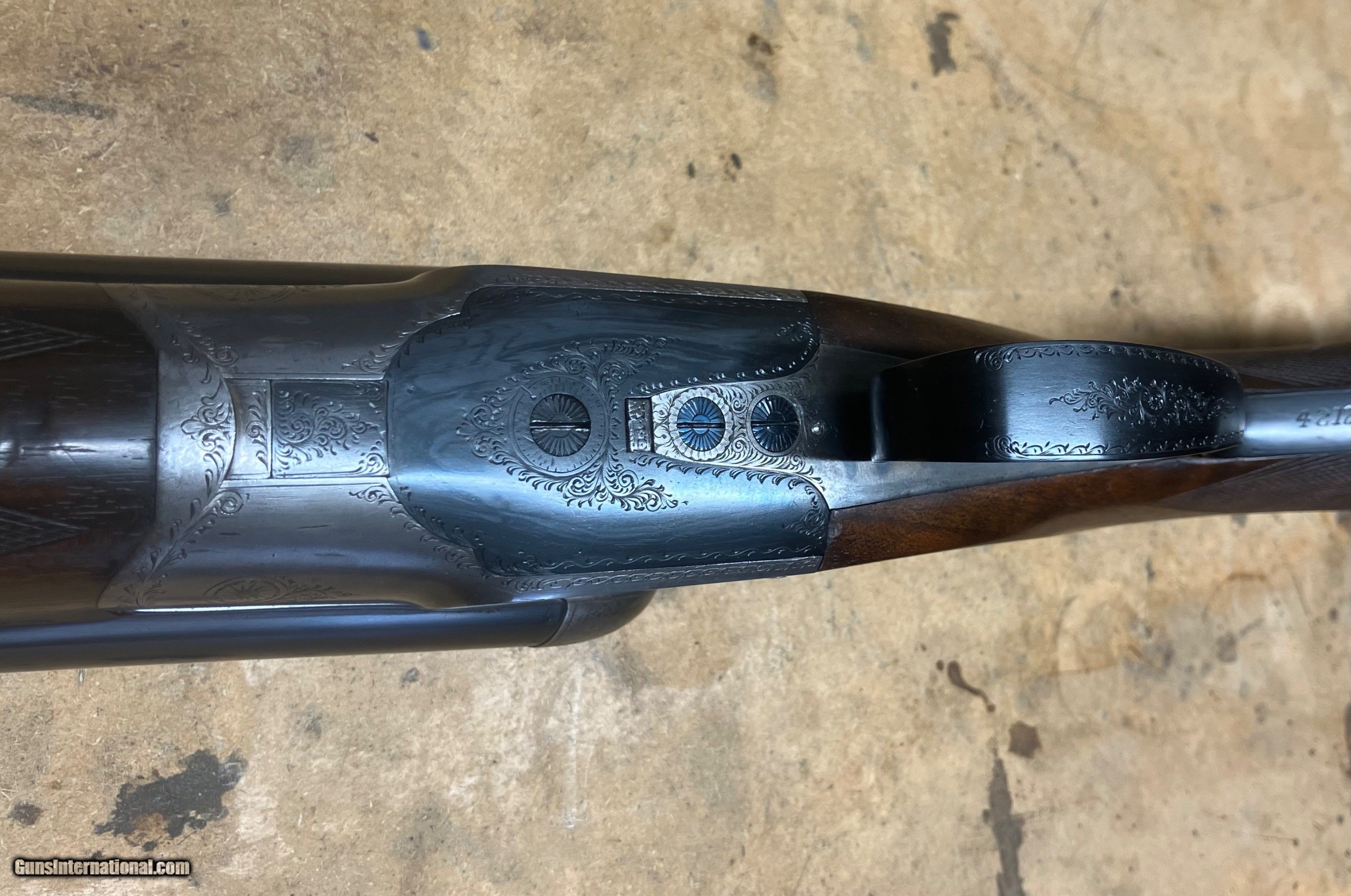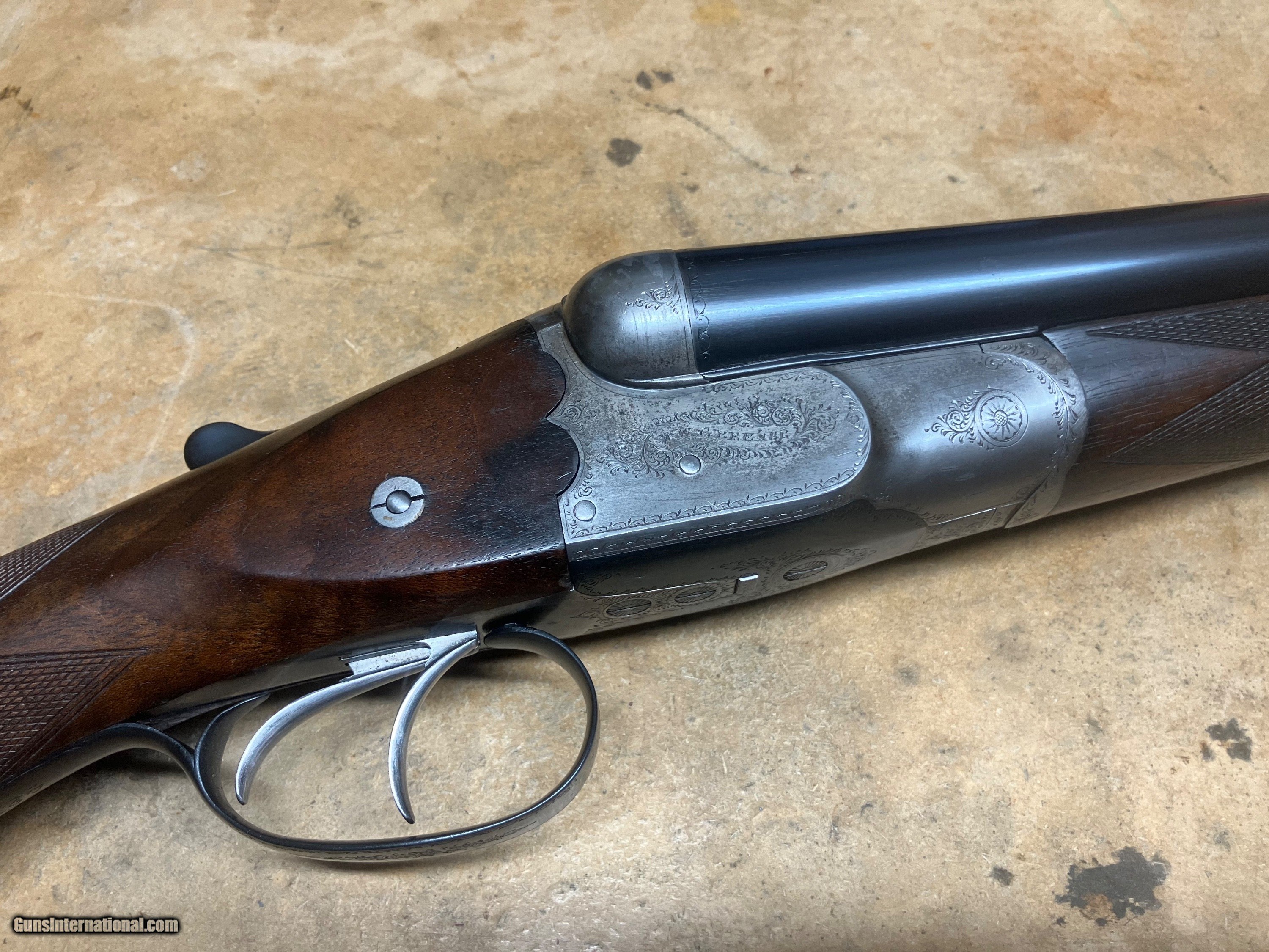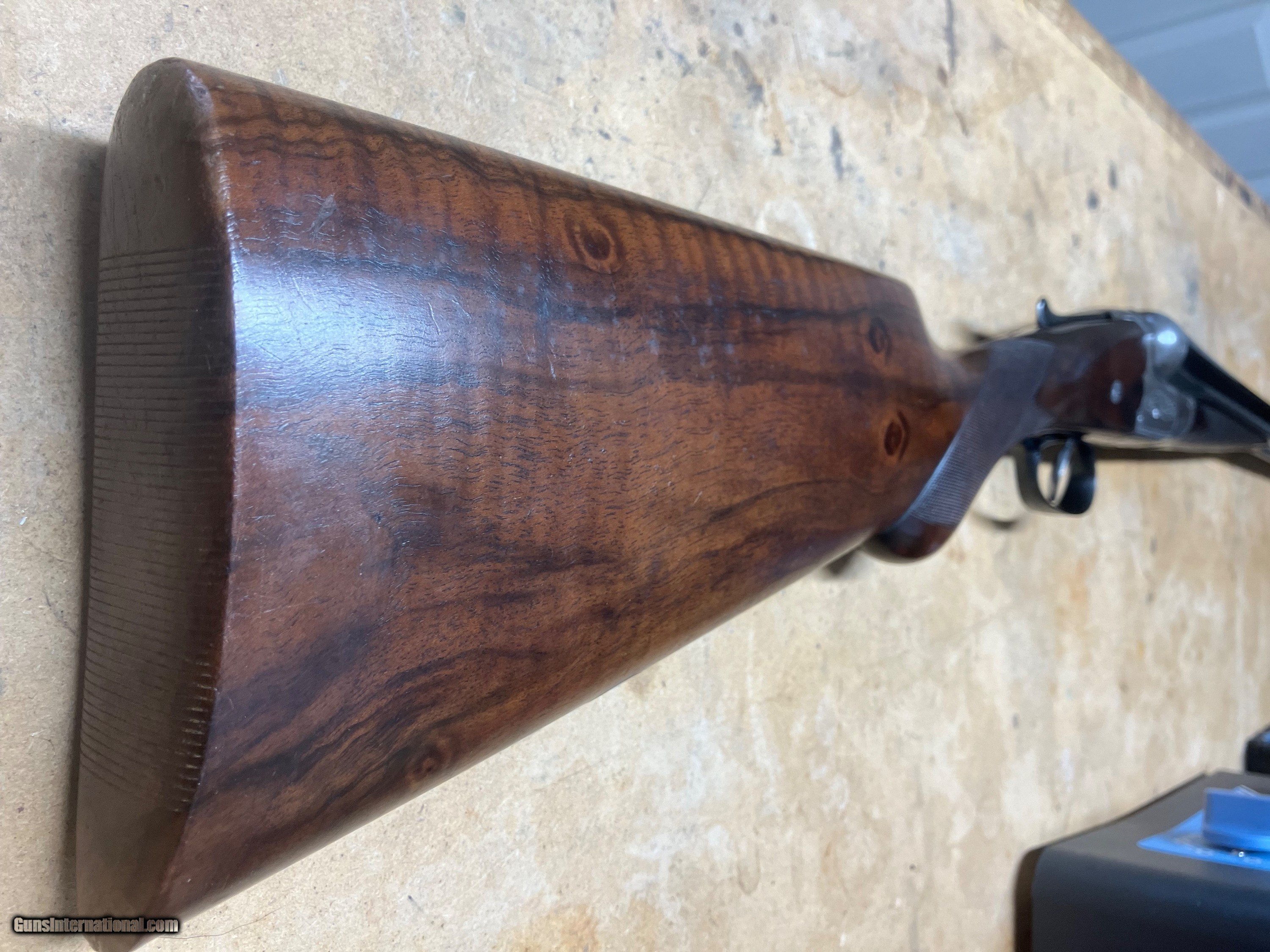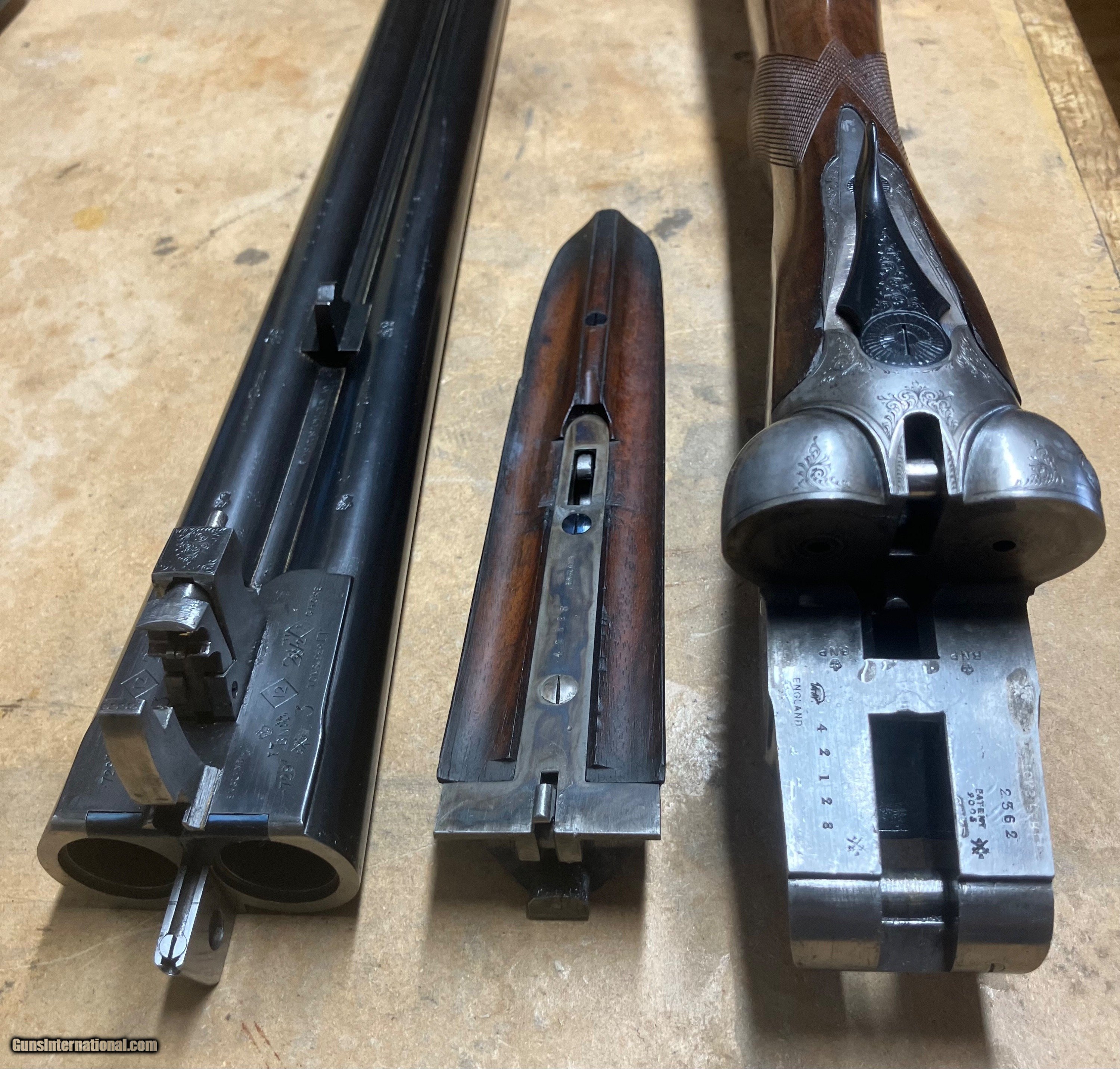 Description: W.W. Greener self acting ejector gun. Commonly referred to as a G-gun in the trade. This gun was built in 1894 and the ejectors are fully functional!!!! This gun would make an excellent project gun. It has recently been stripped, cleaned, and lubed, the mechanism is flawless and all internal parts a very finely finished. Excellent spring tension. Action pins & screws are perfect. The barrels have been professionally blacked. Ribs are tight. Action is tight and barrels are on the face. It has been previously restocked ( done in England many years ago), not a bad job, inletting is very good, but new wood to your dimensions would set this gun apart. The Greener side safety has been disabled. The safety lever still moves, it was previously made to not contact the trigger blades. One of the mounting screws for the safety has broken, that'll need to be fixed. Overrall an outstanding gun that would make a good base for a custom gun project. $1200 Buyer pays actual shipping (averaging about $60) SOLD Curio/Relic: Yes Antique: Yes Shotgun Gauge: 12 Gauge Manufacturer: W.W. Greener Model: List #6 Self acting ejector Serial Number: 42128 Barrel Length: 28” Bore: Shiny Chambers: 2.5” Ejectors: Yes Condition: Very Good Metal Condition: Excellent Wood Condition: Very good Bore Condition: Excellent Barrel Type: Steel Action: Excellent Triggers: Two Stock: Walnut Stock Comb: 1 3/4” Stock Heel: 2 1/4” Stock Cast: Very slight cast off Fore End: Splinter LOP: 14 5/8” Rib: Raised game rib Weight: 7 lbs 2.7 oz. Sights: Metal bead Manufacture Date: 1894 Chokes: Fixed Choke Left: .015 Choke Right: .006 Engraving: Fine scroll Item Location: Utah Proof:Nitro: Yes Minimum Wall Thickness Left: .026 Minimum Wall Thickness Right: .026 |