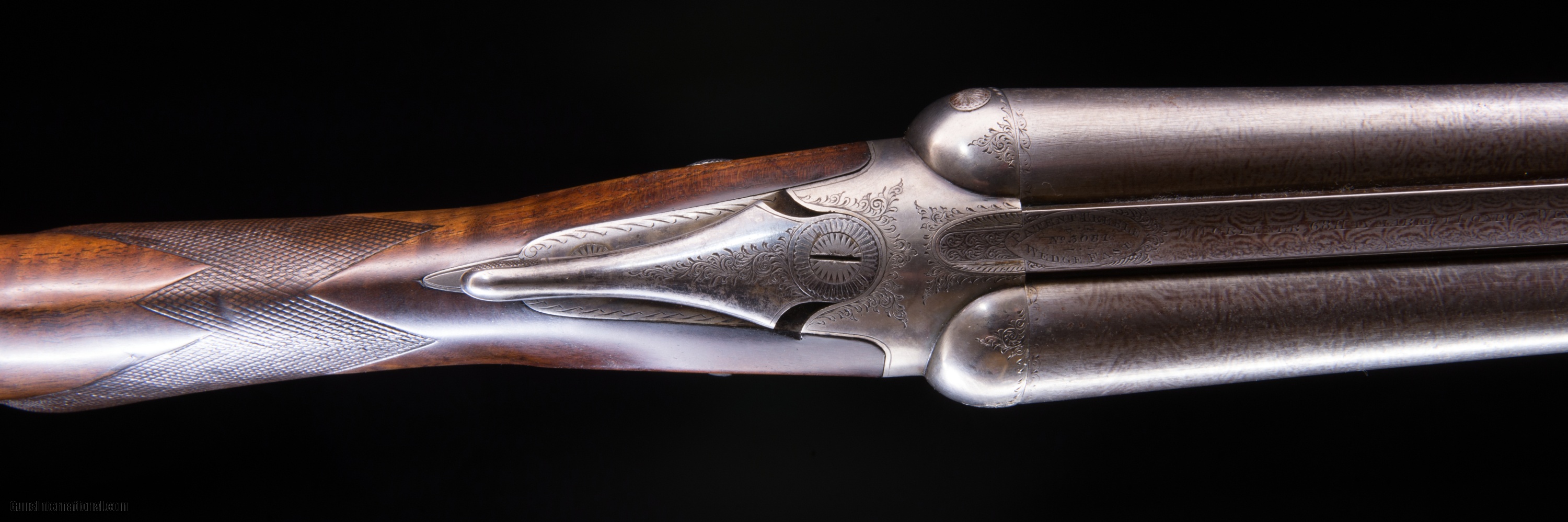 Description: Boxlocks - A very light little Greener 20g. . They did not make many 20g. guns during this period so this gun is quite rare. The bores are bright but to be up front there is some even haze (micro) pitting in each bore but nothing to worry about for a field gun. When the gun arrived it was off face (loose) so we are having the gun rejoined by Hosford & Co. and it should be ready in about three weeks after this listing and will be vault tight on face. W.W. Greener guns were highly respected in the old west here in America.