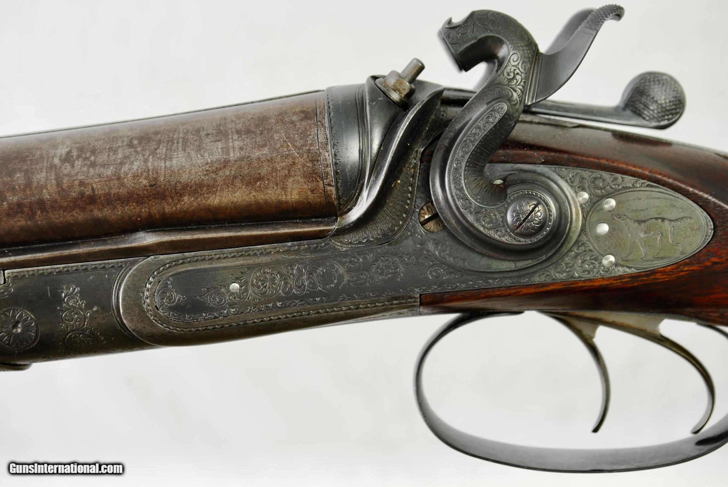 WILLIAM GREENER 12 GAUGE HAMMER DOUBLE MADE IN THE EARLY 1850'S - WELL ENGRAVED WITH HIGHLY FIGURED WOOD - SALE PENDING