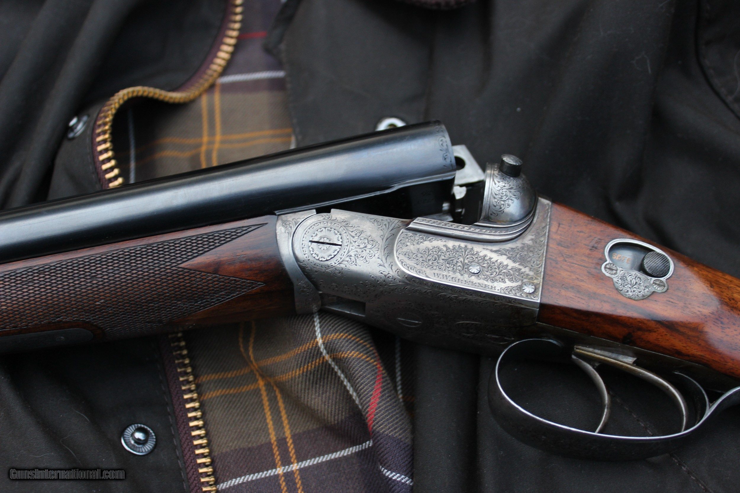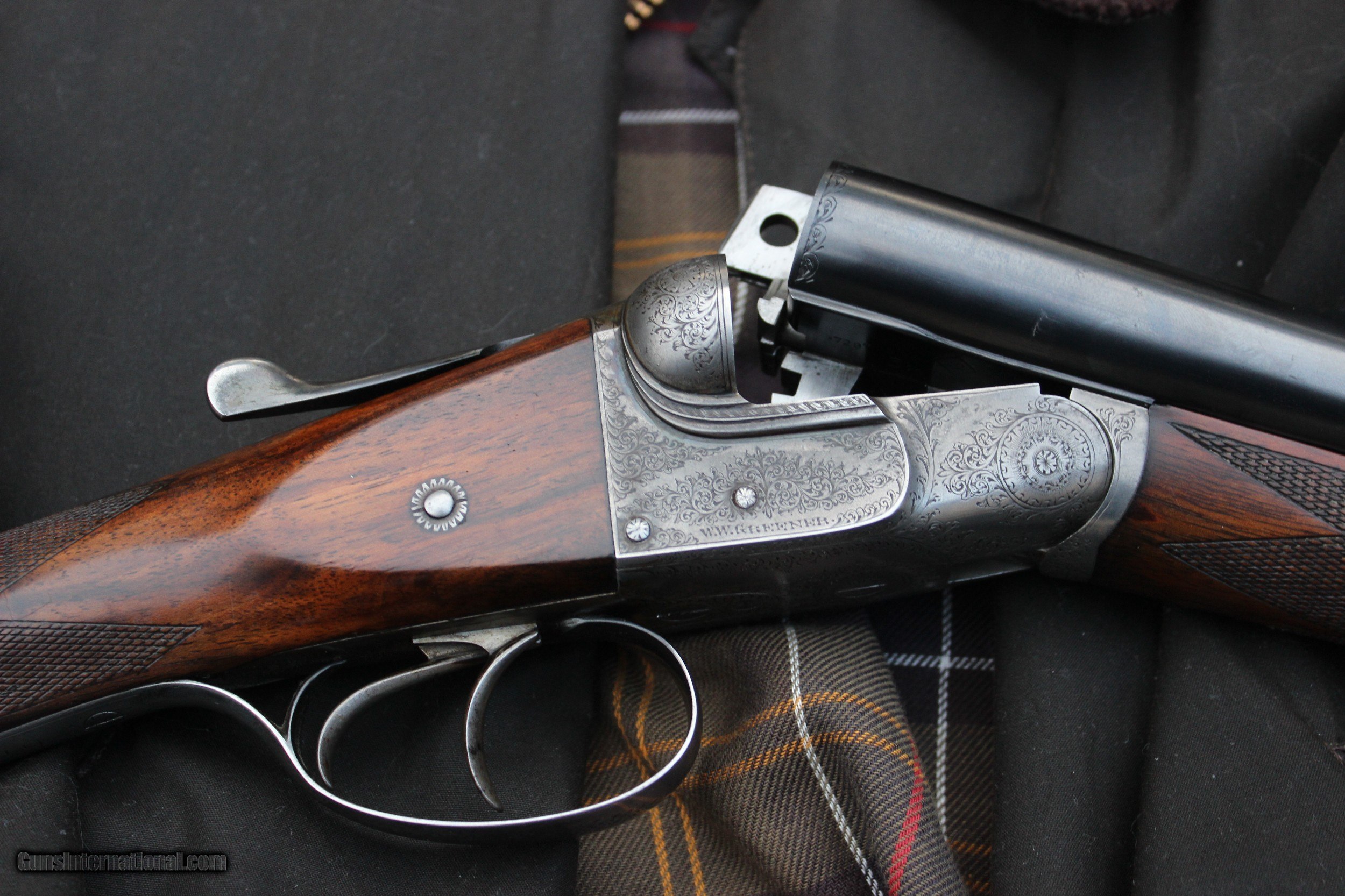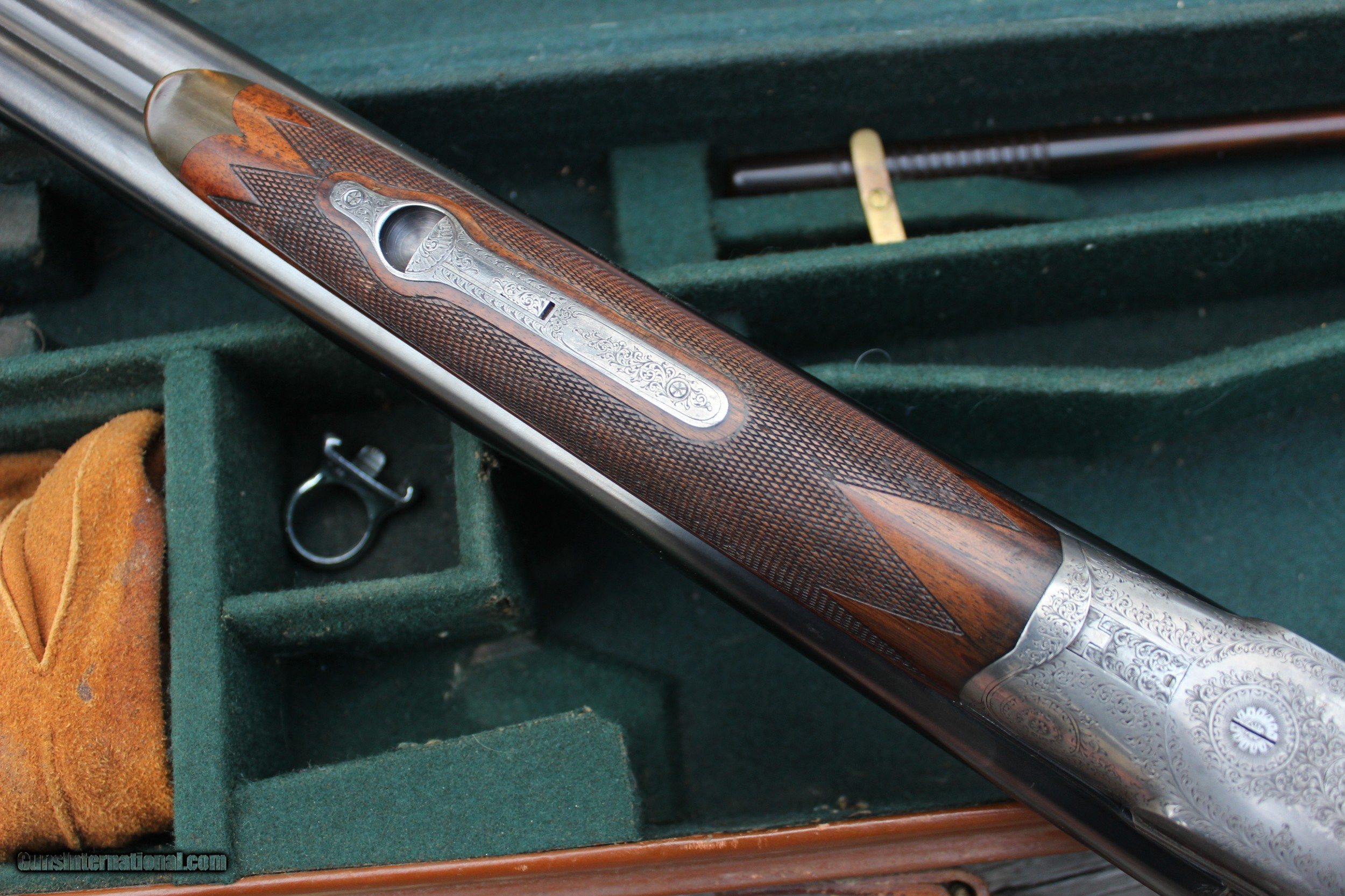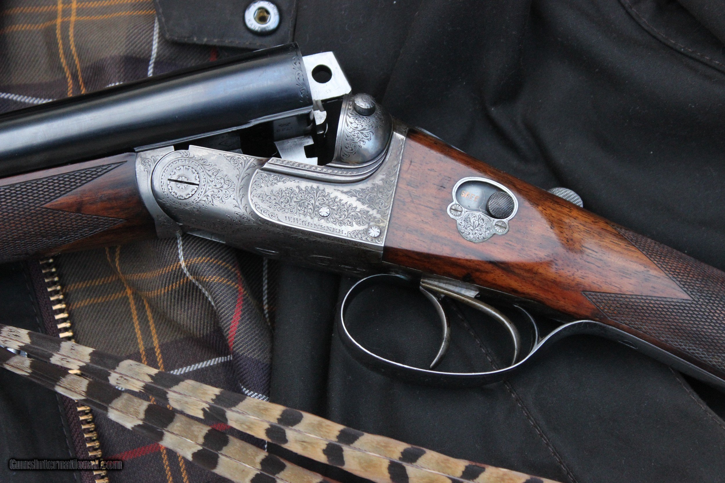 Description: WW Greener FH 50 Grade Serial # 68639. 1930 Year of mfg. Barrels are 25” Ejector in the Robert Churchill style. Standard Game rib. Chambers are 2 ¾” and British Nitro Proofed at 3 ¼ Ton’s psi. Chokes are Right: IC and Left: Full. A fantastic hunting & sporting combination. Perfect for Grouse, Woodcock, and Quail. Weight: 6# 5.3oz. Stock: Straight Grip at, 14 5/8” LOP, 1 1/4” DAC, and 2” DAH. A slight Right hand Cast off. Bone fore-end tip & Bone / Horn butt plate. Note the nearly full coverage fine English style engraving of the less common FH 50 Grade. This high condition Greener comes in its leather VC maker’s case. with all accessories. Rosewood cleaning rods, WW Greener monogrammed snap caps, assorted cleaning jags, and shell puller. All complete with makers case label. This gun mounts, and Swings beautifully. After all is a British best! Priced to sell at $4,895.00. Offers considered. The buyer assumes shipping & insurance costs. 3-day inspection period. SOLD Curio/Relic: Yes Shotgun Gauge: 12 Gauge Manufacturer: WW Greener Model: HF-50 Serial Number: 68639 Barrel Length: 25 Chambers: 2 3/4 Ejectors: Yes Condition: 100% Metal Condition: 100% Wood Condition: 100% Bore Condition: 100% Barrel Type: steel Action: Top Action Break Triggers: double Stock Comb: 1 1/4 Stock Heel: 2 Stock Cast: Slight Cast off Butt Pad: None LOP: 14 5/8 Rib: Game Rib Finish: English Oil Weight: 6# 5.3 oz. Sights: bead Manufacture Date: 1930 Chokes: Yes Choke Left: Full Choke Right: Icyl Engraving: Yes Extras: All accessories Case: Yes Proof:Nitro: Yes |