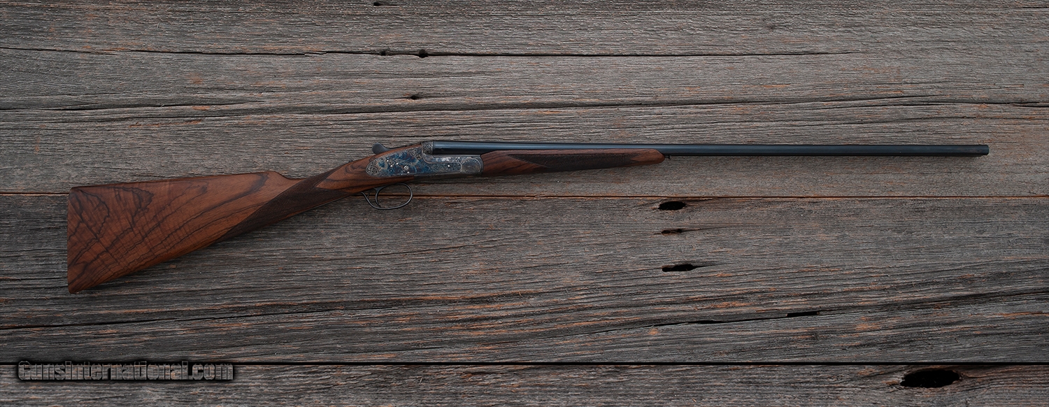 Description: Gun is in very good condition with some light handling marks stock has a very small chip near butt. SOLD Manufacturer: Griffin & Howe Model: Round Body Game Gun Caliber Info: 410 Gauge Ejectors: Yes Condition: Preowned Metal Condition: Very Good Barrels: 27 Action: Sidelock : Side by Side Triggers: Single Gauge Info: 410 Gauge Stock Comb: 1 1/2 Stock Heel: 2 3/8 Stock Cast: Off Fore End: Splinter LOP: 14 3/4 Rib: Flat File Cut Weight: 6.000000 Chokes: IC/M Case: No |