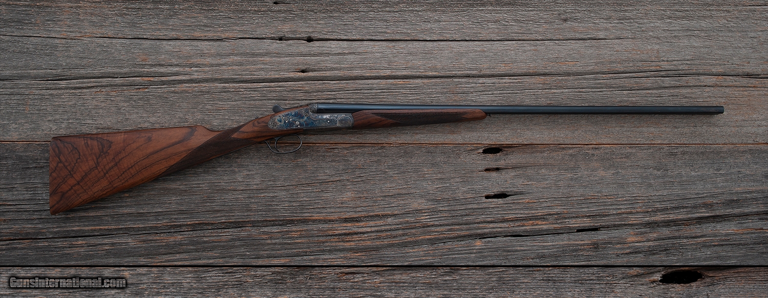 Description: Gun is in very good condition with some light handling marks stock has a very small chip near butt. SOLD Manufacturer: Griffin & Howe Model: Round Body Game Gun Caliber Info: 410 Gauge Ejectors: Yes Condition: Preowned Metal Condition: Very Good Barrels: 27 Action: Sidelock : Side by Side Triggers: Single Gauge Info: 410 Gauge Stock Comb: 1 1/2 Stock Heel: 2 3/8 Stock Cast: Off Fore End: Splinter LOP: 14 3/4 Rib: Flat File Cut Weight: 6.000000 Chokes: IC/M Case: No |