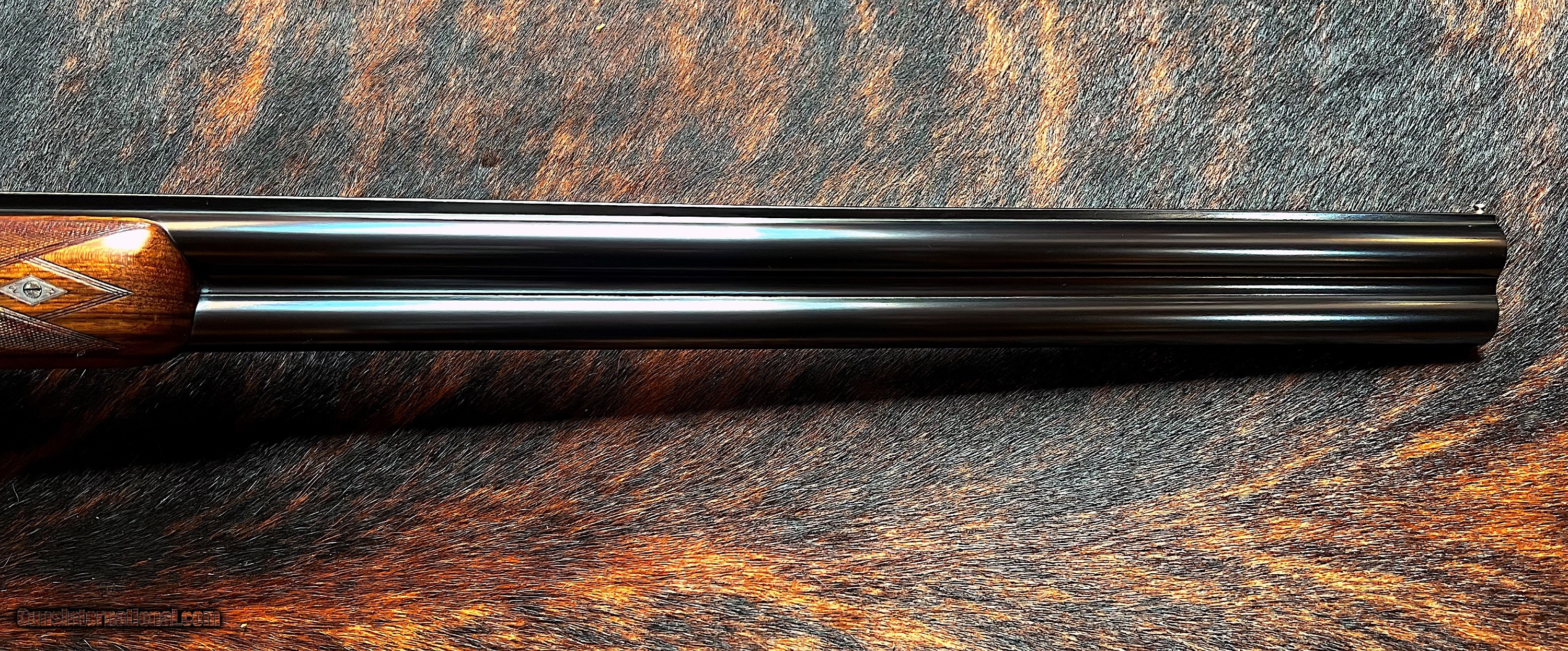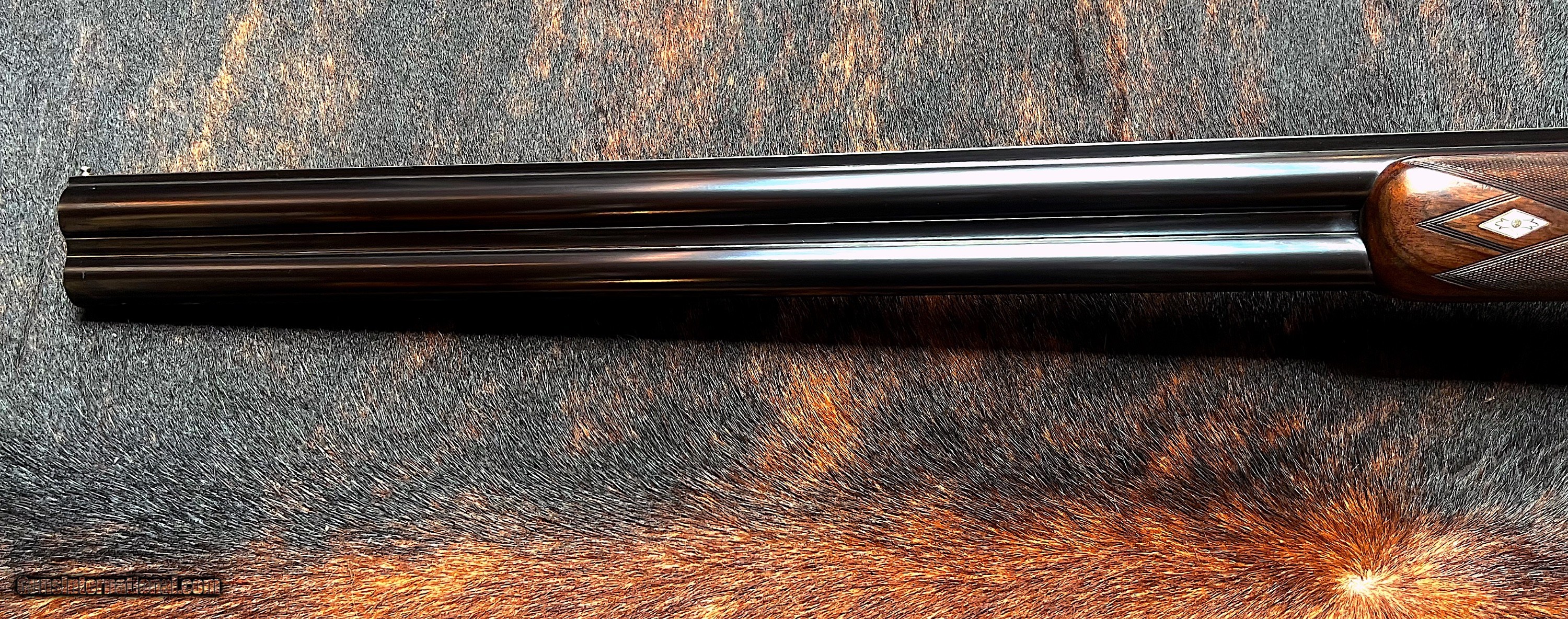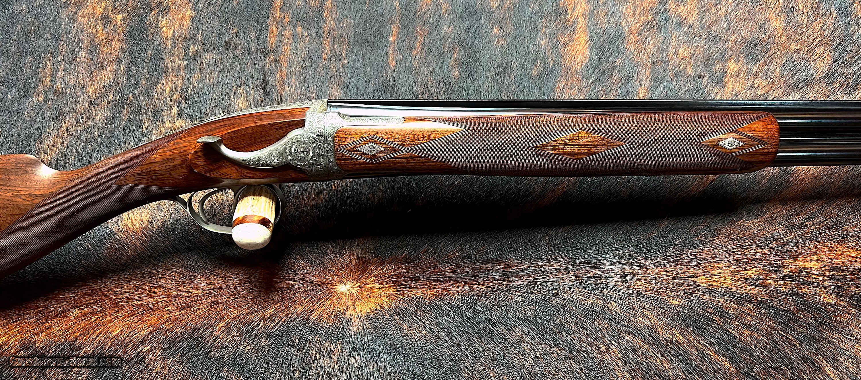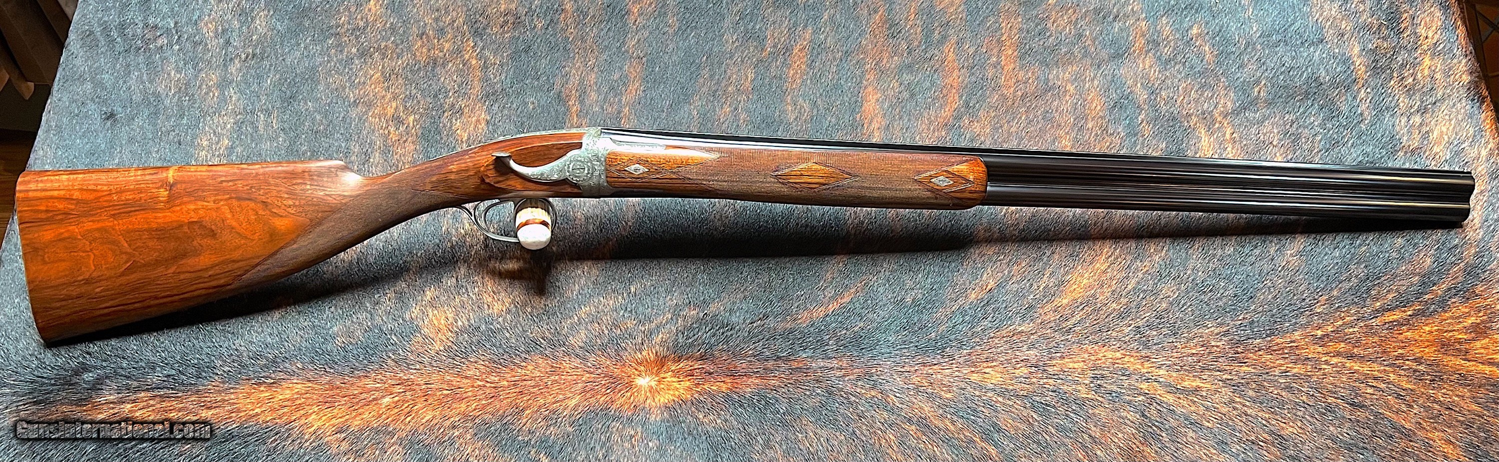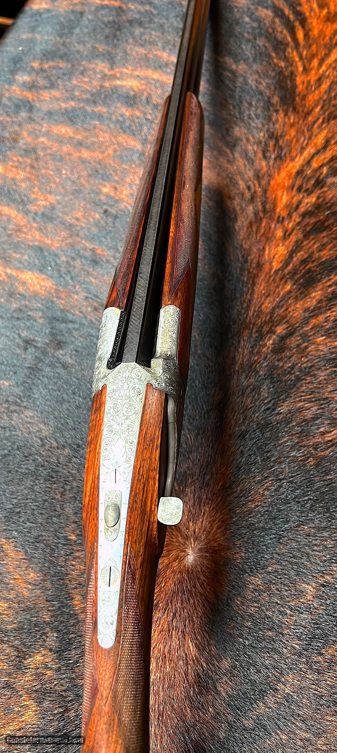 Description: The Britte gunmaking company built SuperBrittes from 1932 to 1936. Only 250 of them were completed. Sometime in the 1990s, Griffin & Howe acquired a small collection of finished SuperBritte OUs plus several 12-gauge SuperBritte action/barrel sets. SOLD Shotgun Gauge: 16 Gauge Manufacturer: Griffen & Howe Model: Super Britte Serial Number: 191 Barrel Length: 27 1/2 Chambers: 2 3/4 Ejectors: Yes Condition: Outstanding Metal Condition: 98% Wood Condition: 98% Bore Condition: Barely Fired Triggers: Double Stock: Perch Belly Stock Comb: 1 1/4 Stock Heel: 1 3/4 LOP: 14 1/4 Engraving: Scroll |