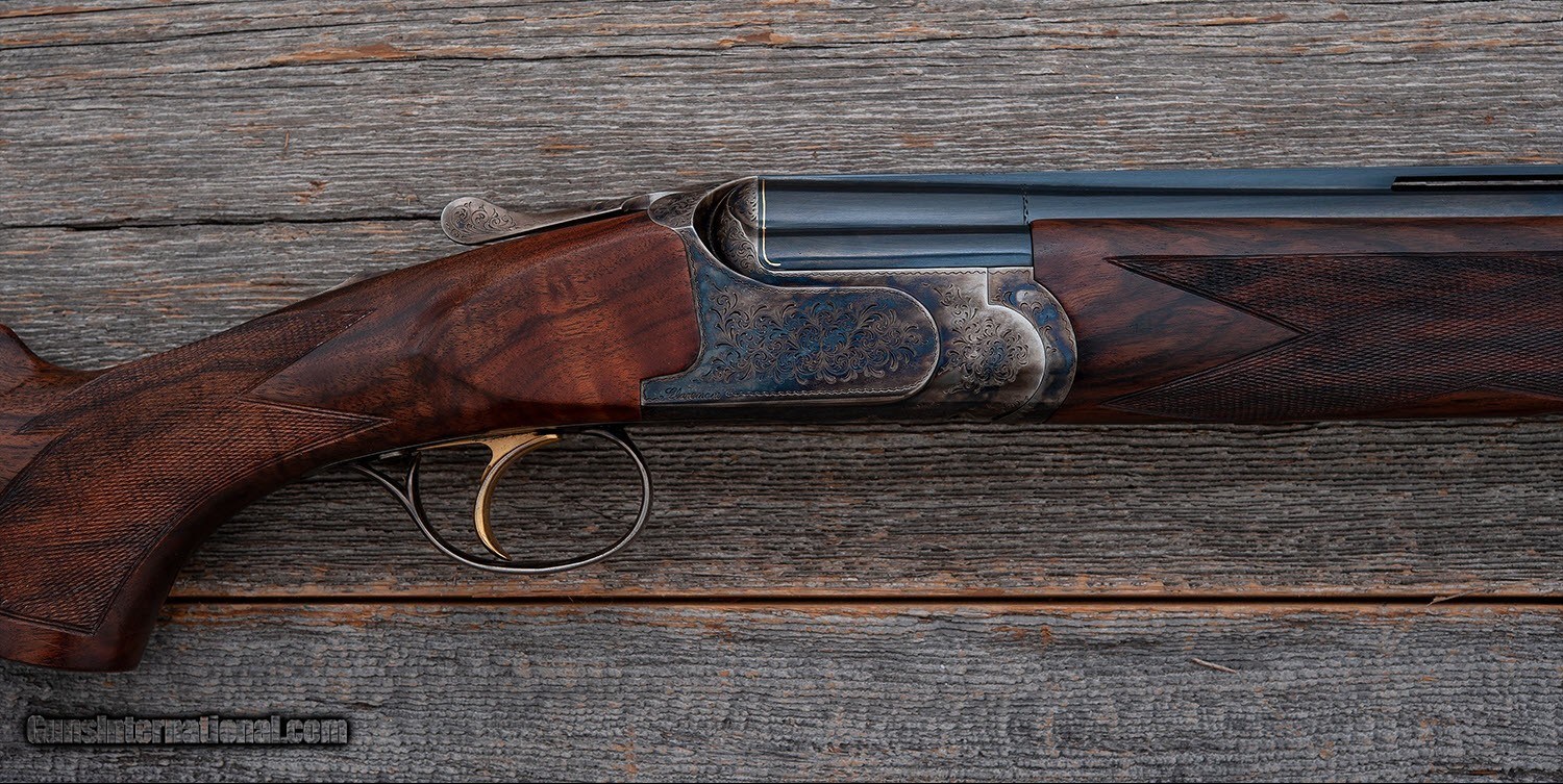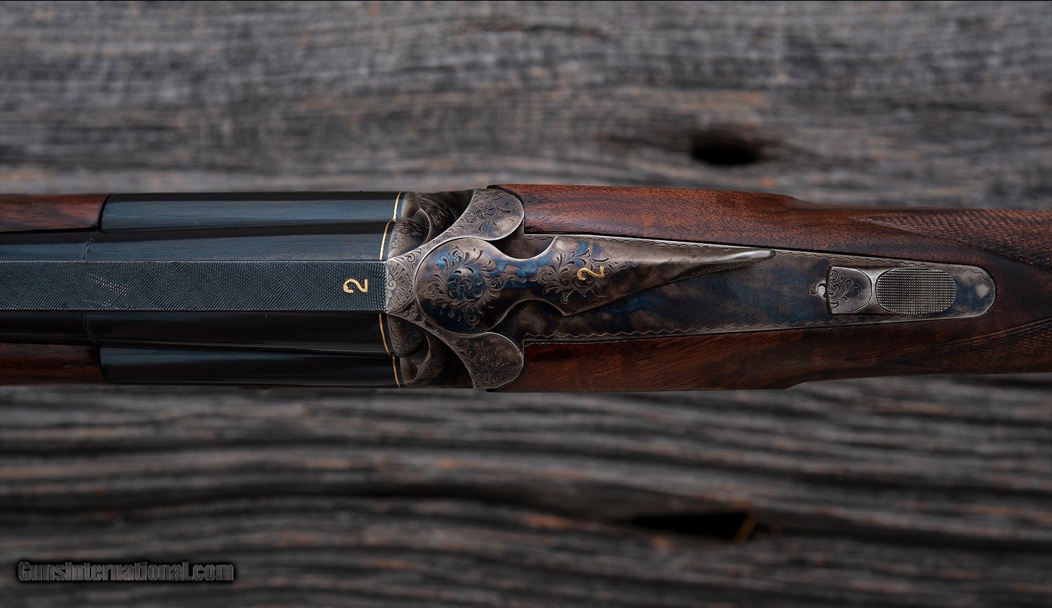 Description: Griffin & Howe - Claremont - 12 ga - Item Number: GRI26566 Shotgun type: O&U Action: Boxlock Ejectors: Yes Trigger: Single Grip: Pistol Grip Forend: Checkered Lop: 14 5/8 " Pad thickness: 0.5 " Type of butt: Rubber Pad Drop comb: 1 3/8 " Drop heel: 2 1/4 " Cast amount: 1/8 " Cast: OFF Weight: 8 lbs, oz Manufactured in: Italy Finish: Case Colored Overall condition: Very Good Stock condition: Very Good Metal condition: Very Good Stock: Original finish Metal: Original finish Type of Case: none Extra barrels: 0 Barrel info: Gauge: 12 ga Chamber: 2 3/4 " Length: 29 3/4 " Chokes: 6 Choke Tubes Rib type: Ventilated Comments : Clean gun with some light handling marks. SG-130 SOLD |