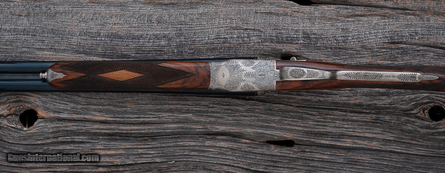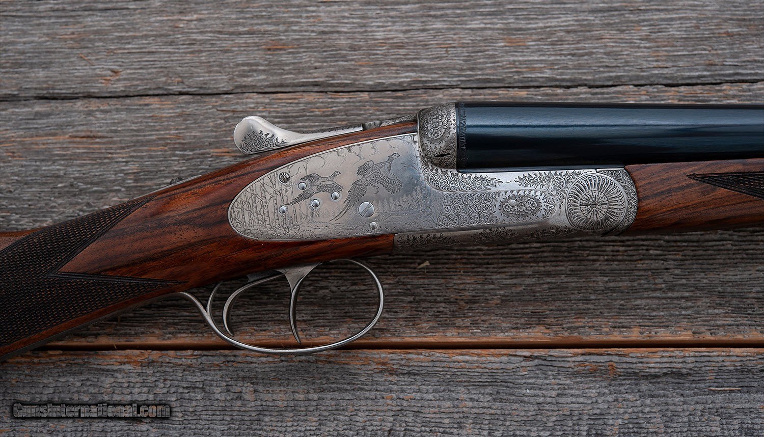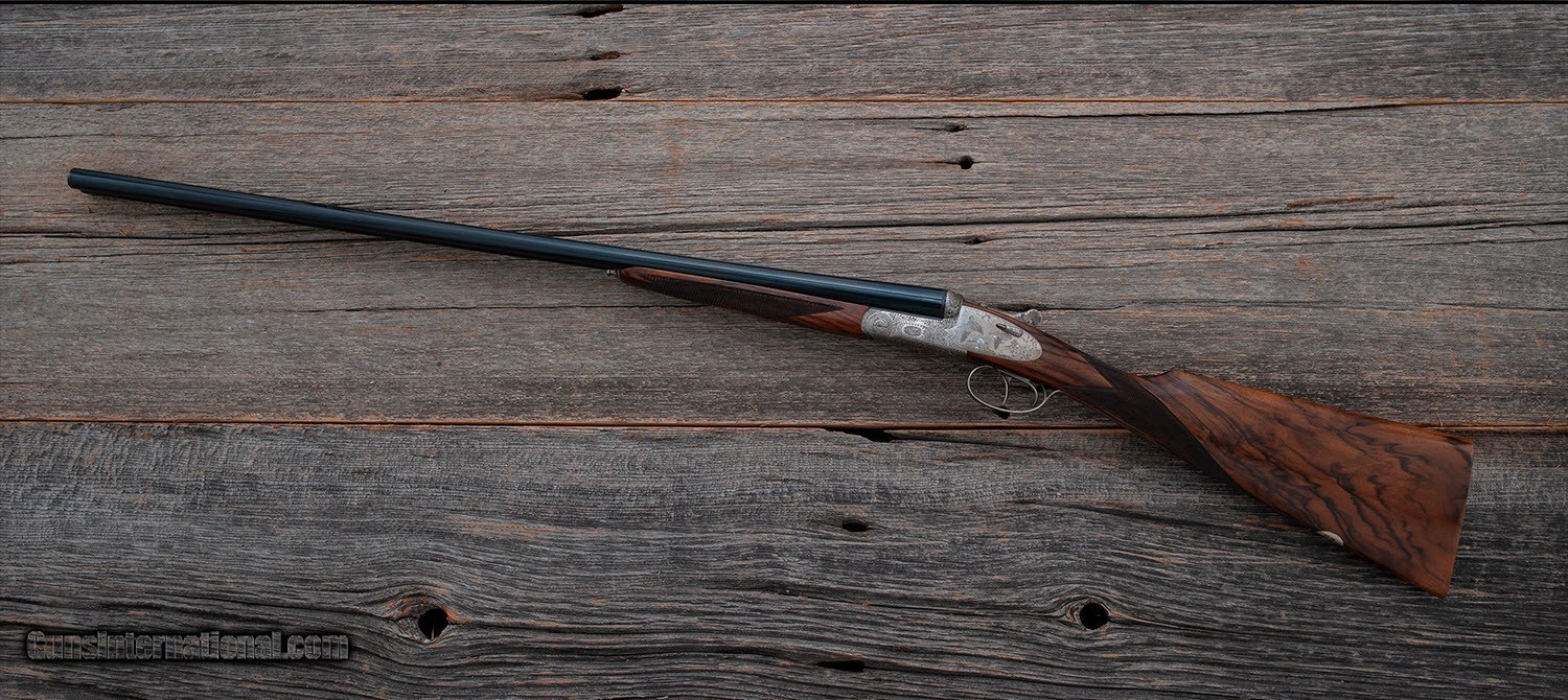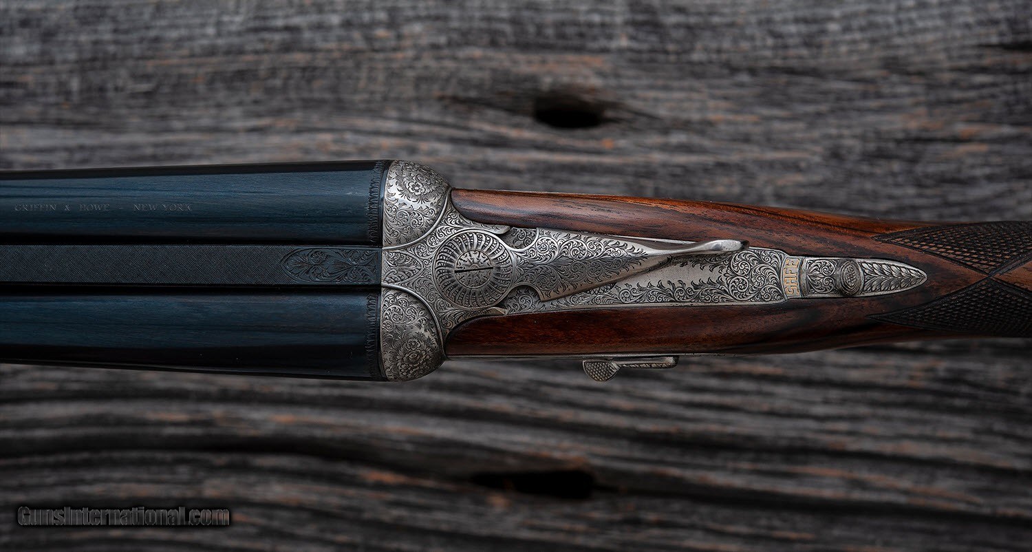 Description: Griffin & Howe - Extra Finish - 20 ga - Item Number: GRi570327501 Shotgun type: SxS Action: Sidelock Ejectors: Yes Trigger: Double Grip: Straight Grip Forend: Checkered Lop: 14 5/8 " Type of butt: Checkered Wood Drop comb: 1 3/8 " Drop heel: 2 1/4 " Cast amount: 1/4 " Cast: OFF Weight: 6 lbs, 4 oz Manufactured in: Spain Finish: Coin Overall condition: Very Good Stock condition: Very Good Metal condition: Very Good Stock: Original finish Metal: Original finish Type of Case: Leather Luggage Case Extra barrels: 0 Barrel info: Gauge: 20 ga Chamber: 2 3/4 " Length: 29 " Chokes: IC/IC Rib type: flat matte Comments : Gun is in very good condition with some light handling marks. Oval is engraved. SG-134 E3 SOLD Shotgun Gauge: 20 Gauge |