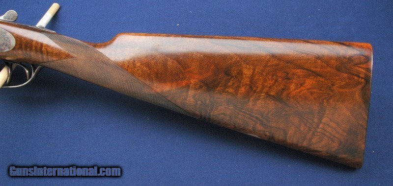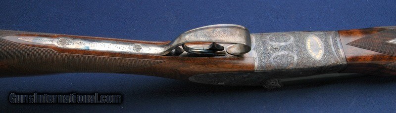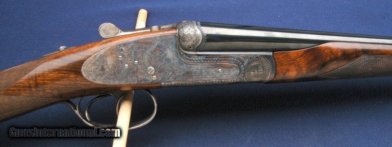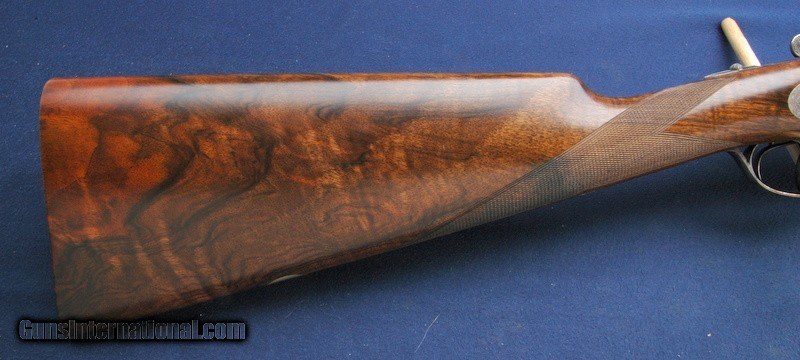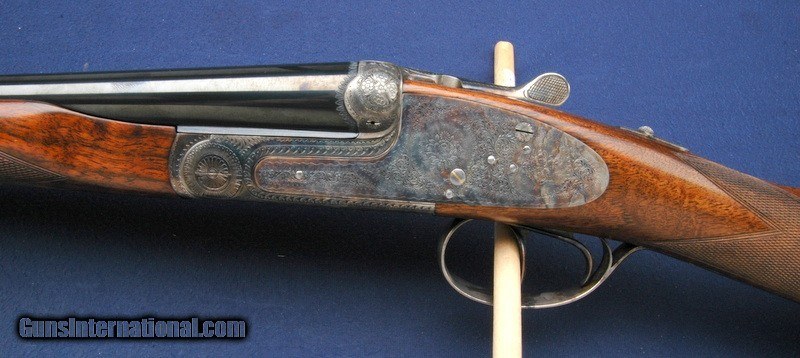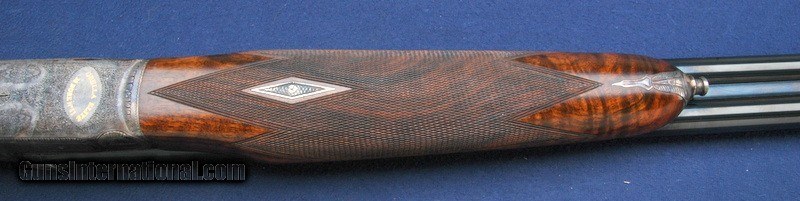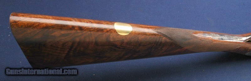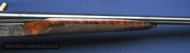Description: Out of a very nice collection comes this beautiful Grulla 216RL Elite side lock round body double. This is #11 out of only 15 built. Mint in the original box. 29" barrels choked Imp/Cyl and Mod. Box is in excellent condition with all padding, inserts, wax paper, owner's manual and build sheet. Beautiful fancy walnut buttstock and fore arm, hand checkered with a checkered butt. DAH 2 1/2", DAC 1 1/2" LOP is 14 3/4". Length overall is 46 1/4", weight 6 lbs 1. Manufactured 6/30/06, 1 of 15 hand built round body doubles. Double triggers and ejectors. Sidelock with Purdey style rose and scroll hand engraved and signed. Lovely case color overall. Test fired only. $75 shipping to the lower 48, 3% surcharge for using a CC. If you choose to pay with a personal check, we will hold the item for up to 10 days to make sure that it clears. Please expedite such pymts as we will hold an item on your word for 5 days. SOLD Shotgun Gauge: 28 Gauge |